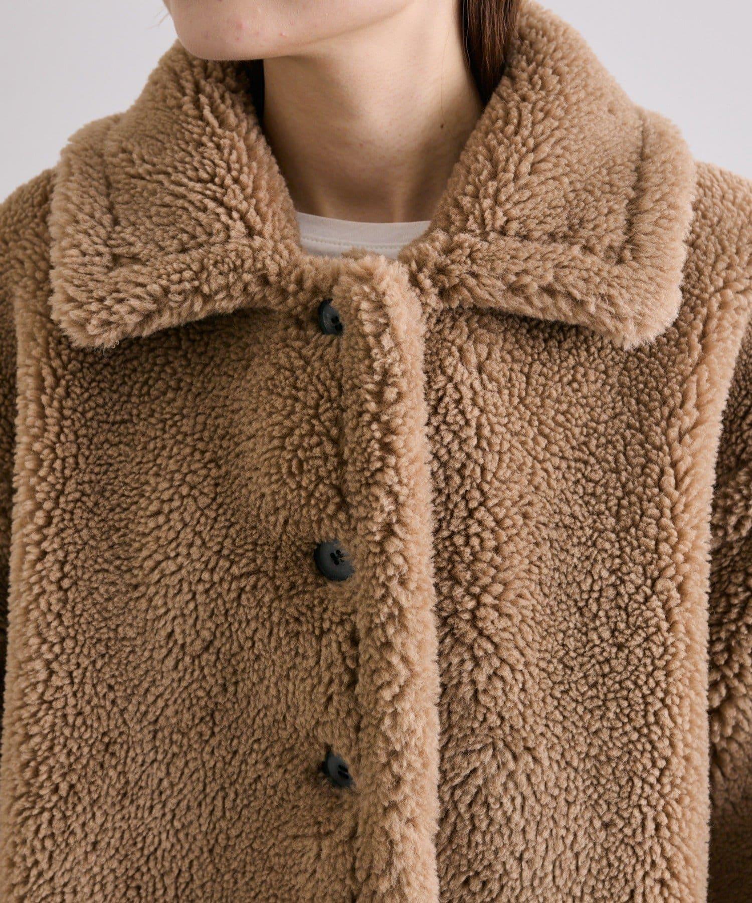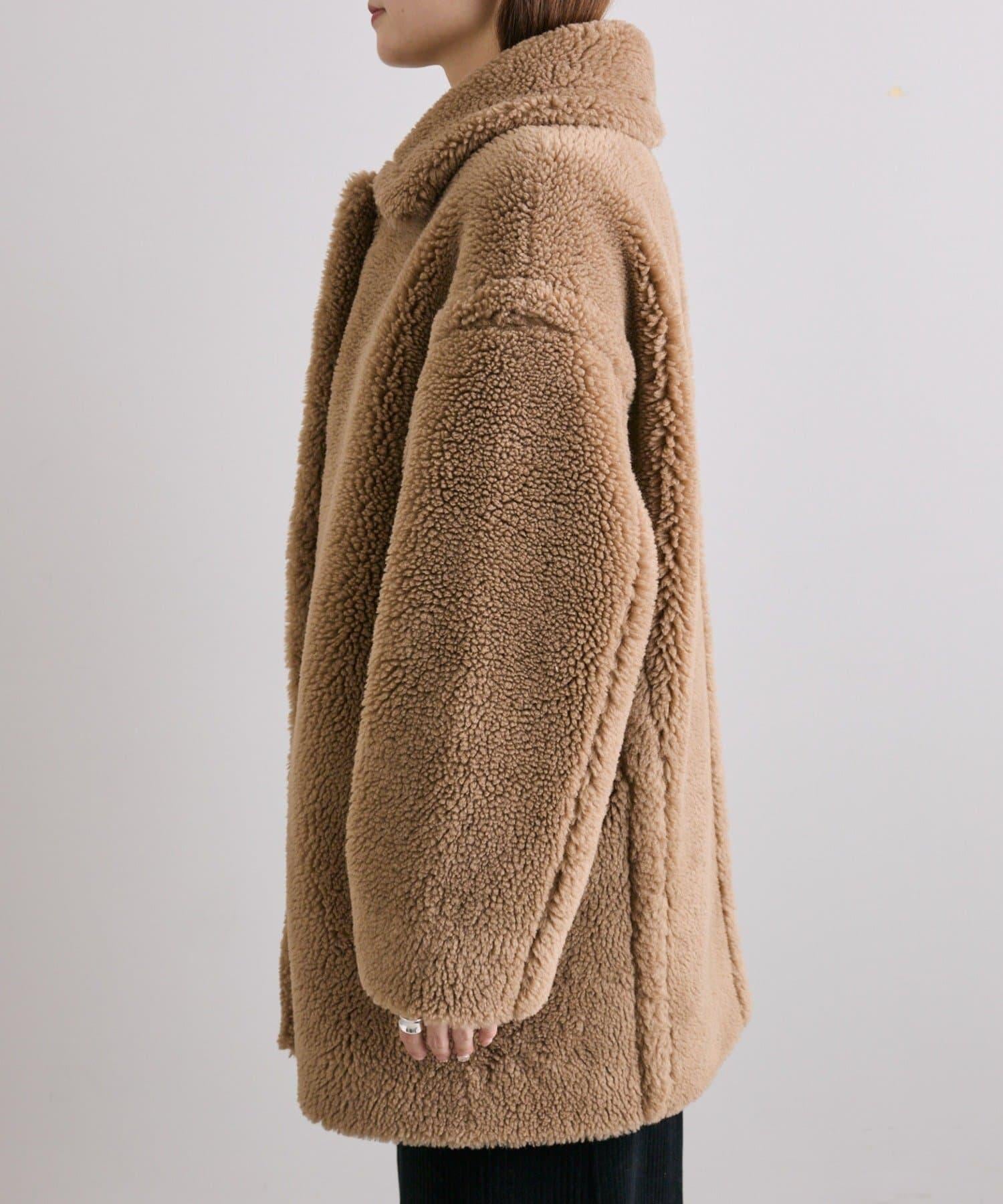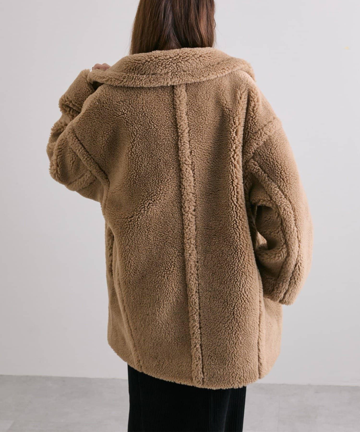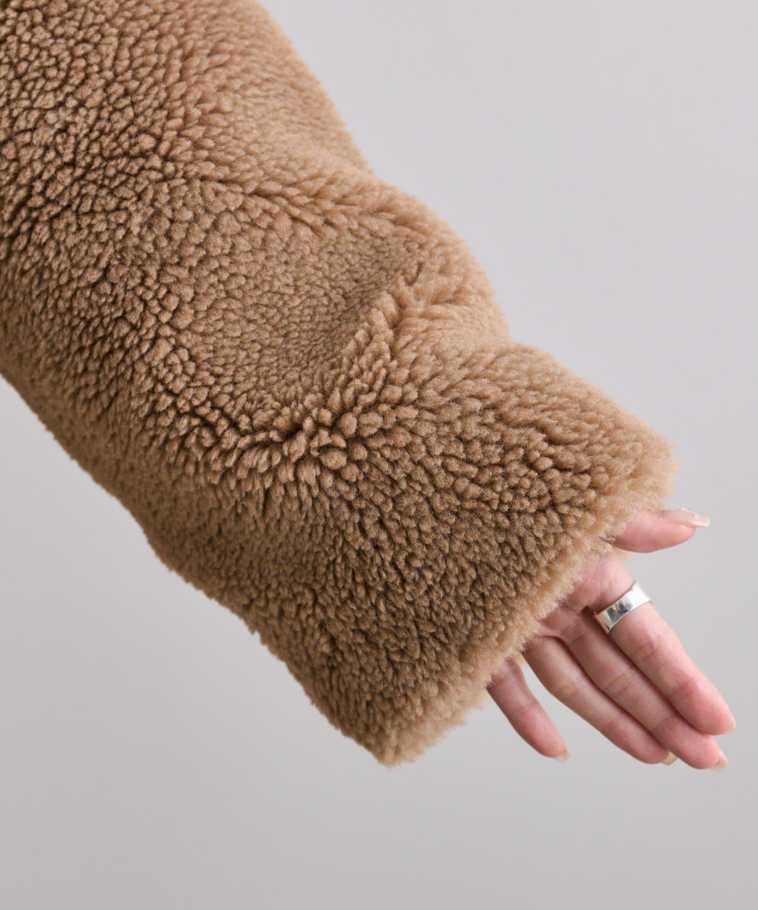 這是一款中長款大衣,採用蓬鬆的蟒蛇絨面料,表面觸感極佳,給人一種四季皆宜的感覺。