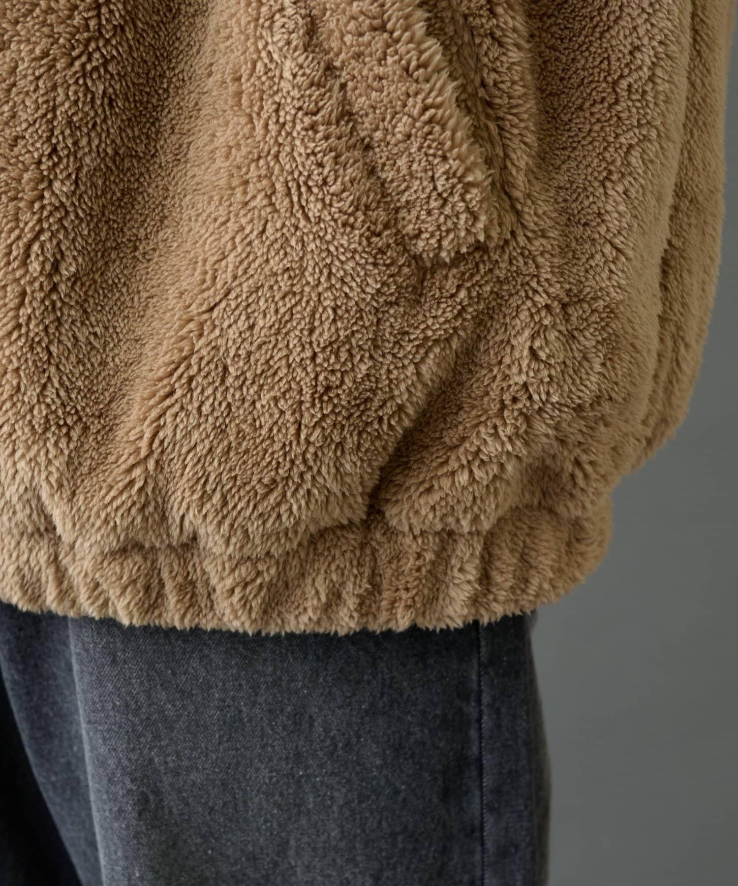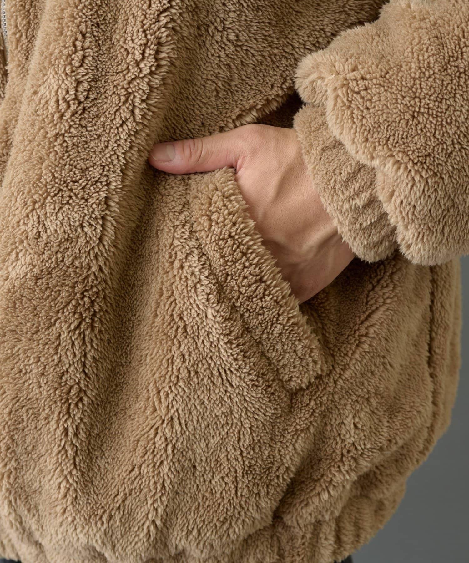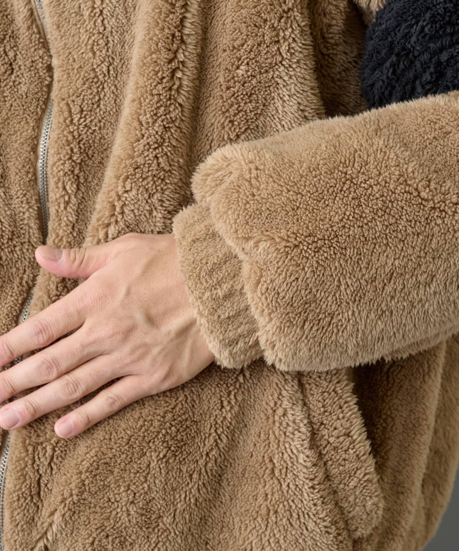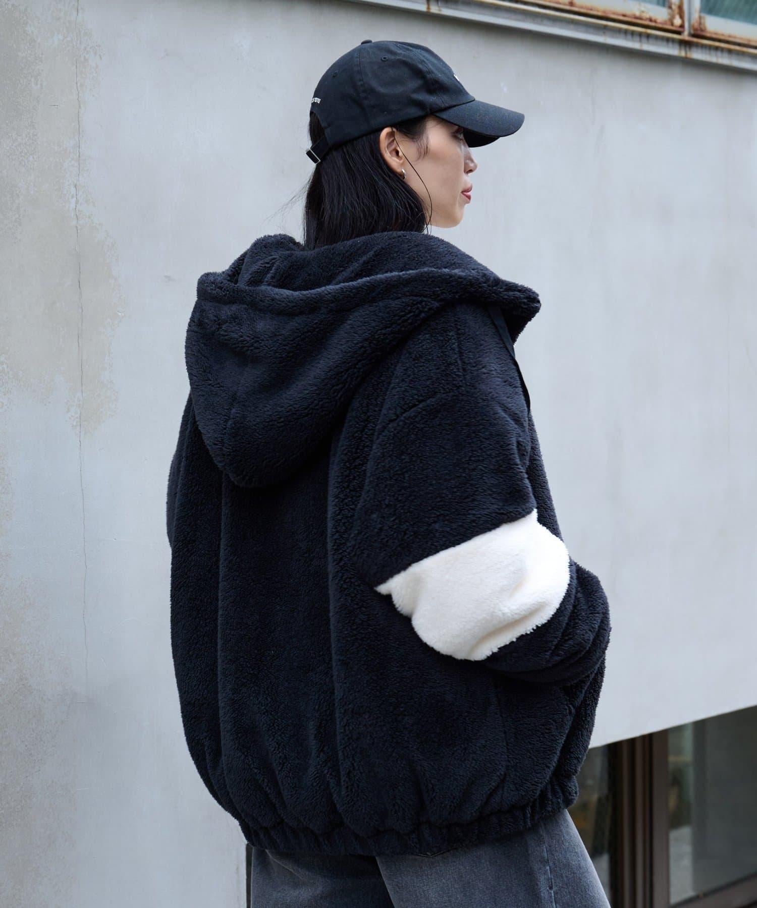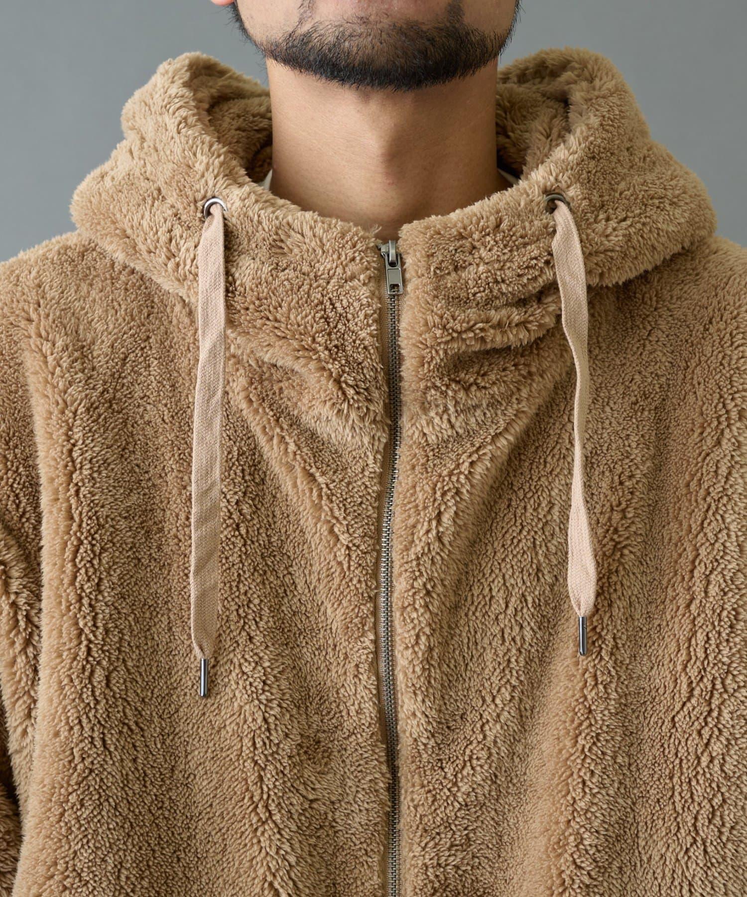 這款絨毛連帽外套具有保暖、蓬鬆的蓬鬆感。