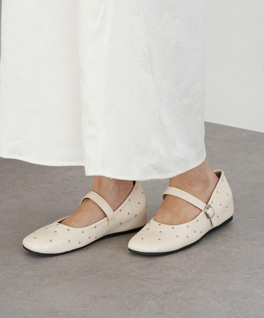 平底鞋,鞋頭為適中的方形,外觀精美。