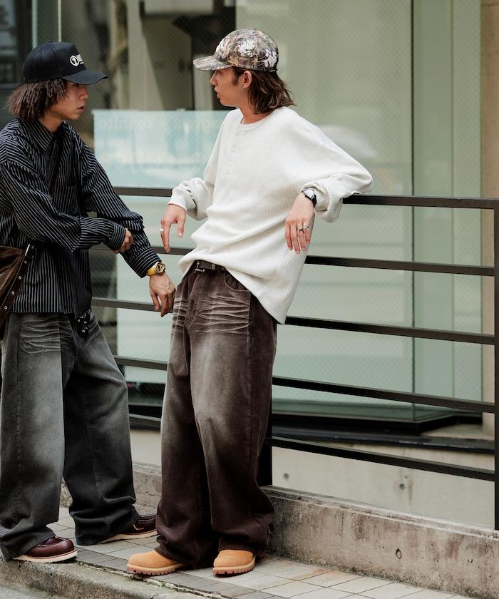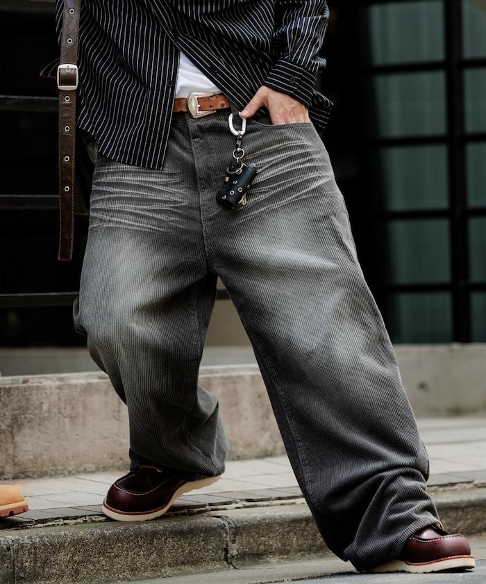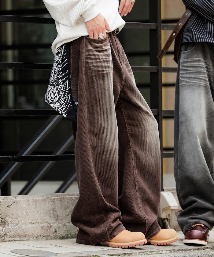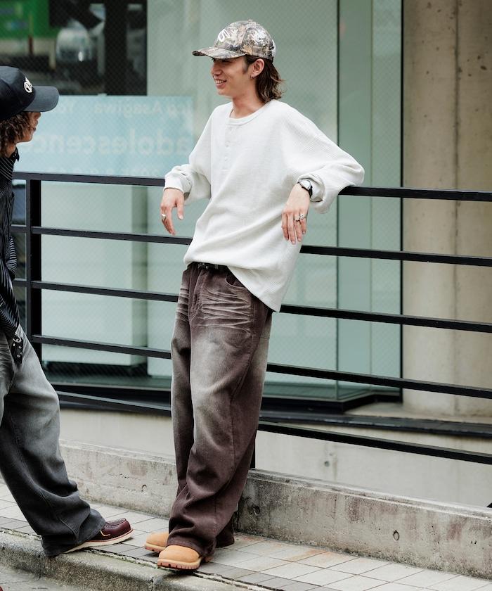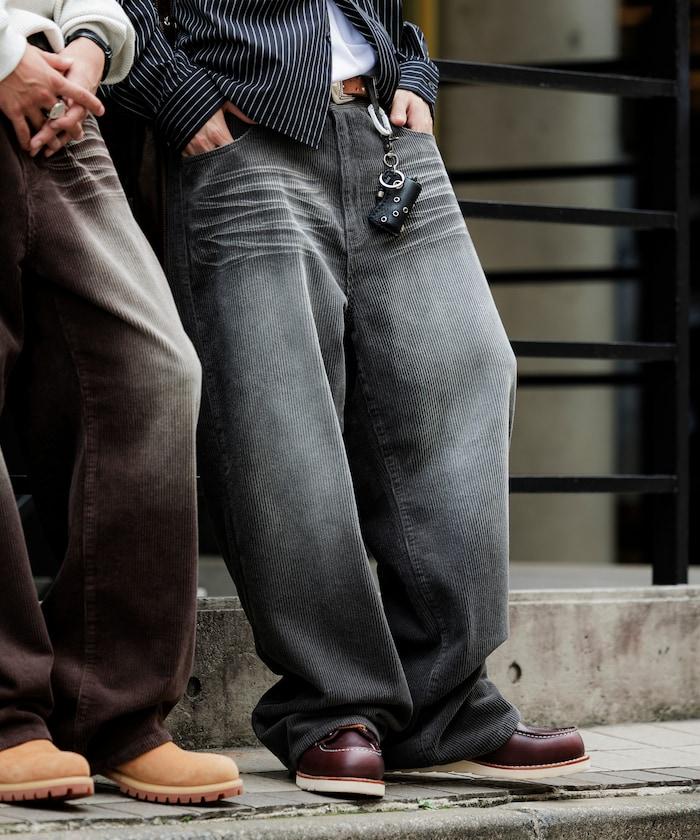 寬廓型長褲,復古褪色效果令人印象深刻。