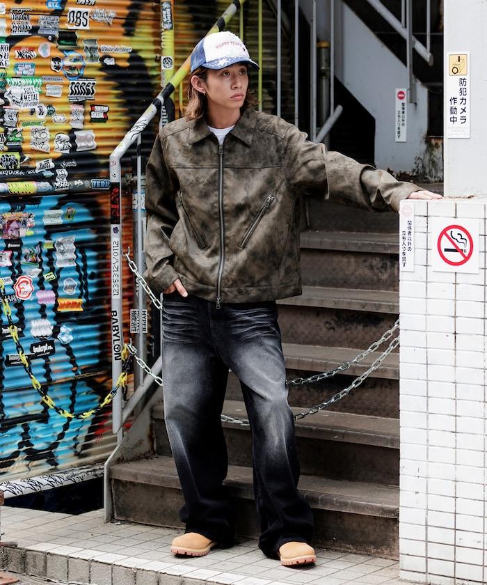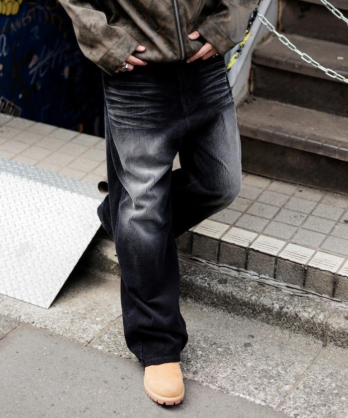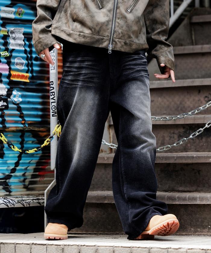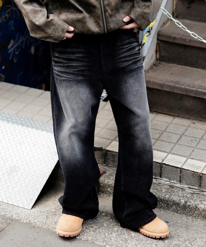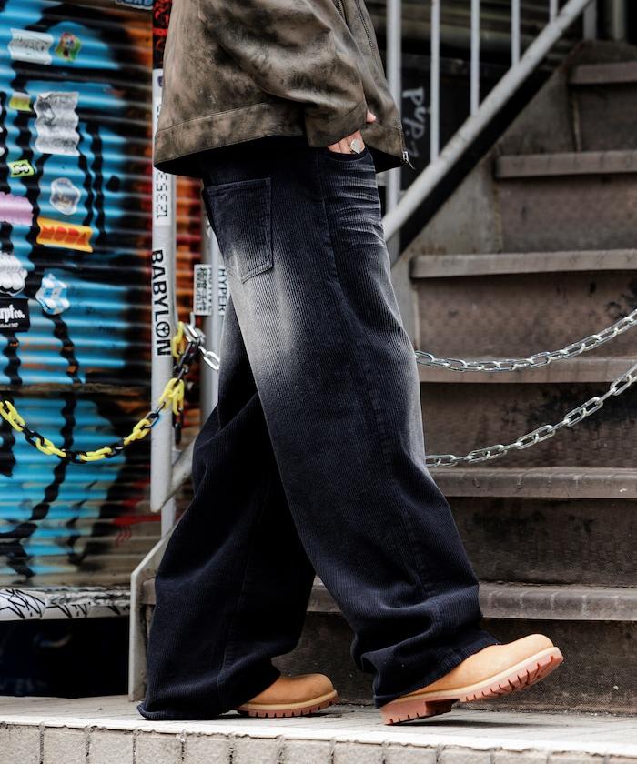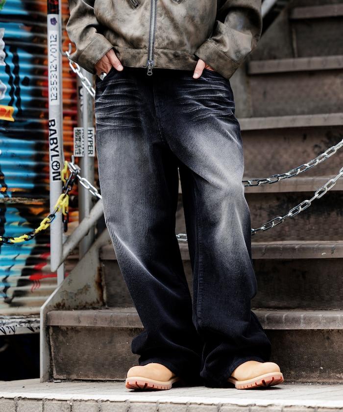 寬廓型長褲,復古褪色效果令人印象深刻。