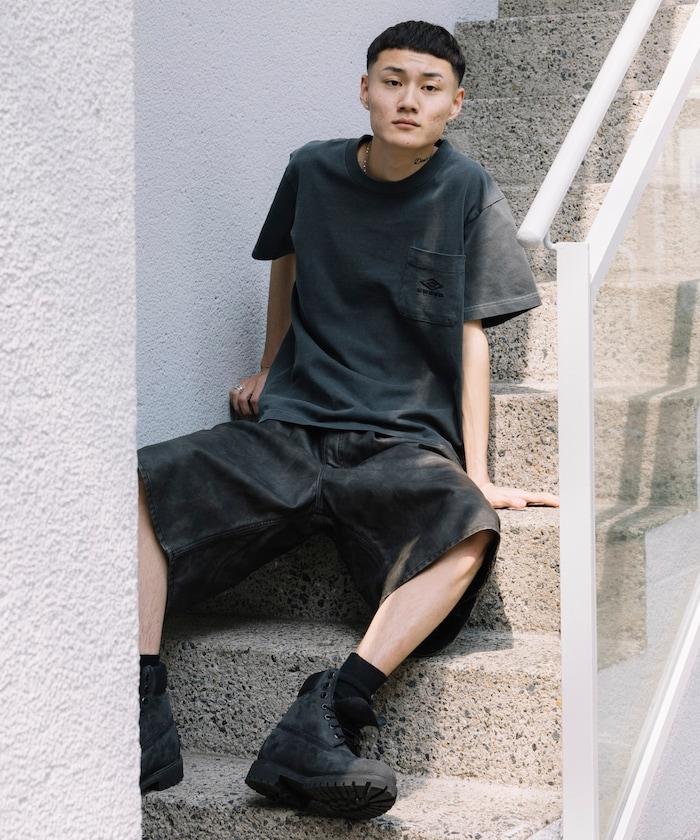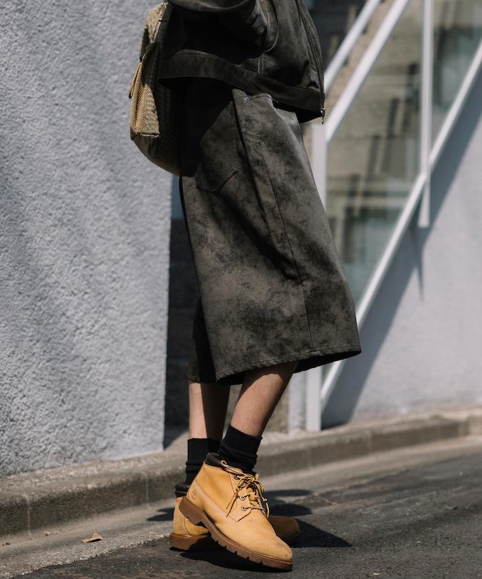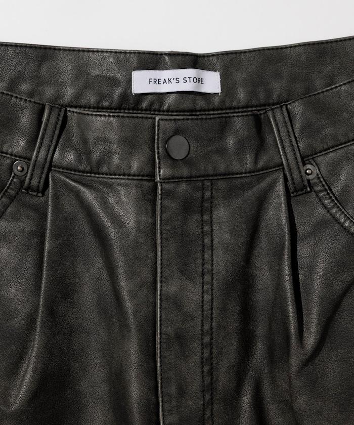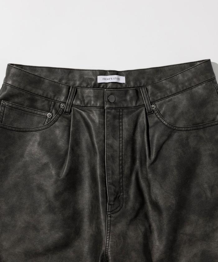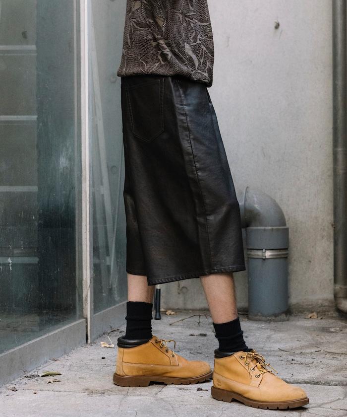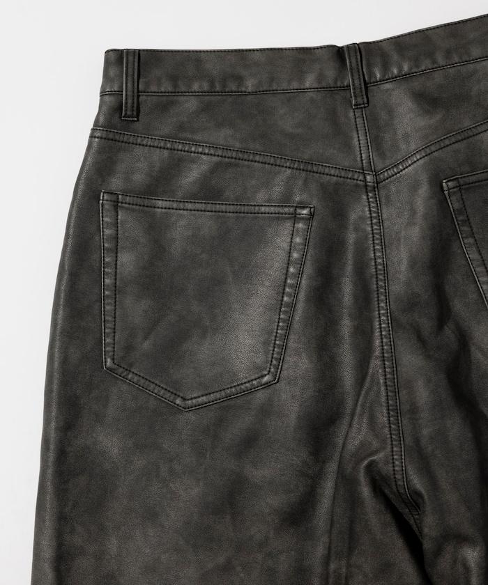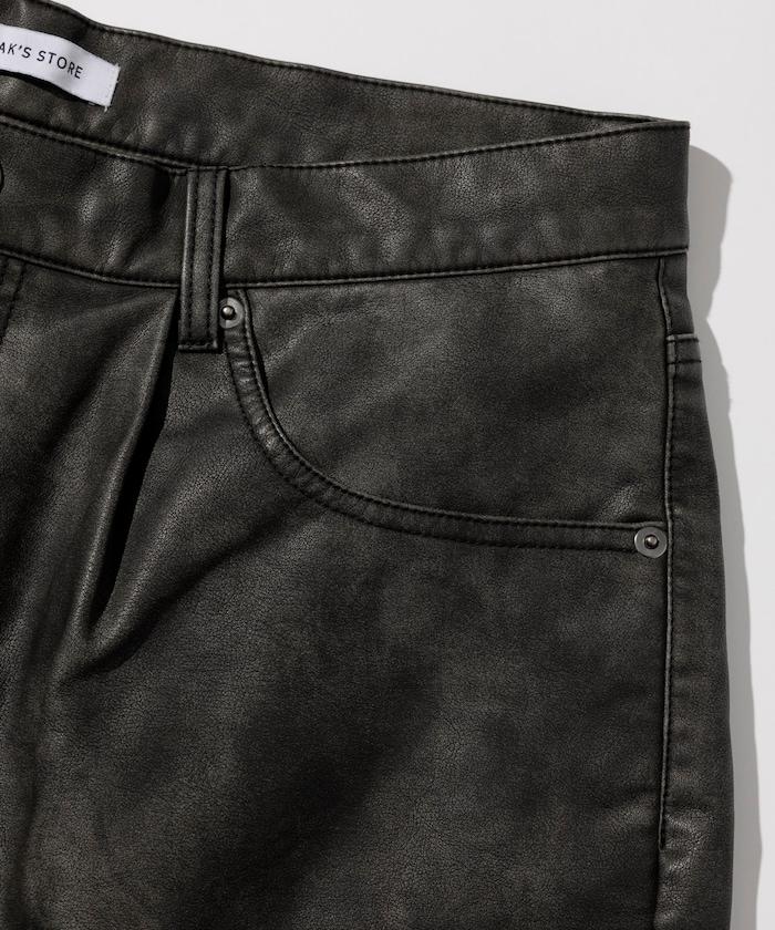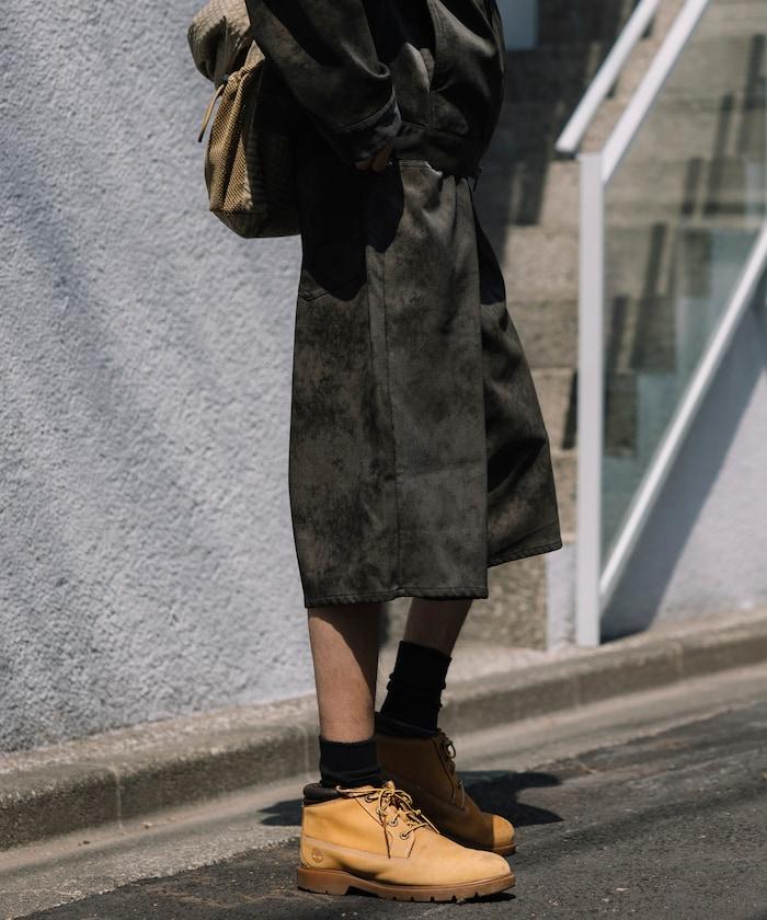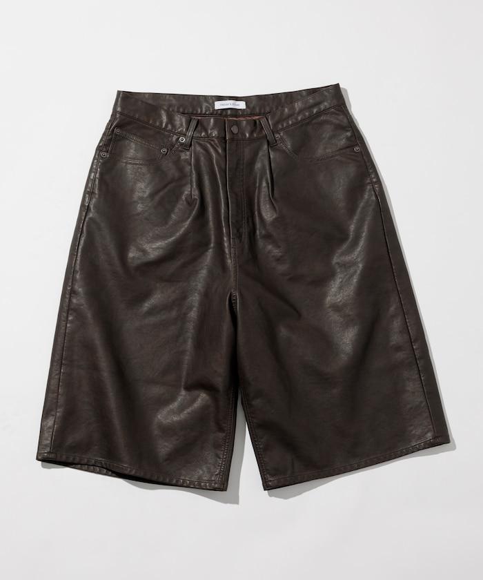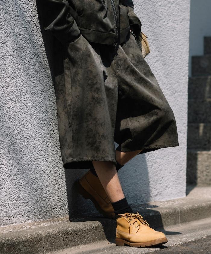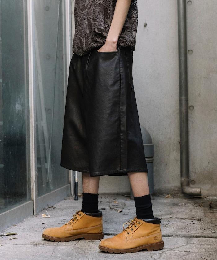 合成革寬鬆短褲,採用時尚的水洗面料。