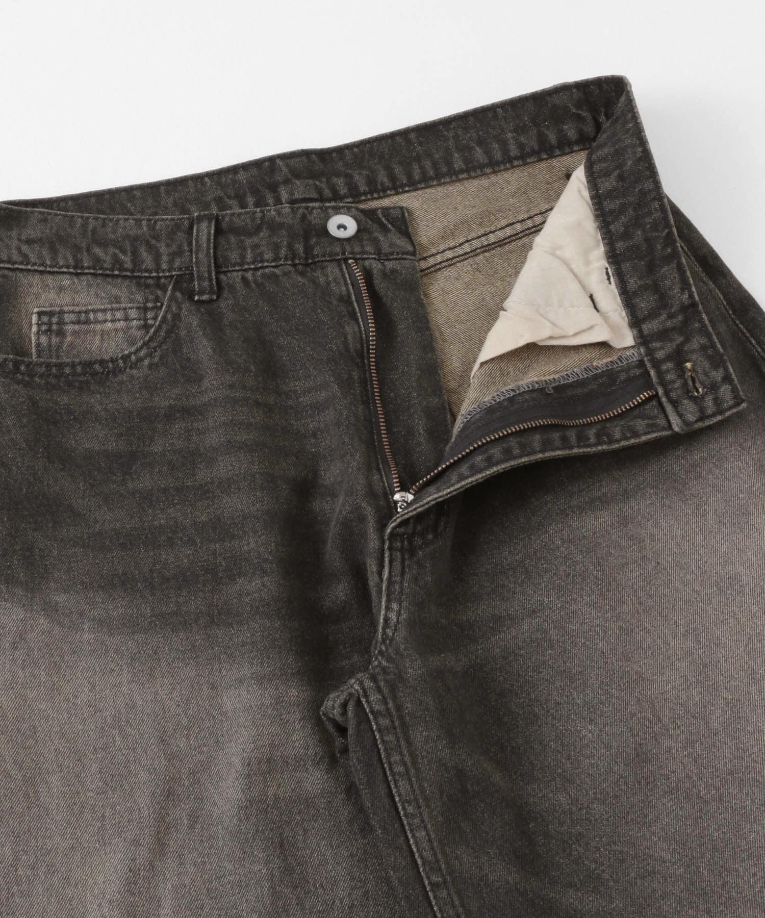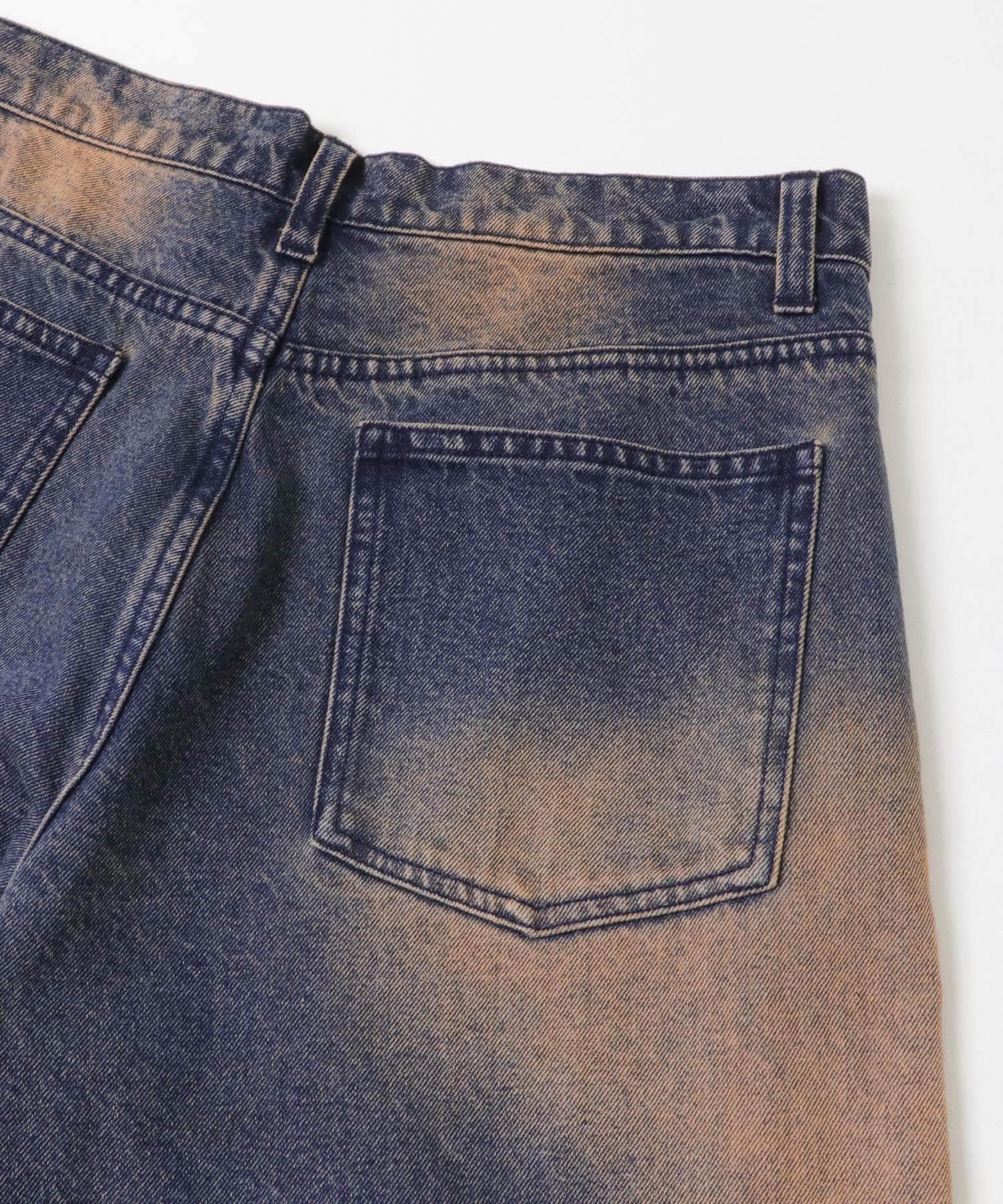 這款牛仔短褲的正面和背面均採用噴砂處理,給人一種獨特的感覺。