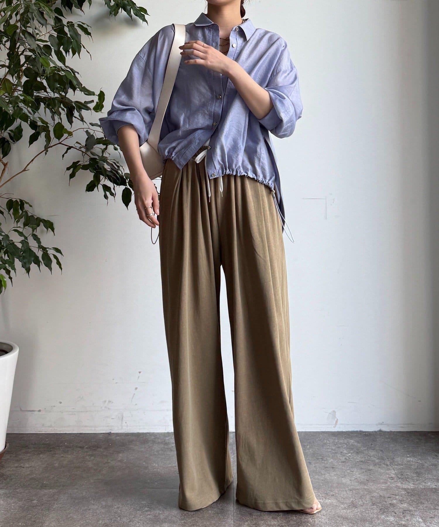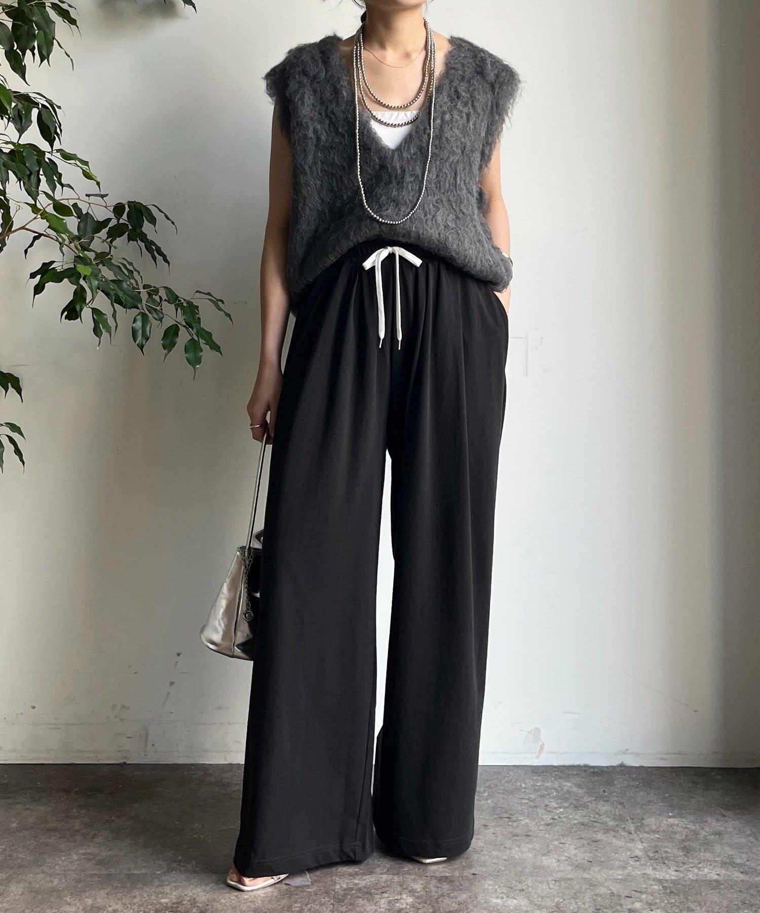復古風格的內搭寬鬆長褲,褲腿線條優美!