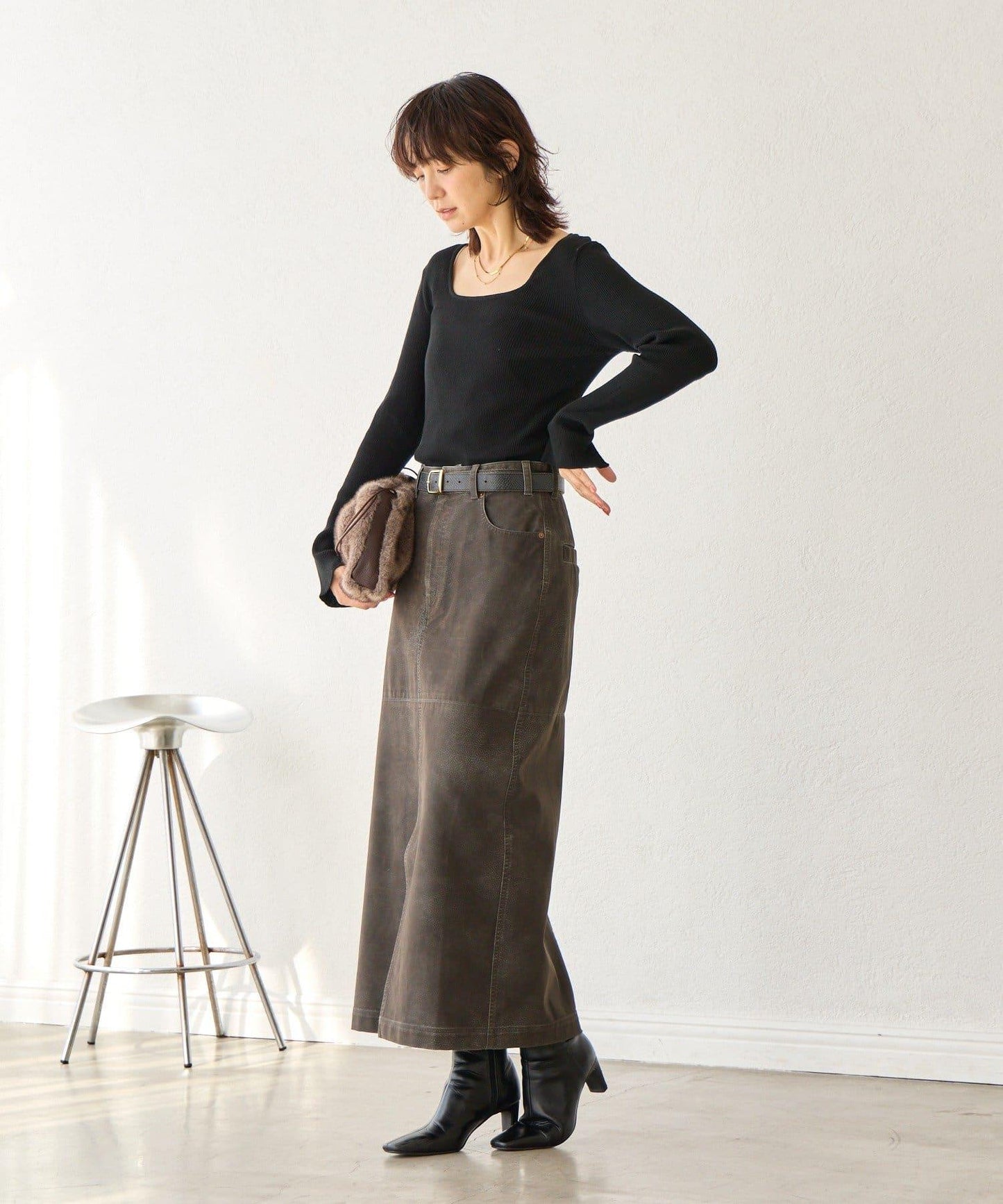 緊身裙,質感復古。