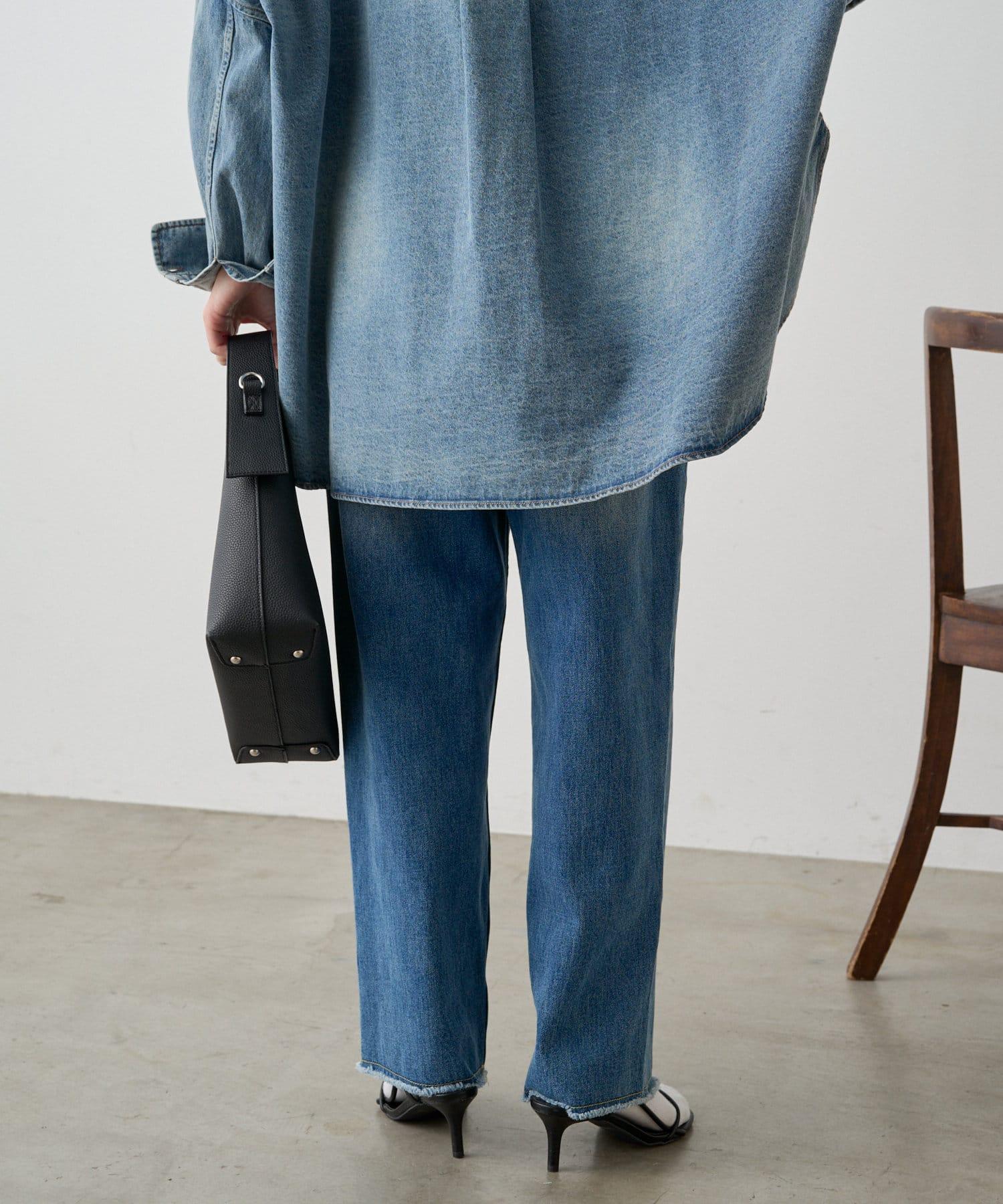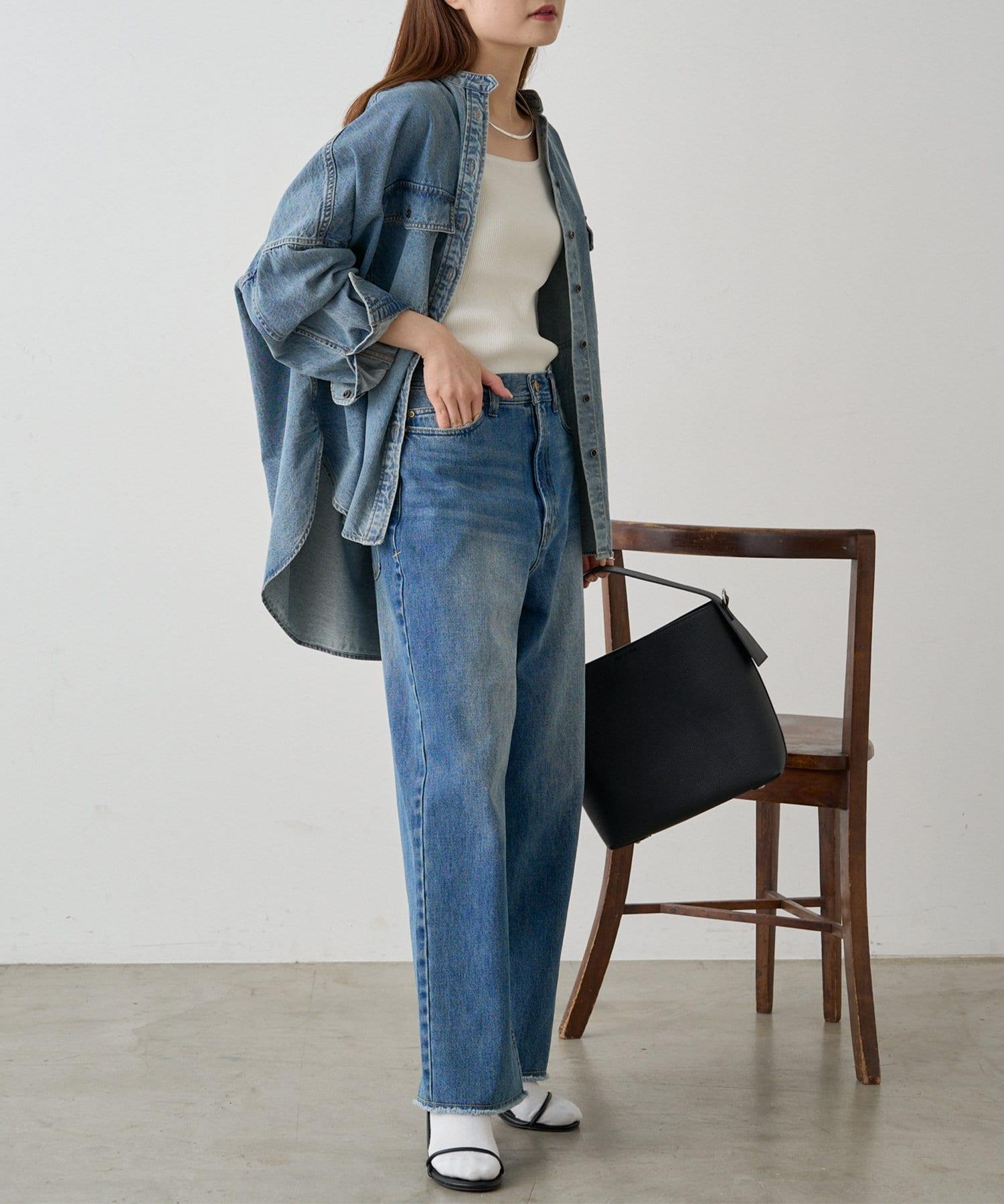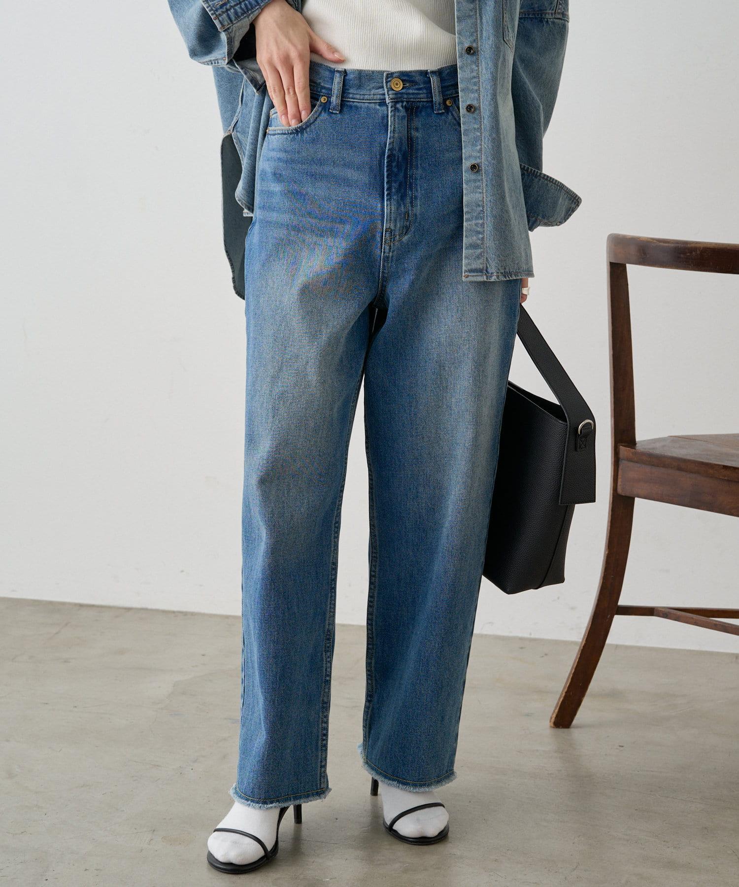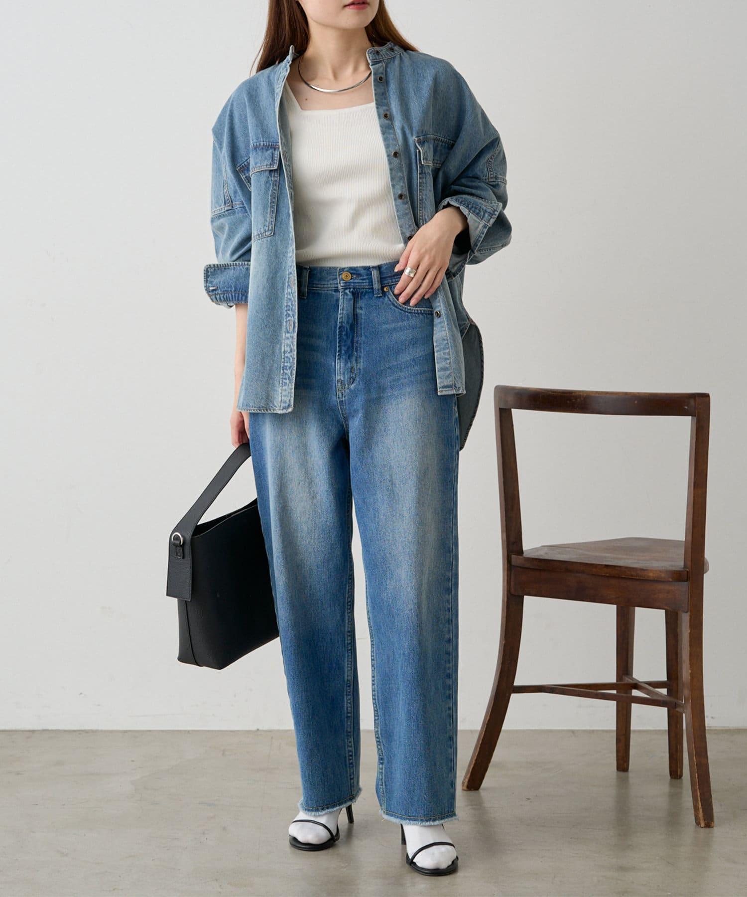 半寬大版型的直筒牛仔長褲,是裝扮衣櫥的好幫手。