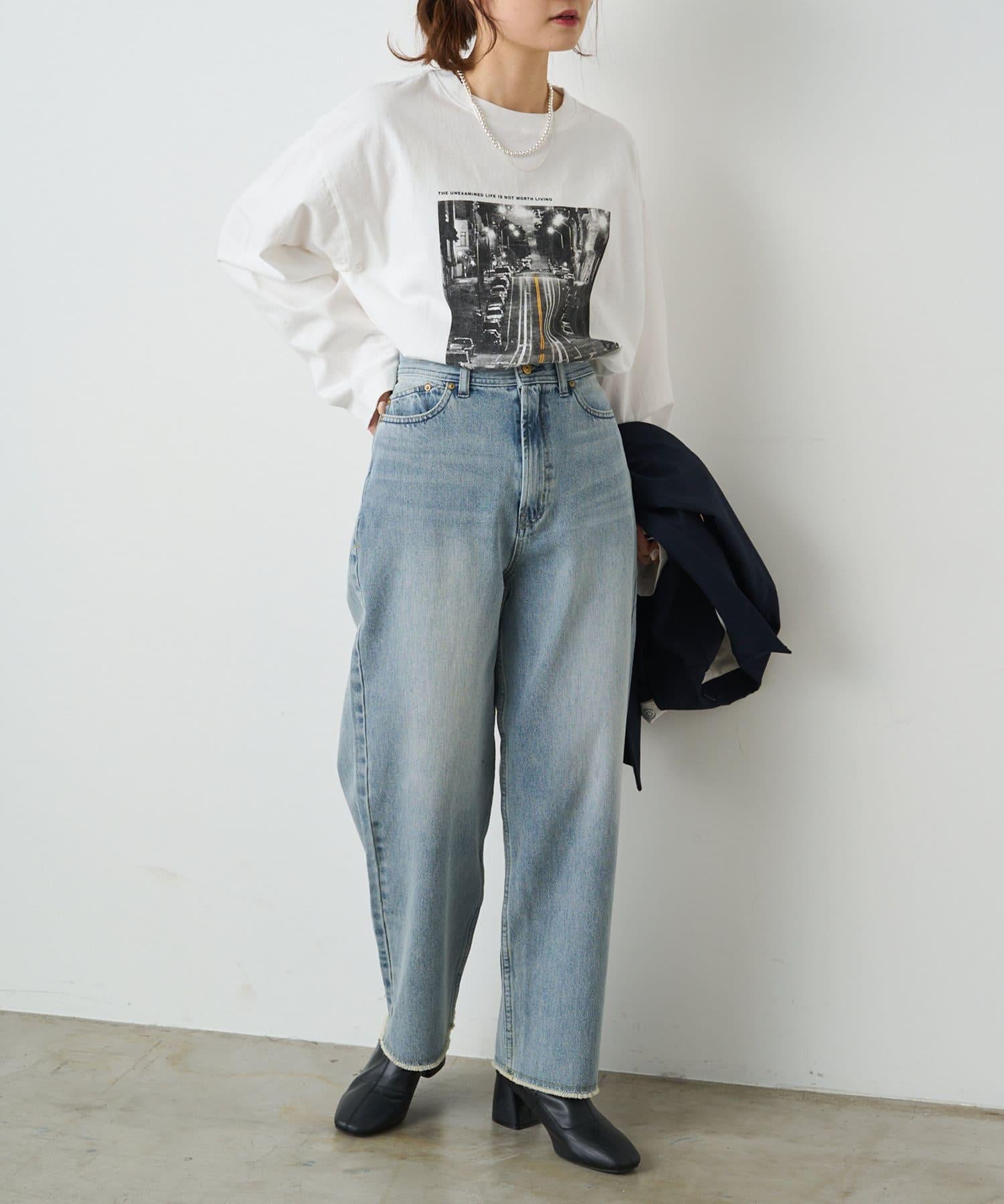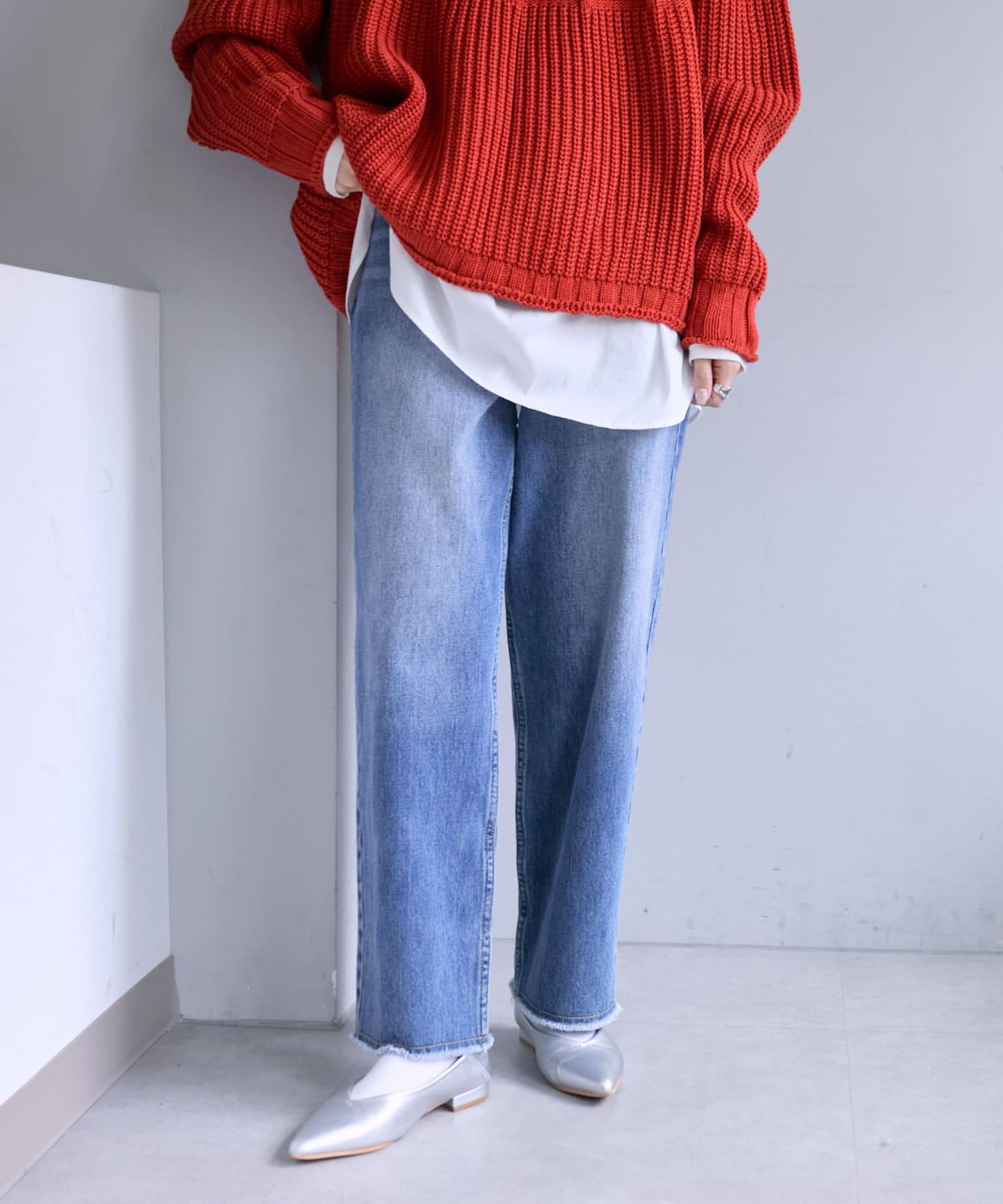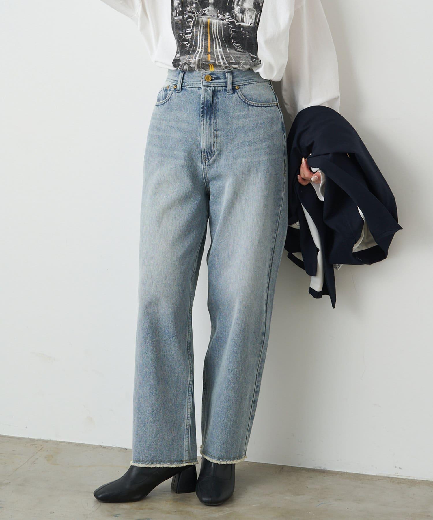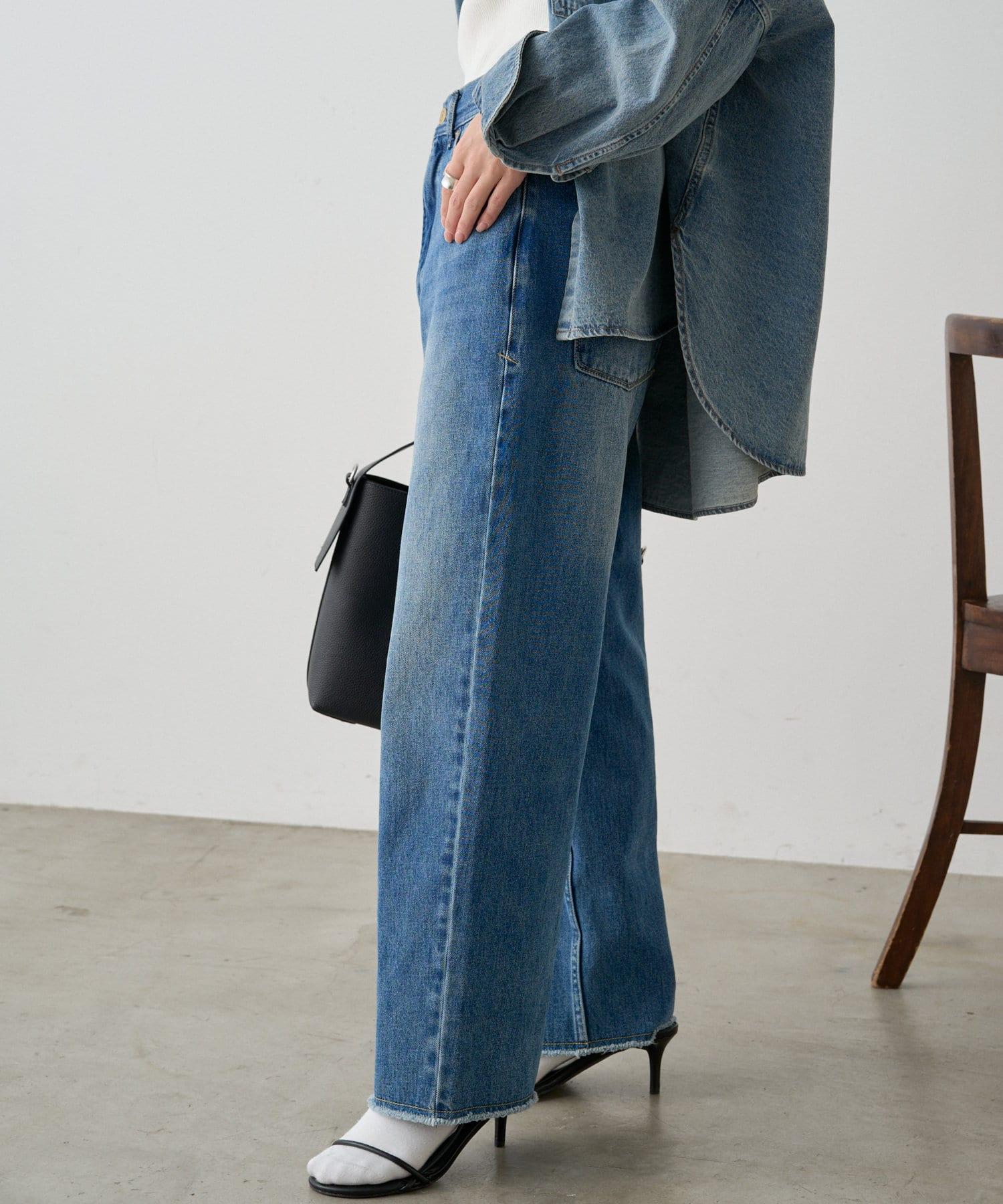 半寬大版型的直筒牛仔長褲,是裝扮衣櫥的好幫手。