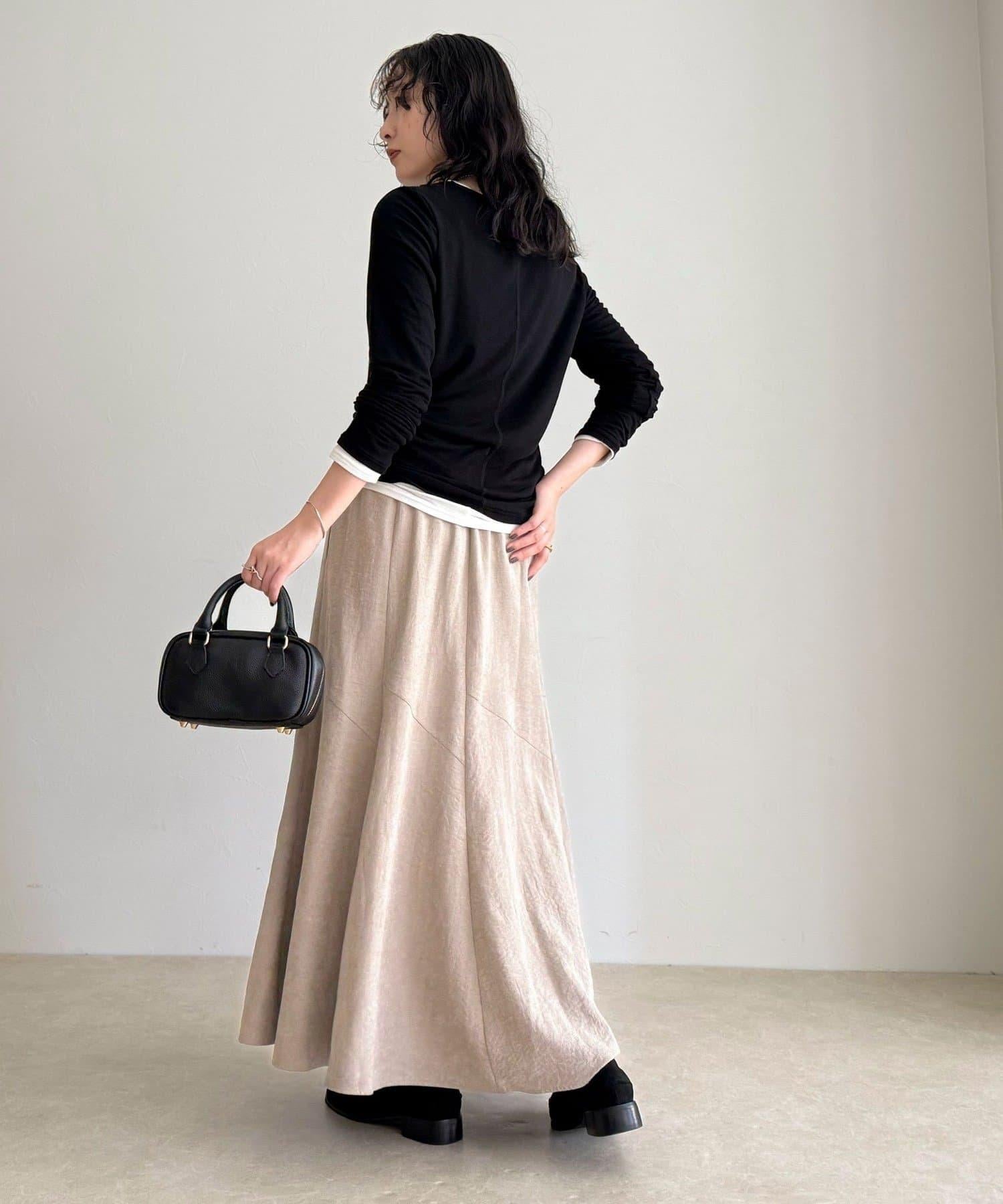 柔軟的麂皮絨材質讓這條裙子略帶復古氣息。