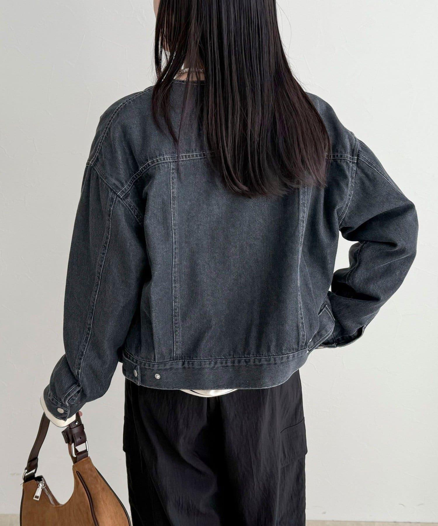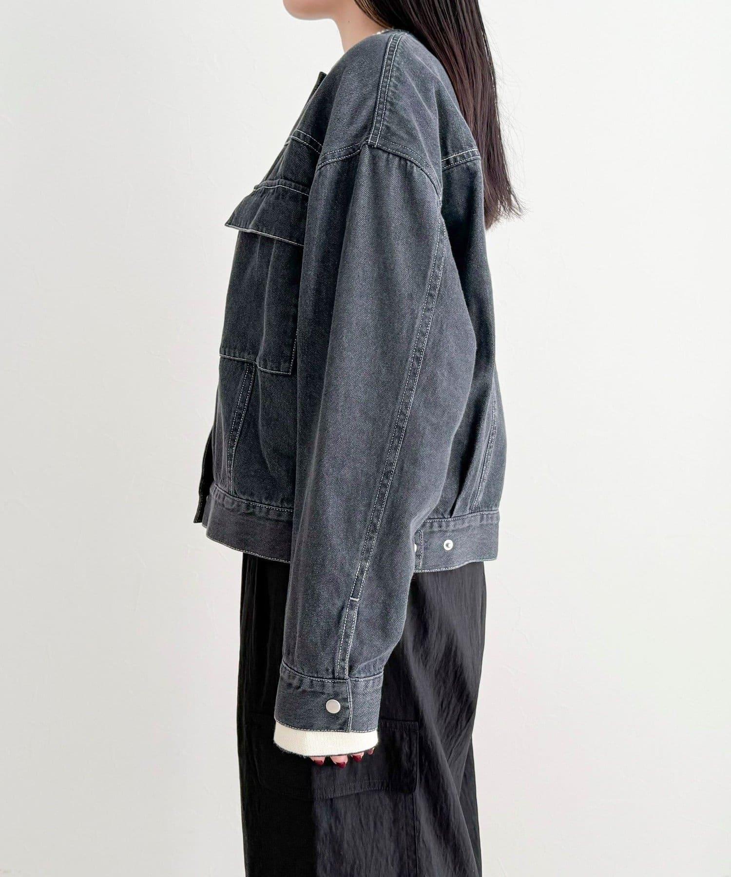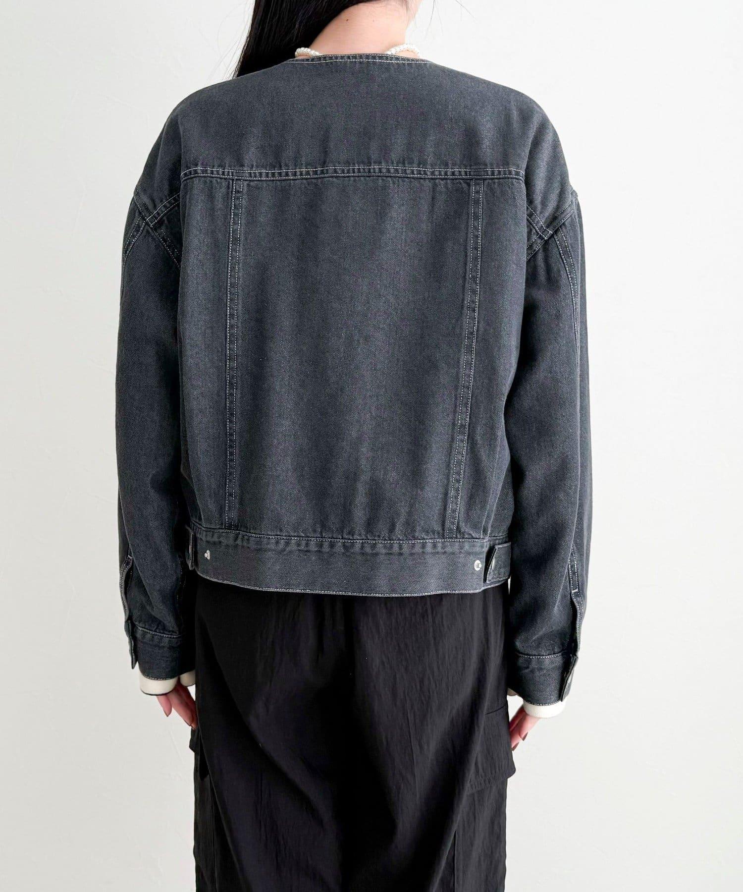 微色調牛仔無領夾克
