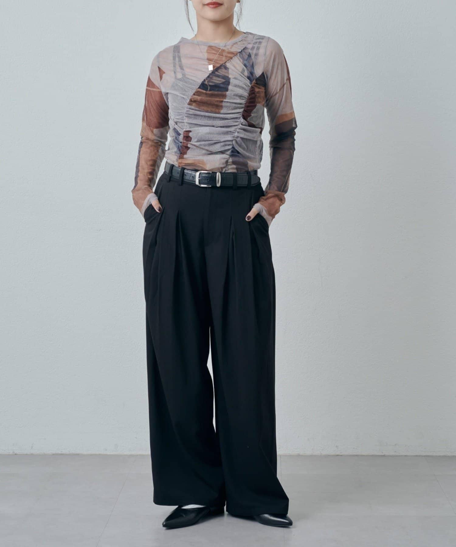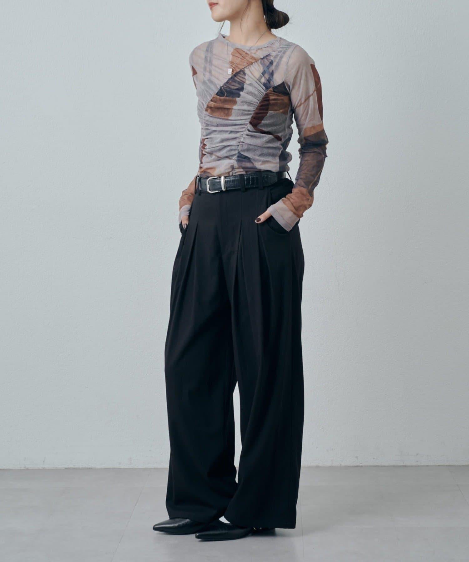 前幅處的碎花設計營造出動感和立體感,讓這款簡約而不失嫵媚的垂墜上衣充滿時尚感。