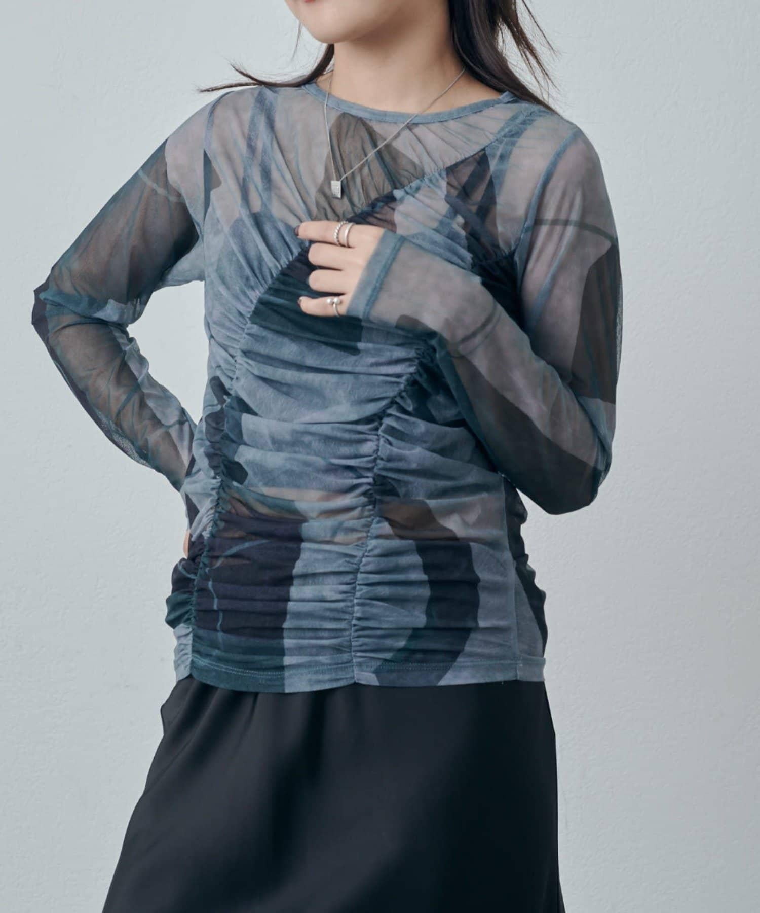 具有半透明光澤感的透視上衣,營造出迷人的成人風!