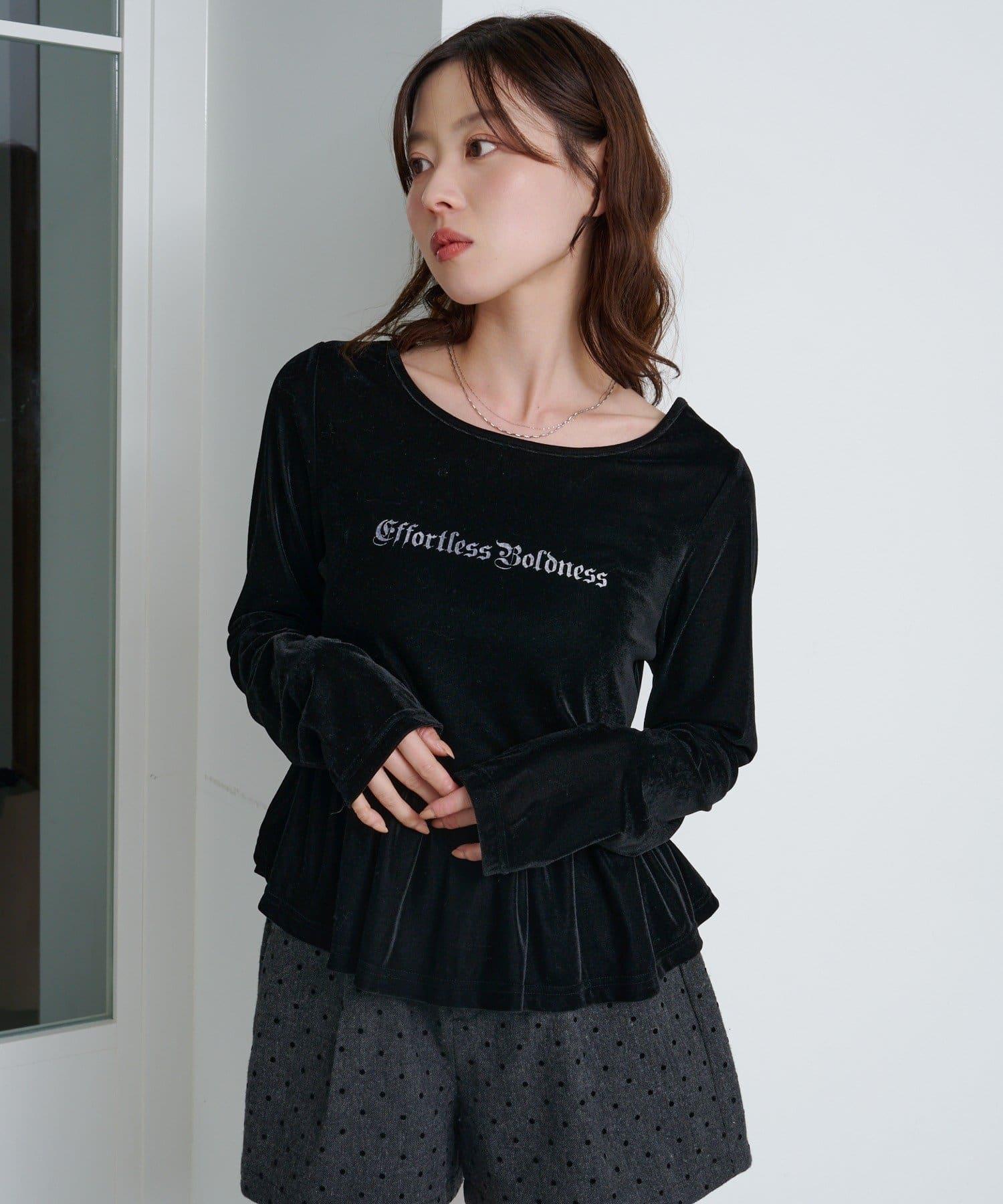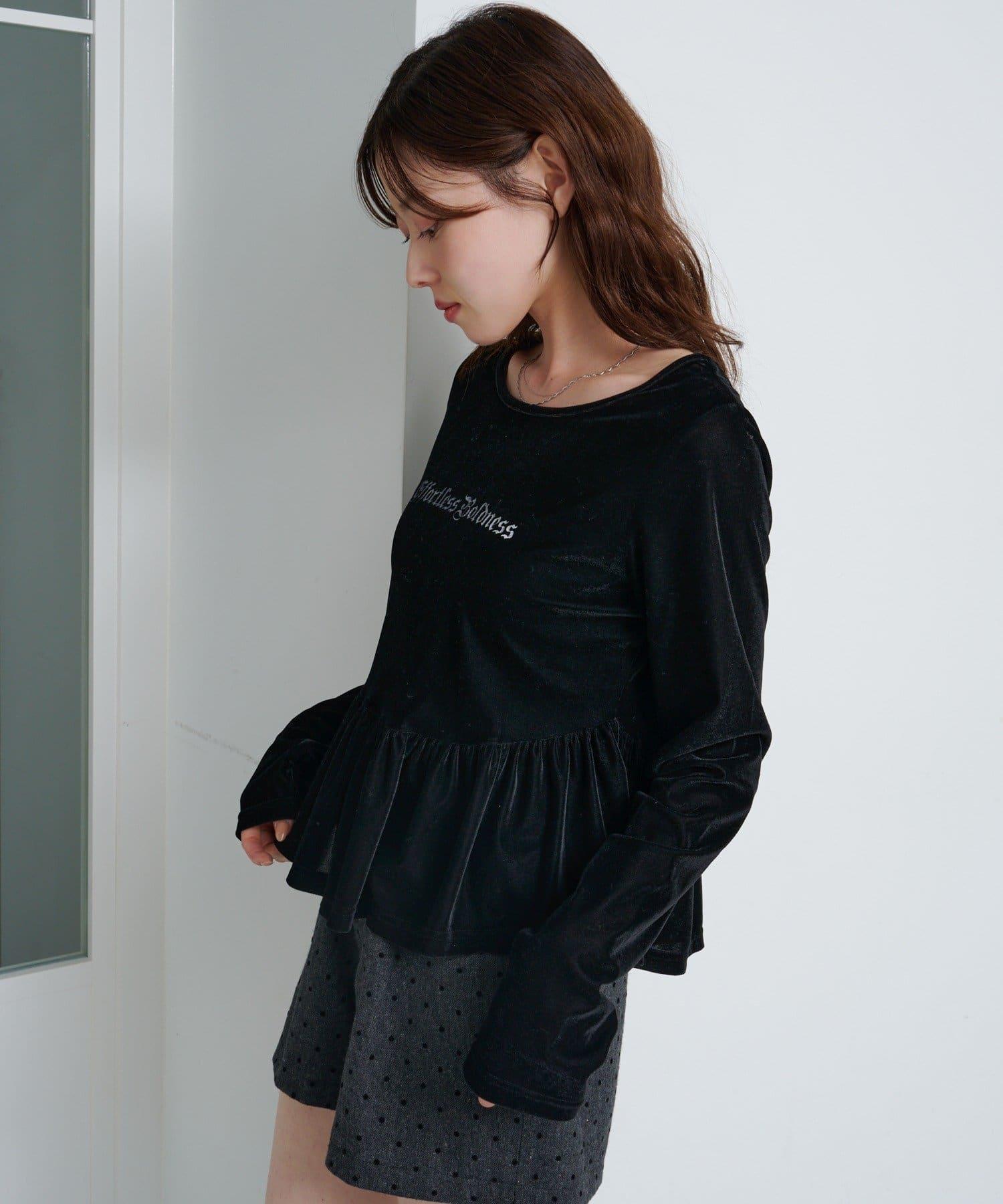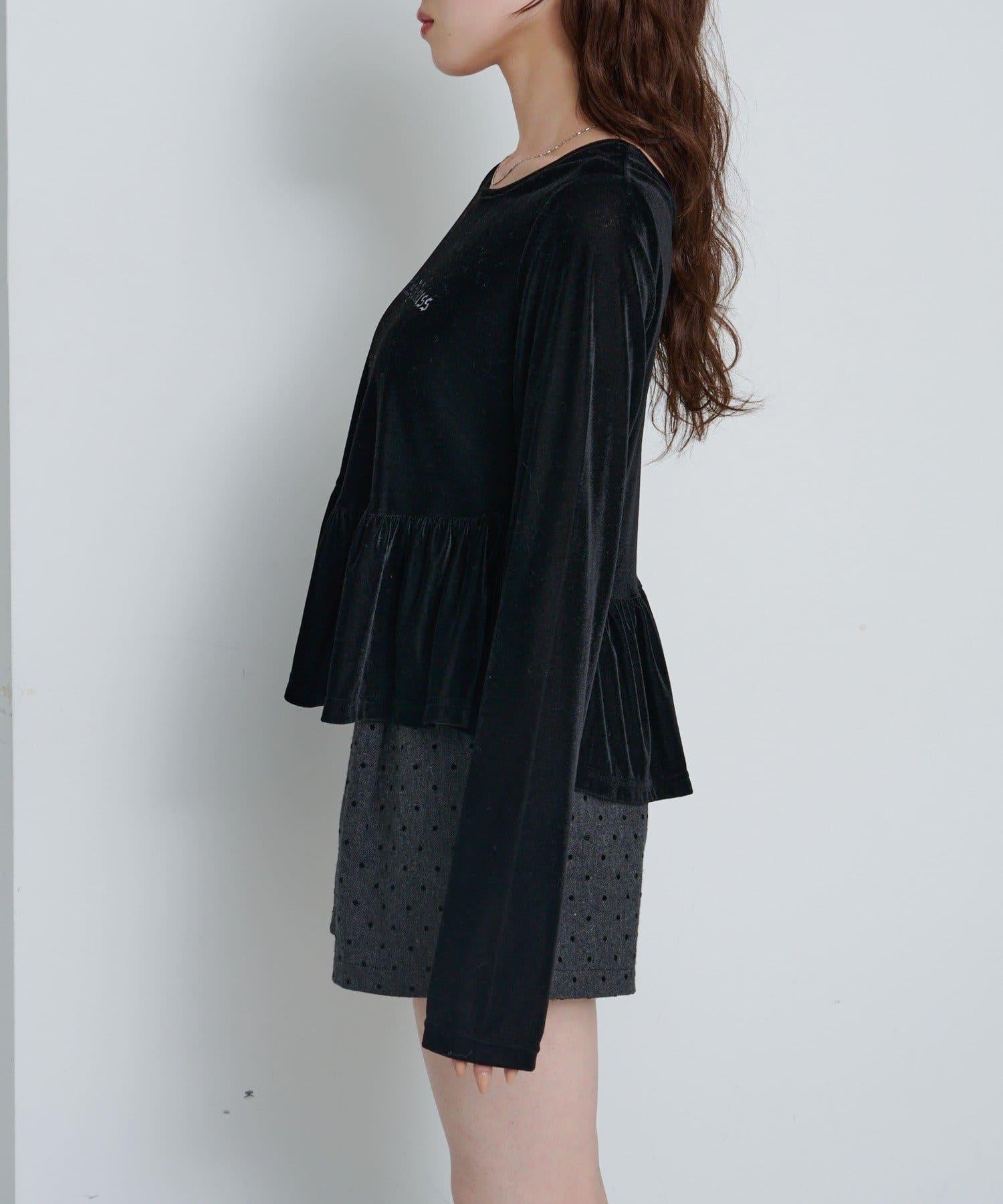 徽標浮雕蓬蓬裙上衣,絲絨面料,光澤優雅。