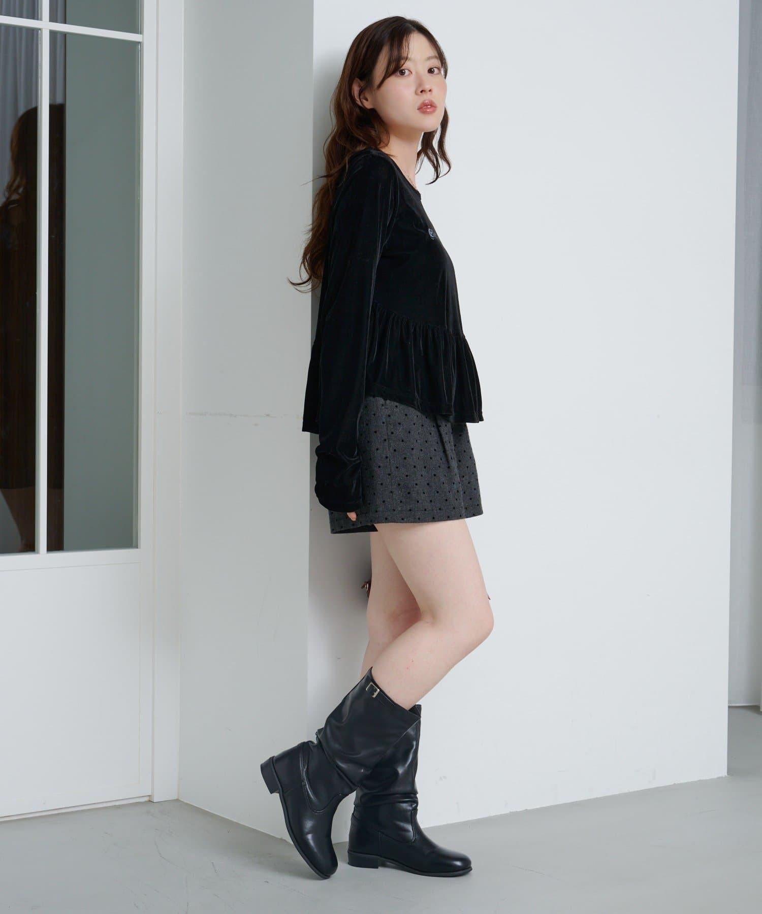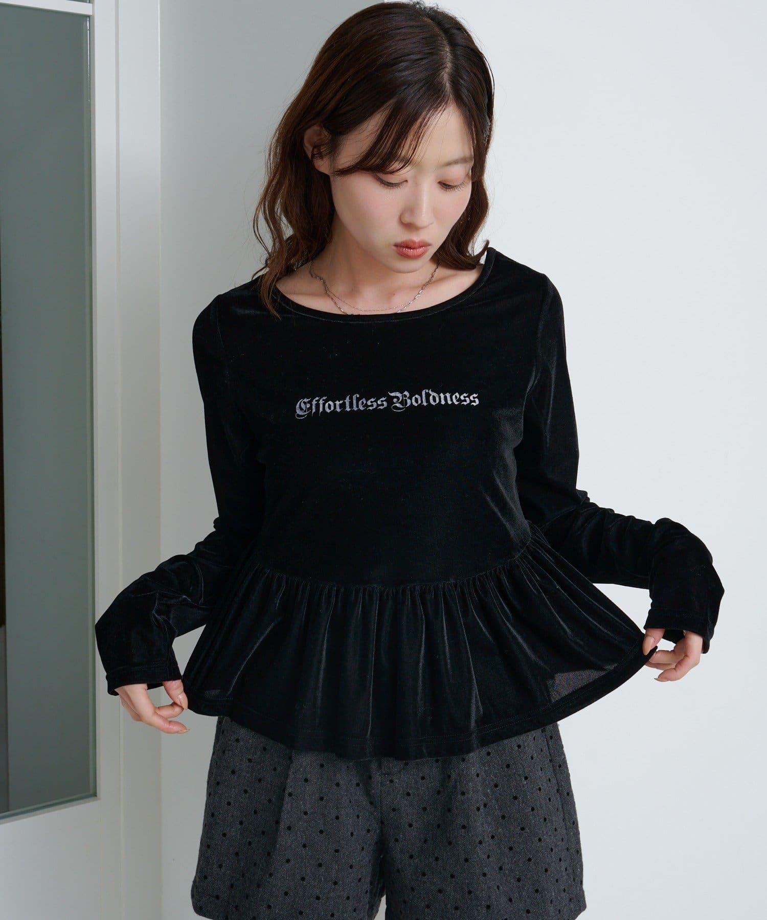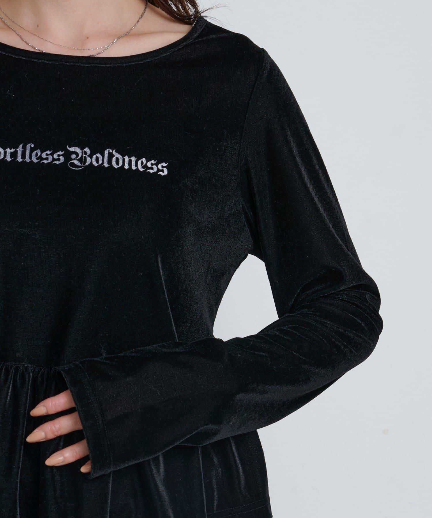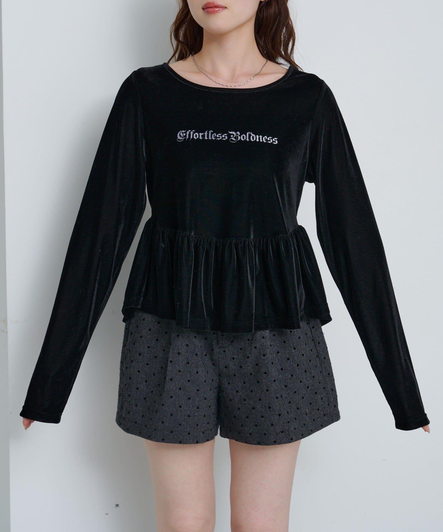 徽標浮雕蓬蓬裙上衣,絲絨面料,光澤優雅。