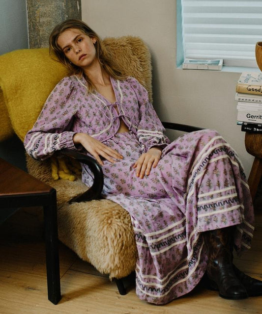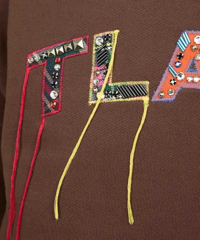 在平紋和格紋面料上繡上補丁,然後手工鑲上飾品、珠子和鉚釘。