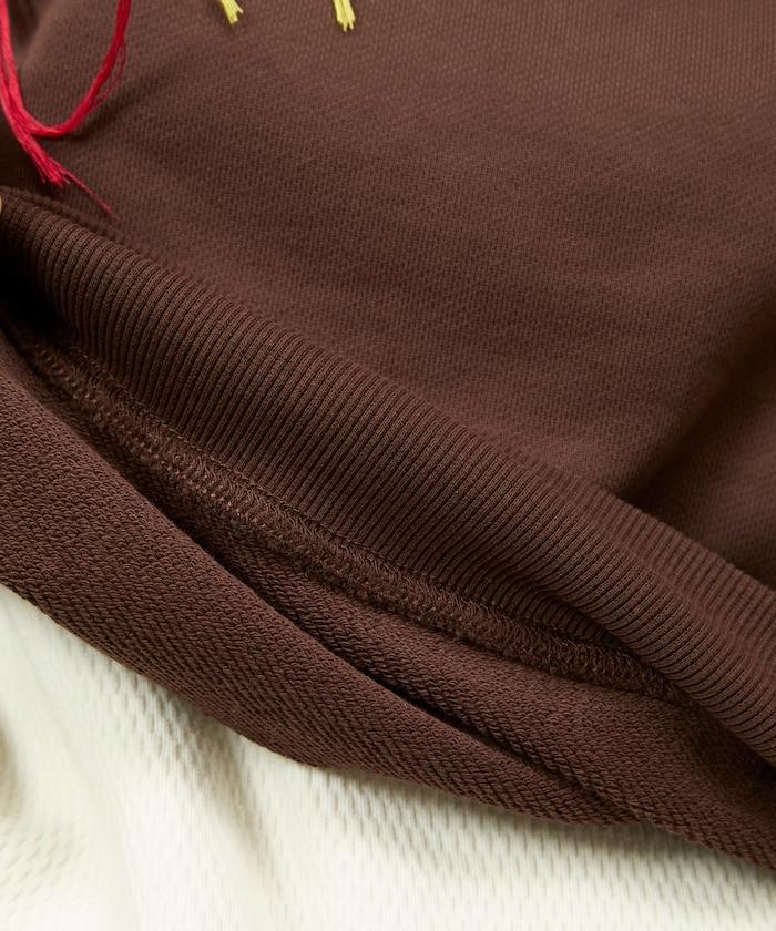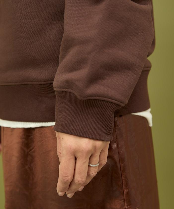 面料是 100% 純棉運動衫面料。它的厚度適中,既不會太重也不會太輕,這樣的平衡使它在整個季節都易於穿著。