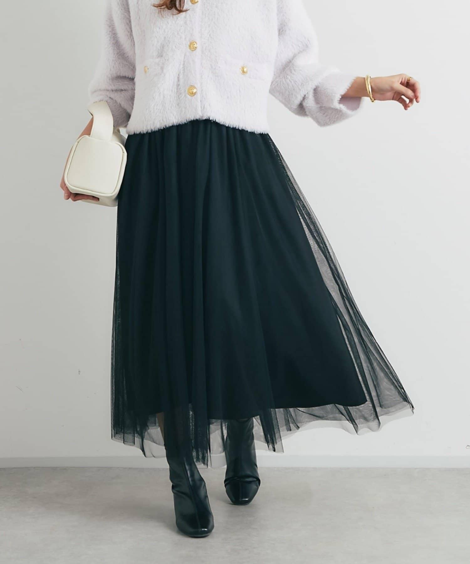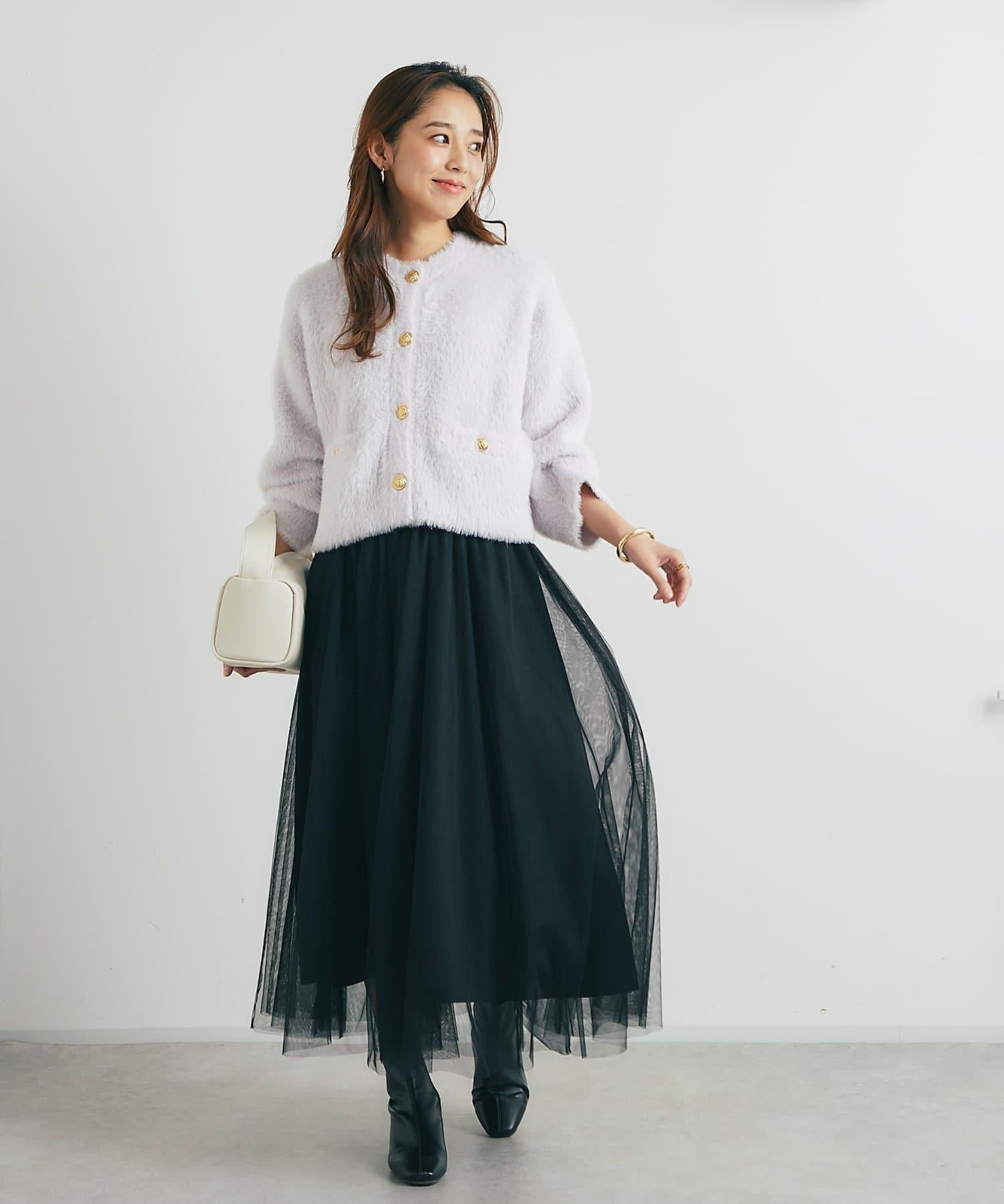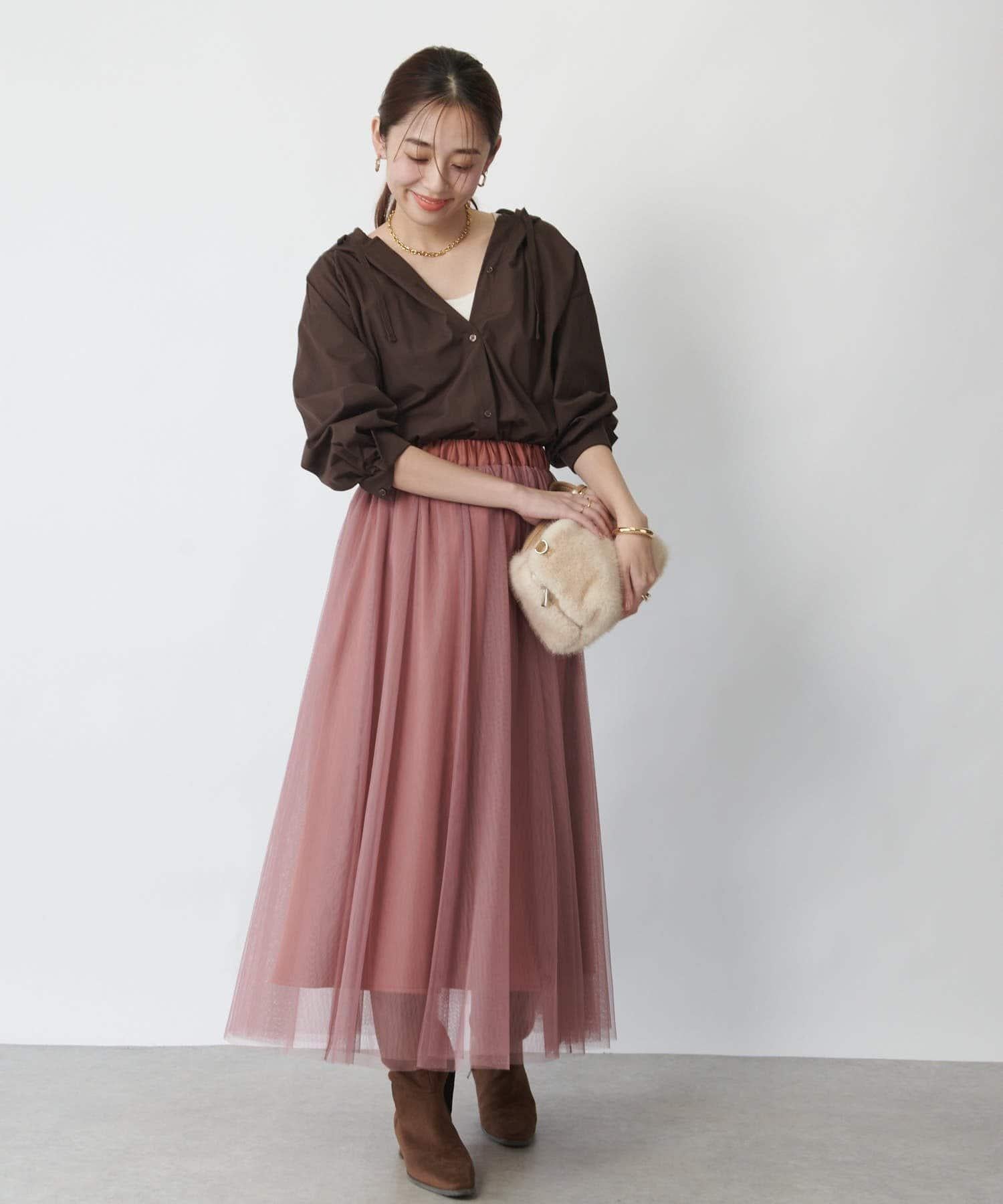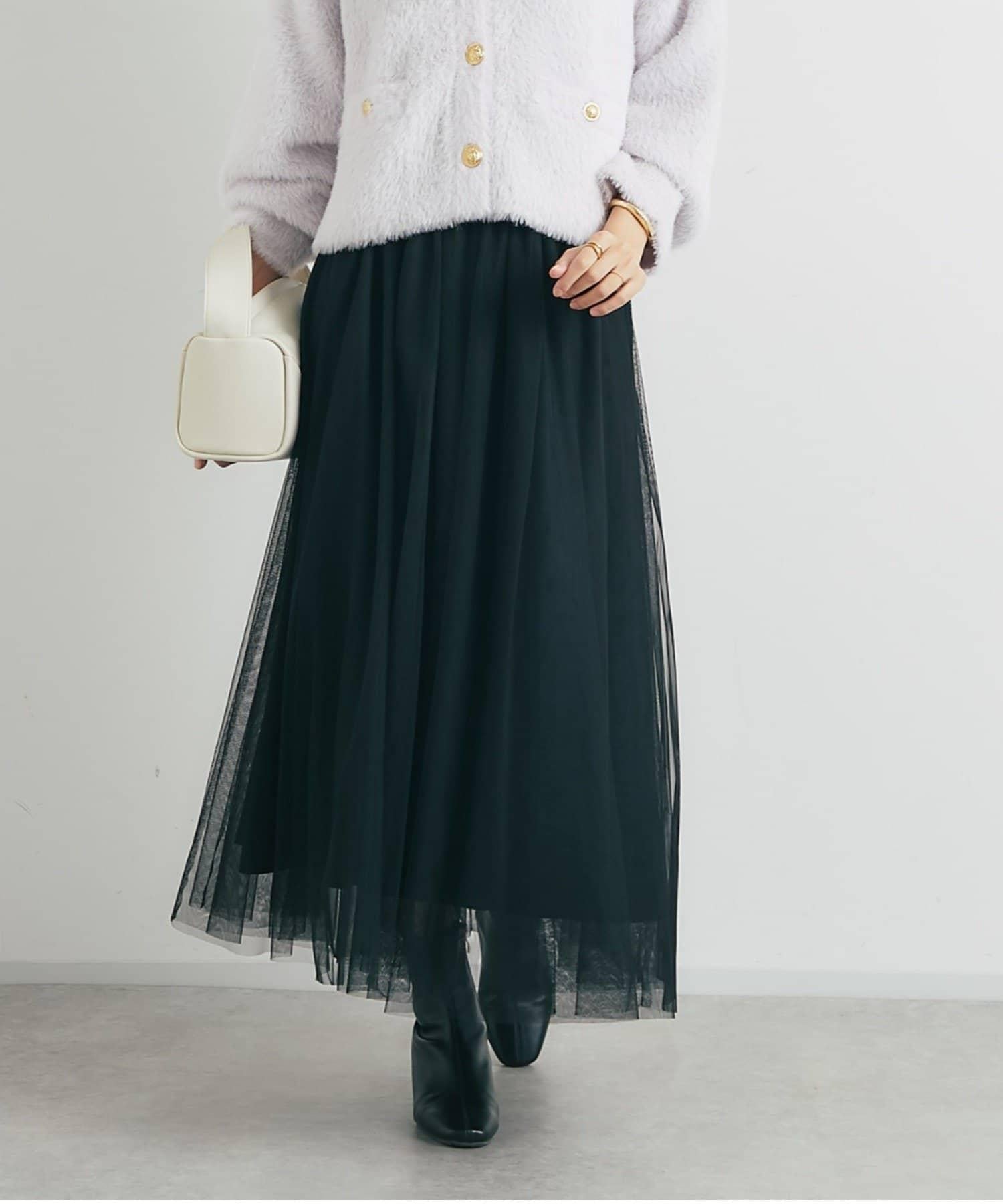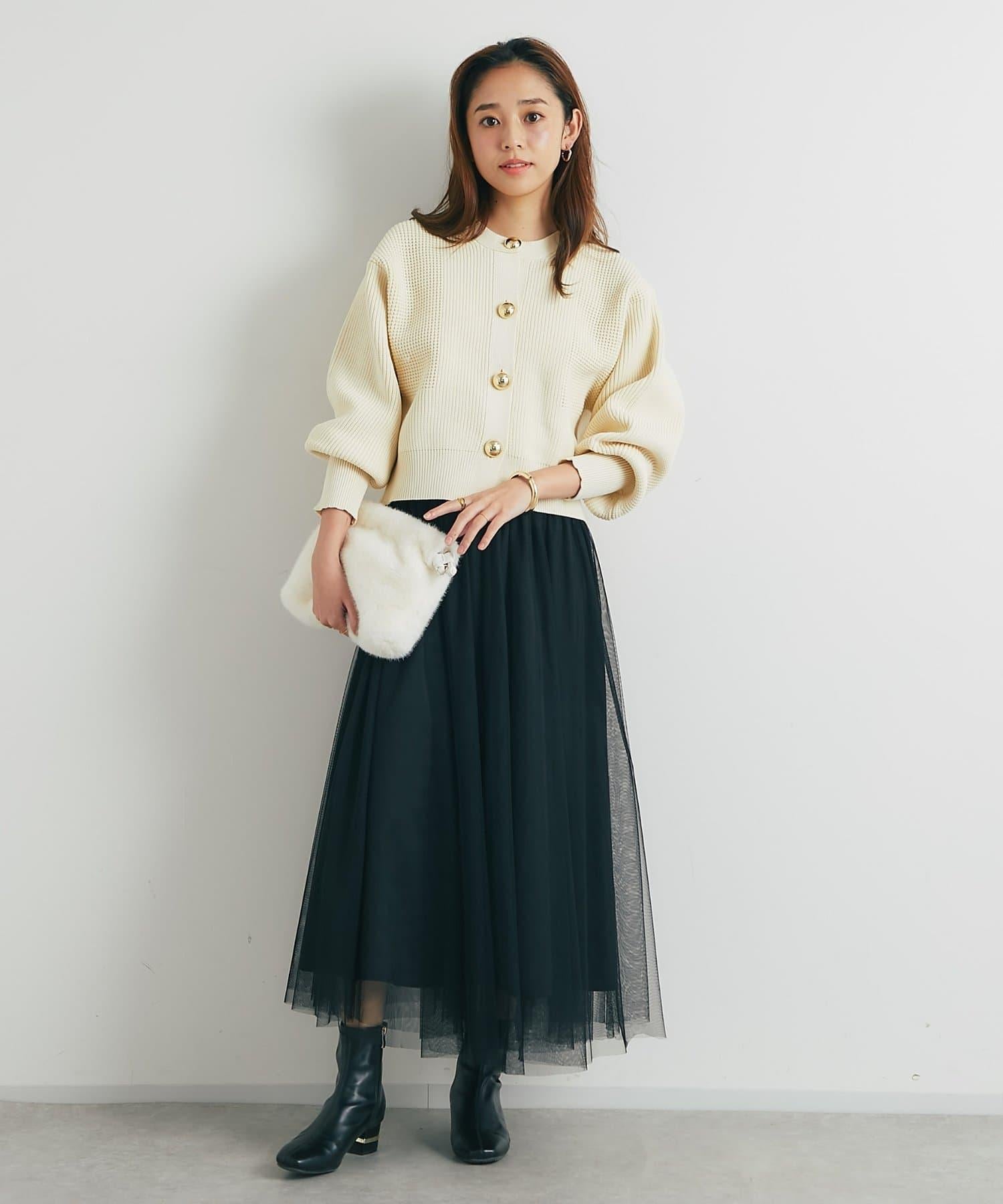這款裙子採用精緻的薄紗層疊設計,廓形輕盈飄逸,給人一種可愛的成熟感。