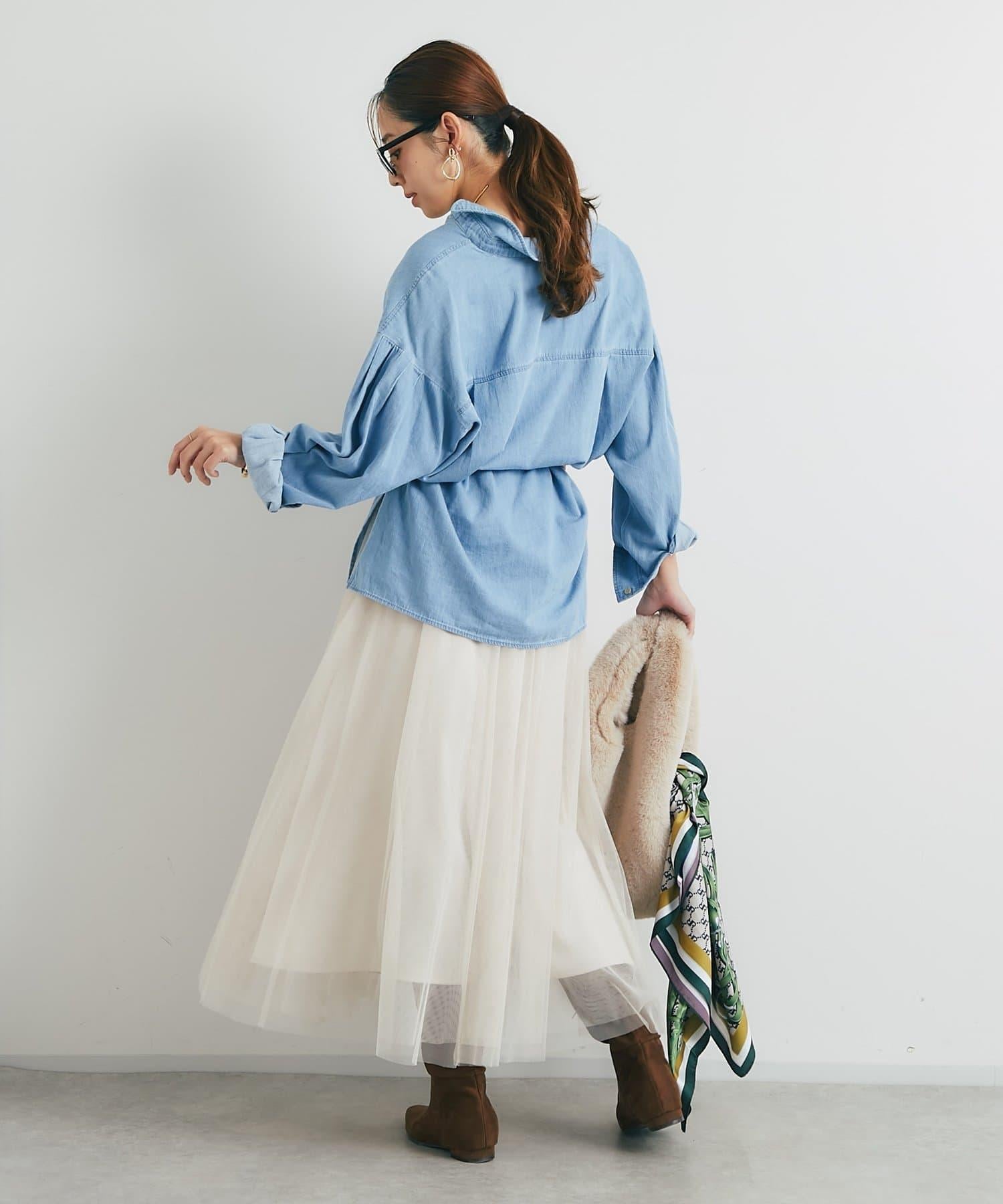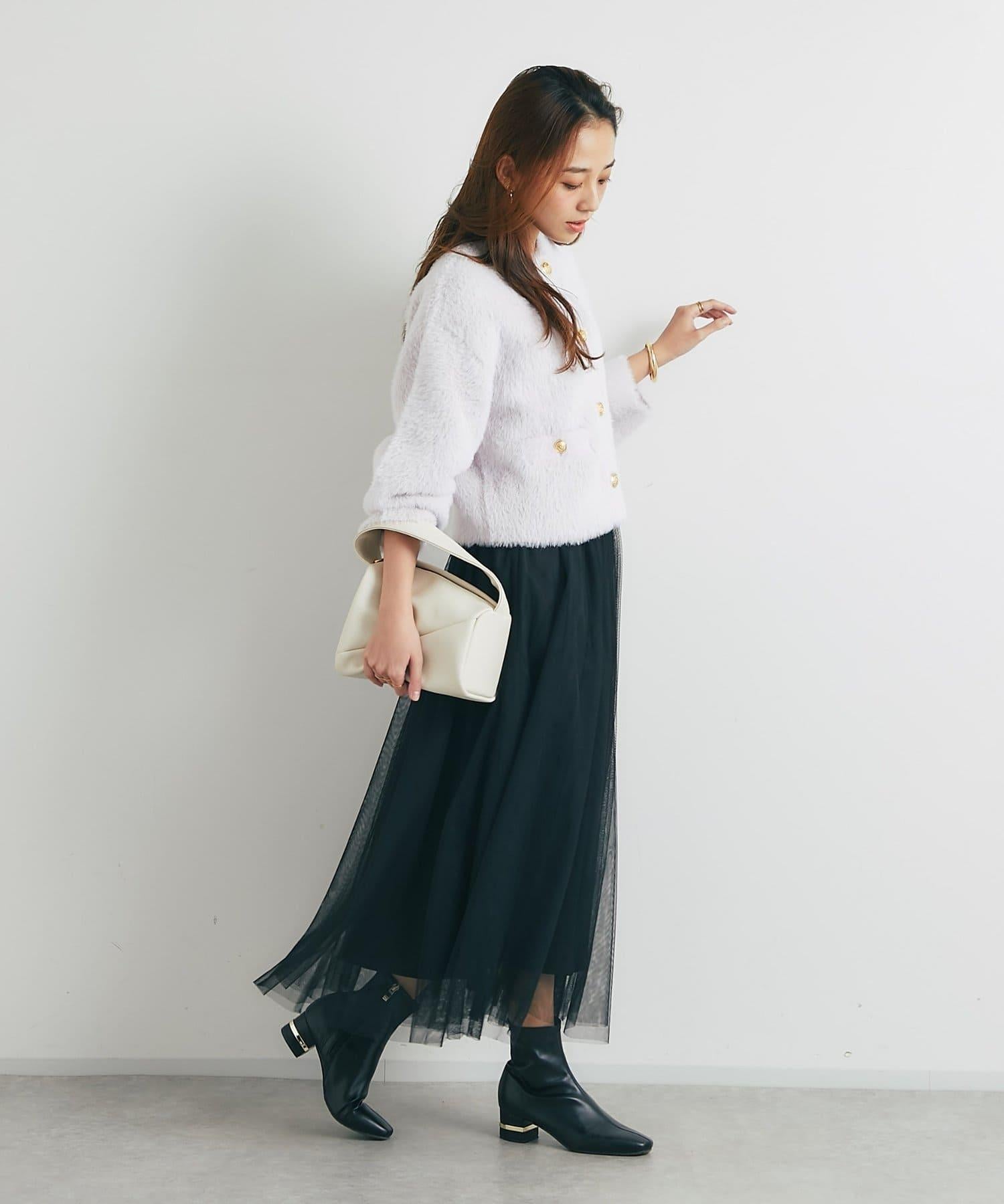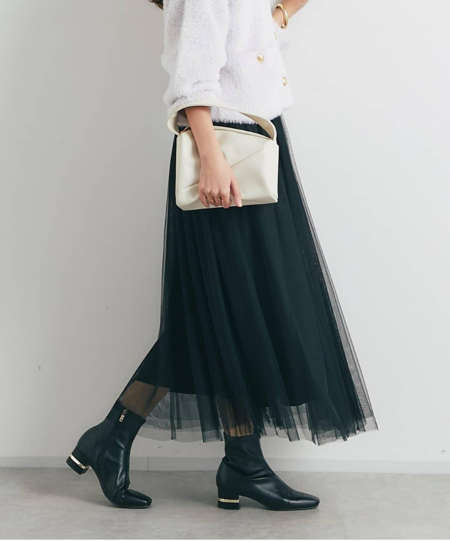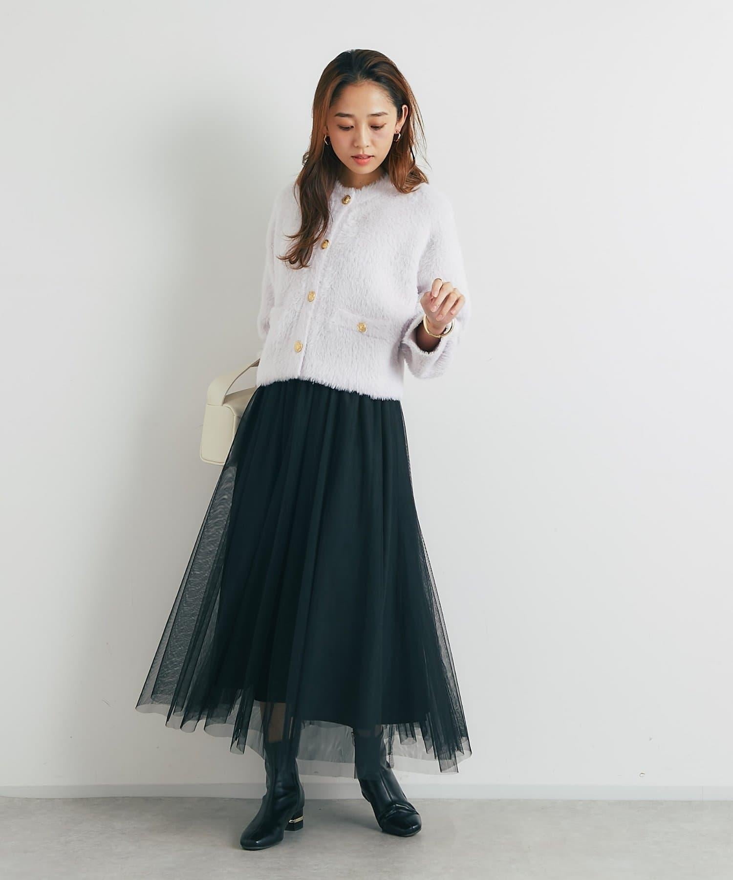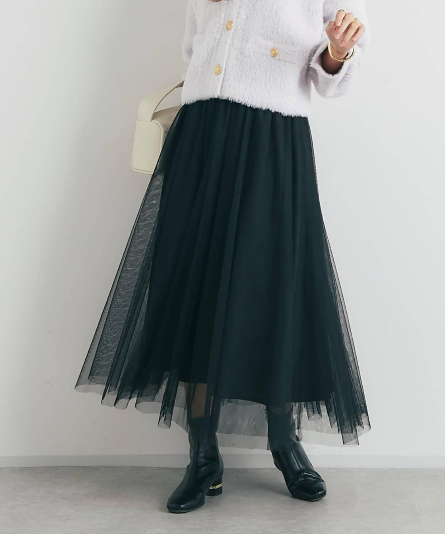 這款裙子採用精緻的薄紗層疊設計,廓形輕盈飄逸,給人一種可愛的成熟感。