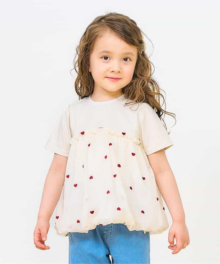 apres les cours 短袖 T 恤 "心形刺繡氣球對接上衣 "是一款時尚單品,為自然風格增添了微妙的設計感*。