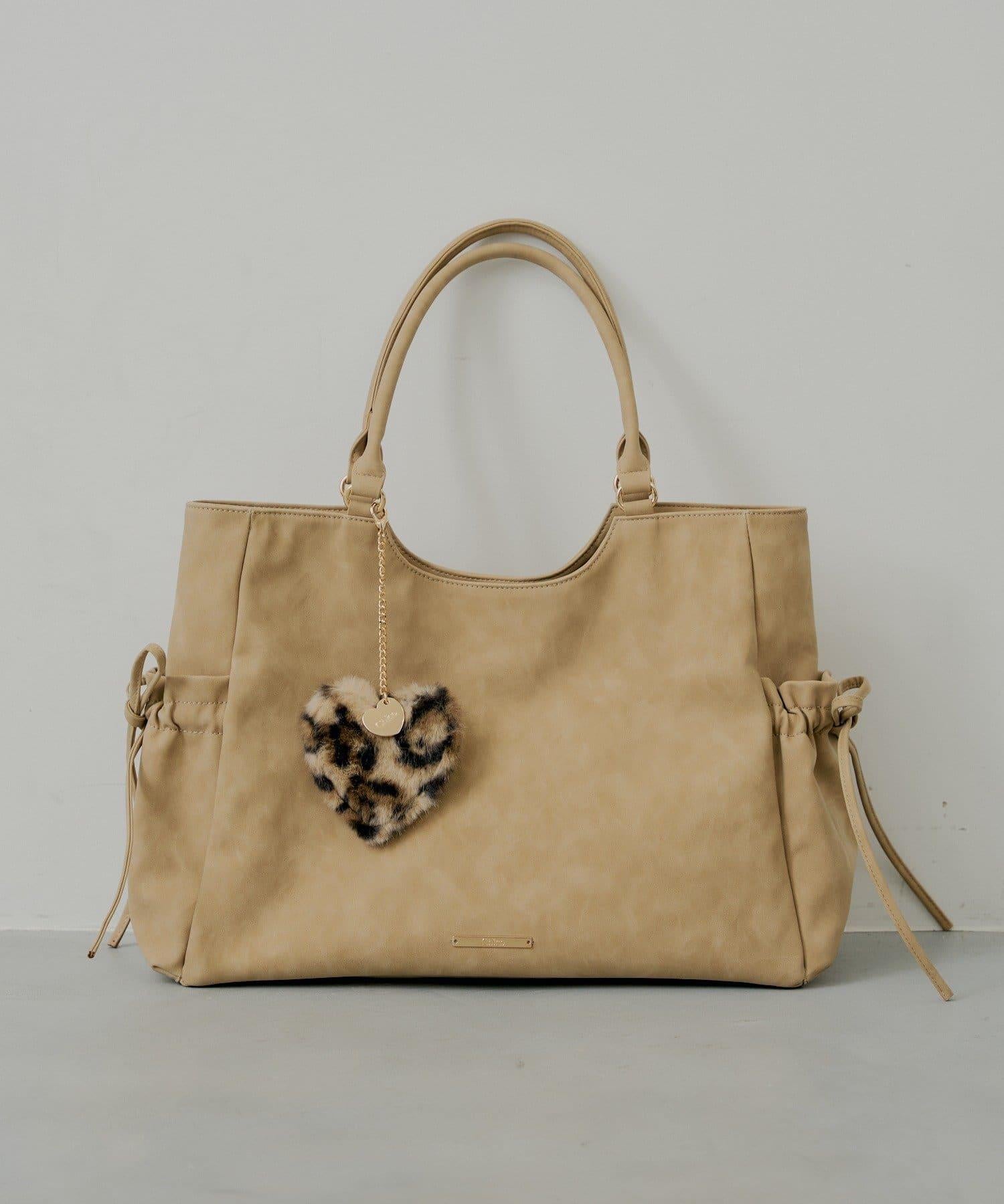 一款帶有心形皮草吊飾的手提包,成熟可愛!