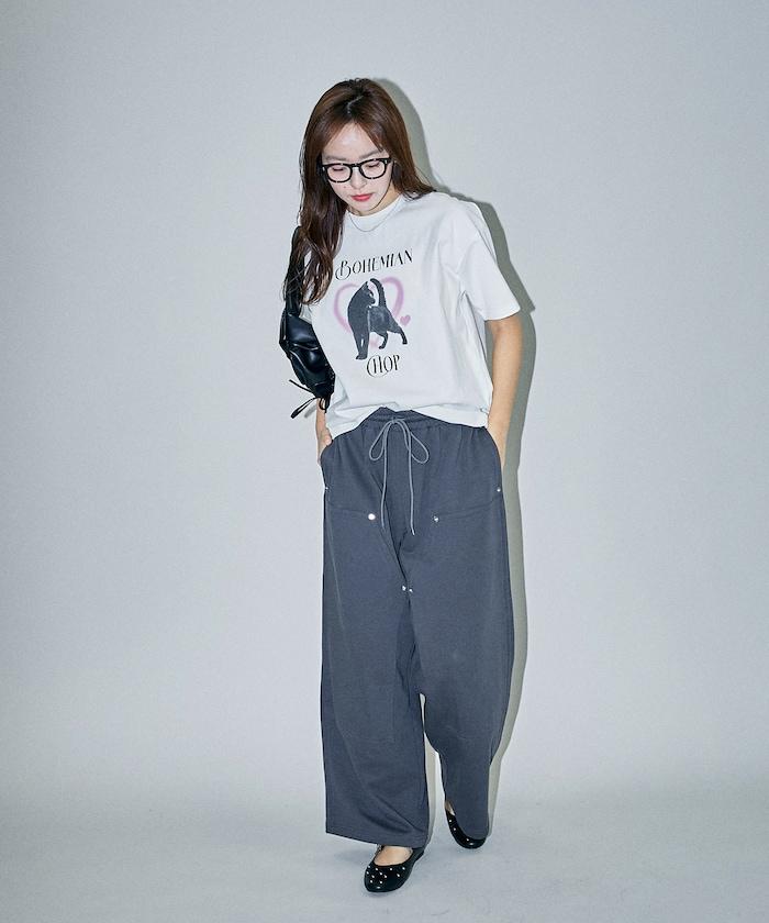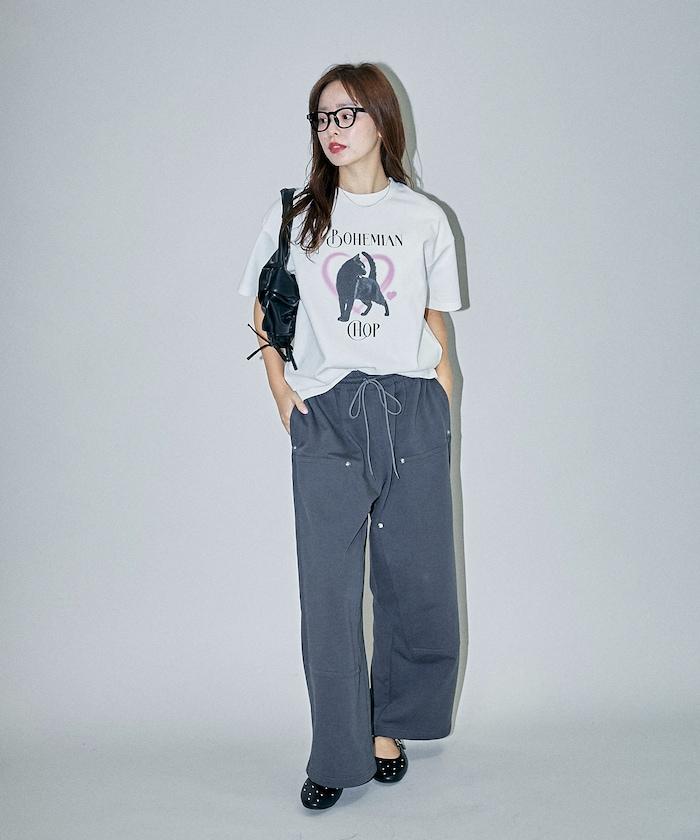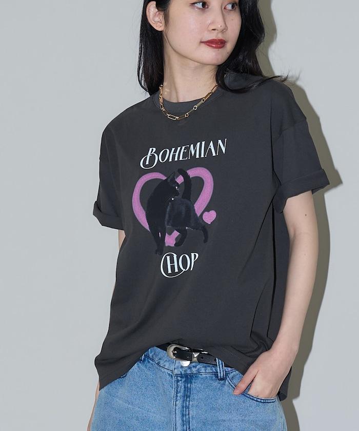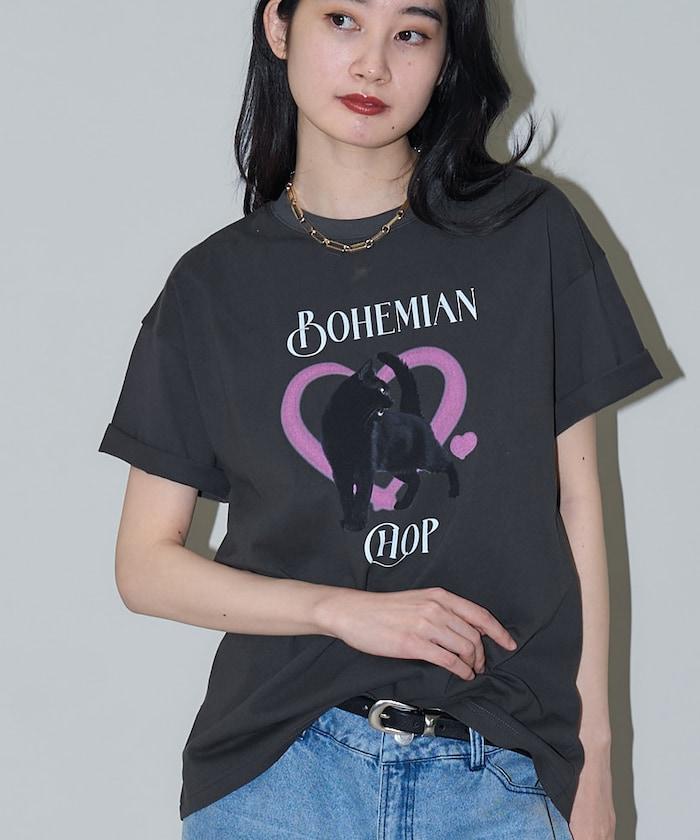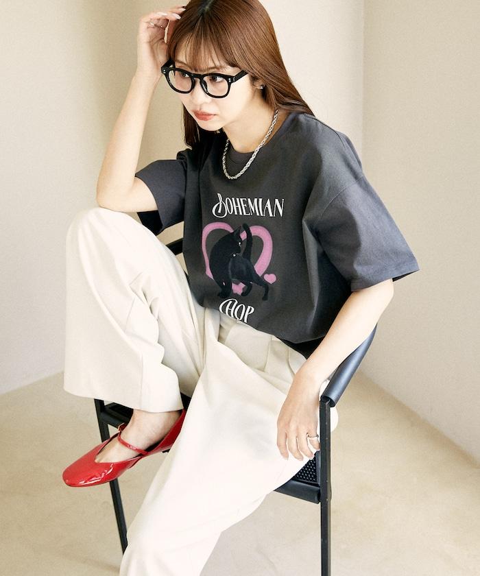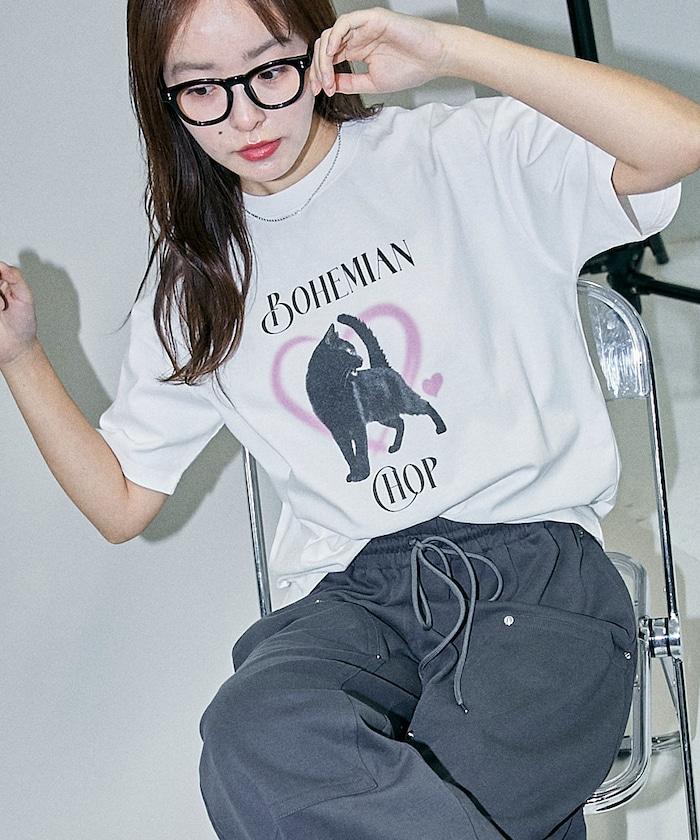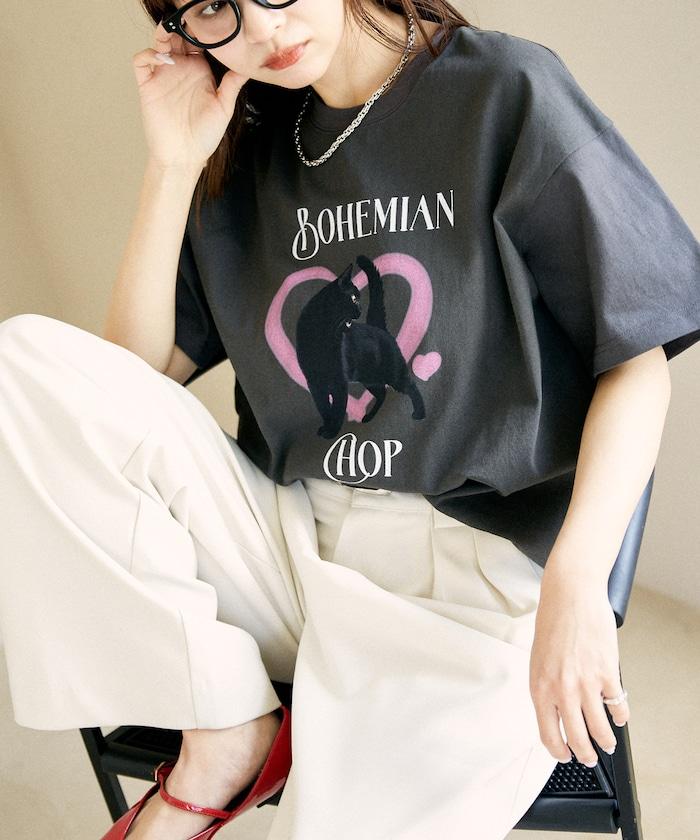 黑貓與心形的組合是一款可愛的印花 T 恤。