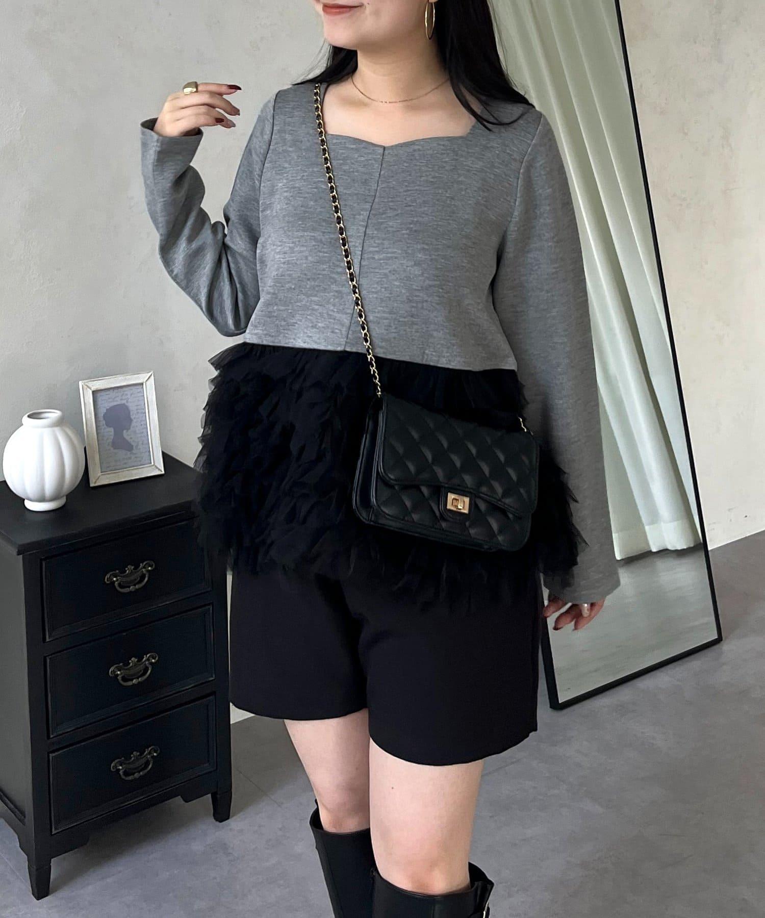 心形領口蓬鬆網紗荷葉邊上衣