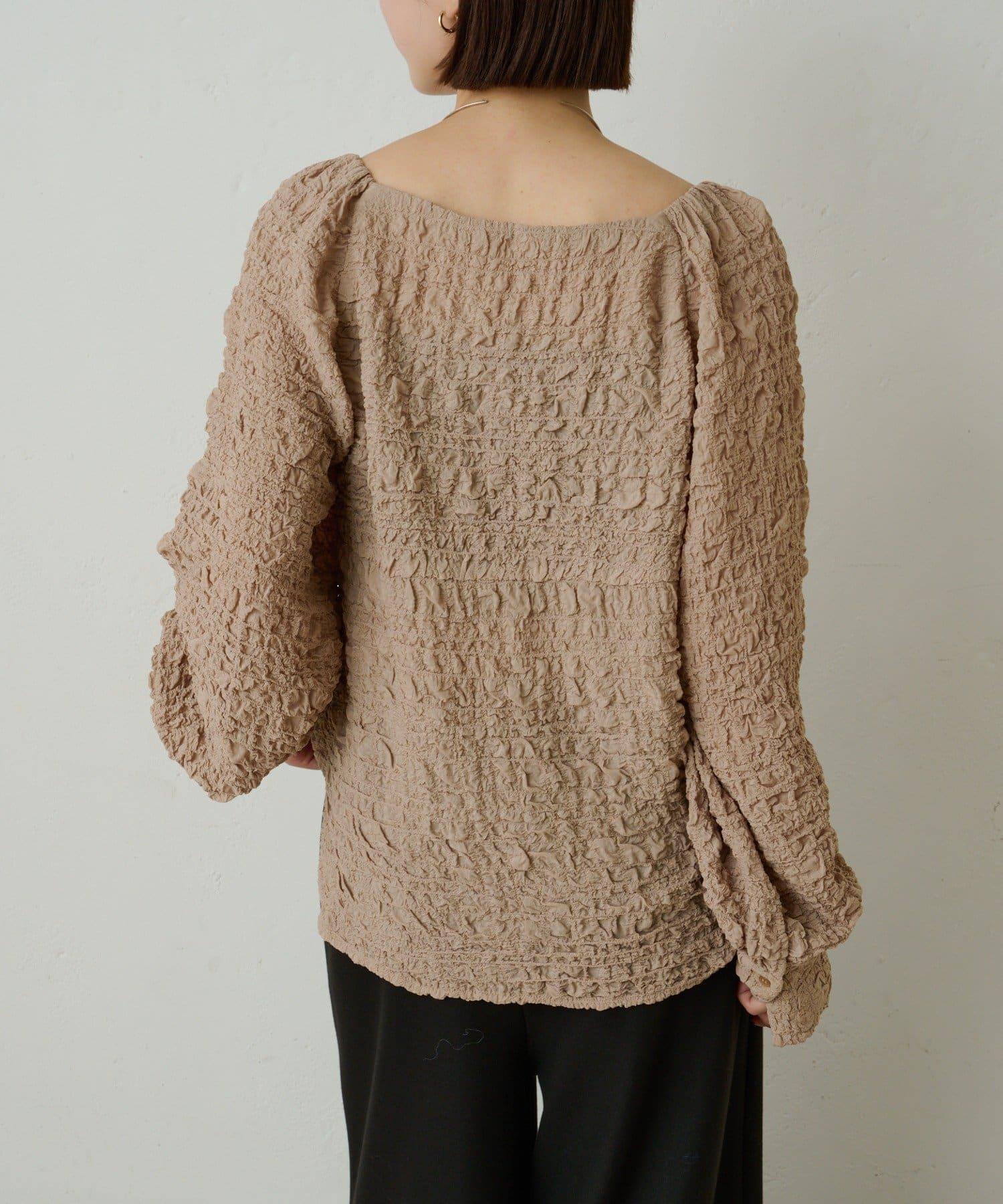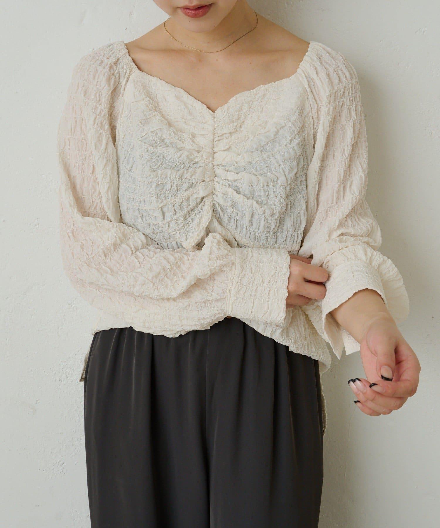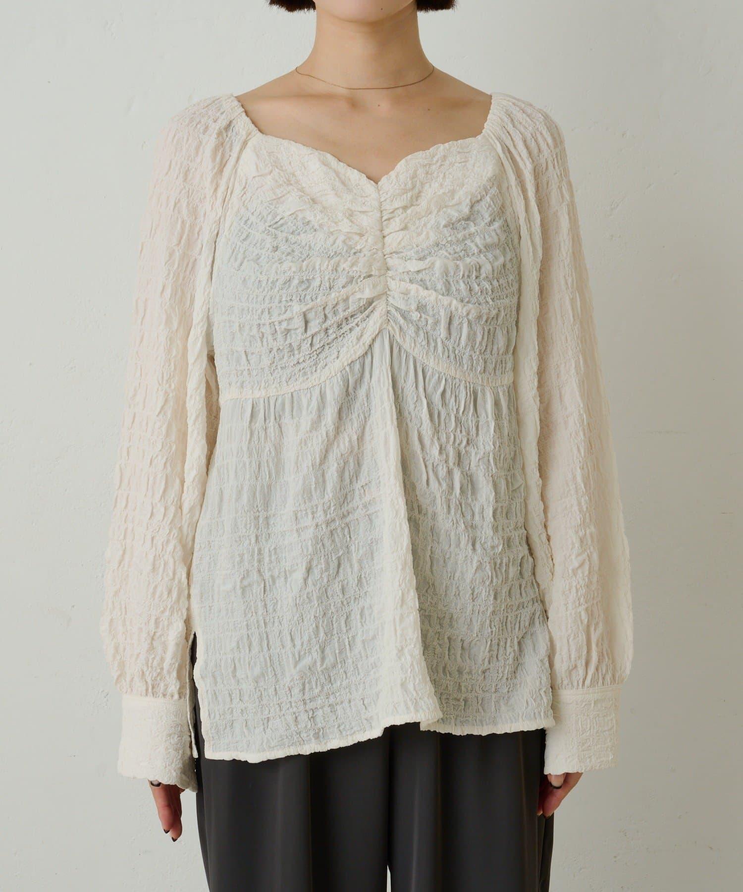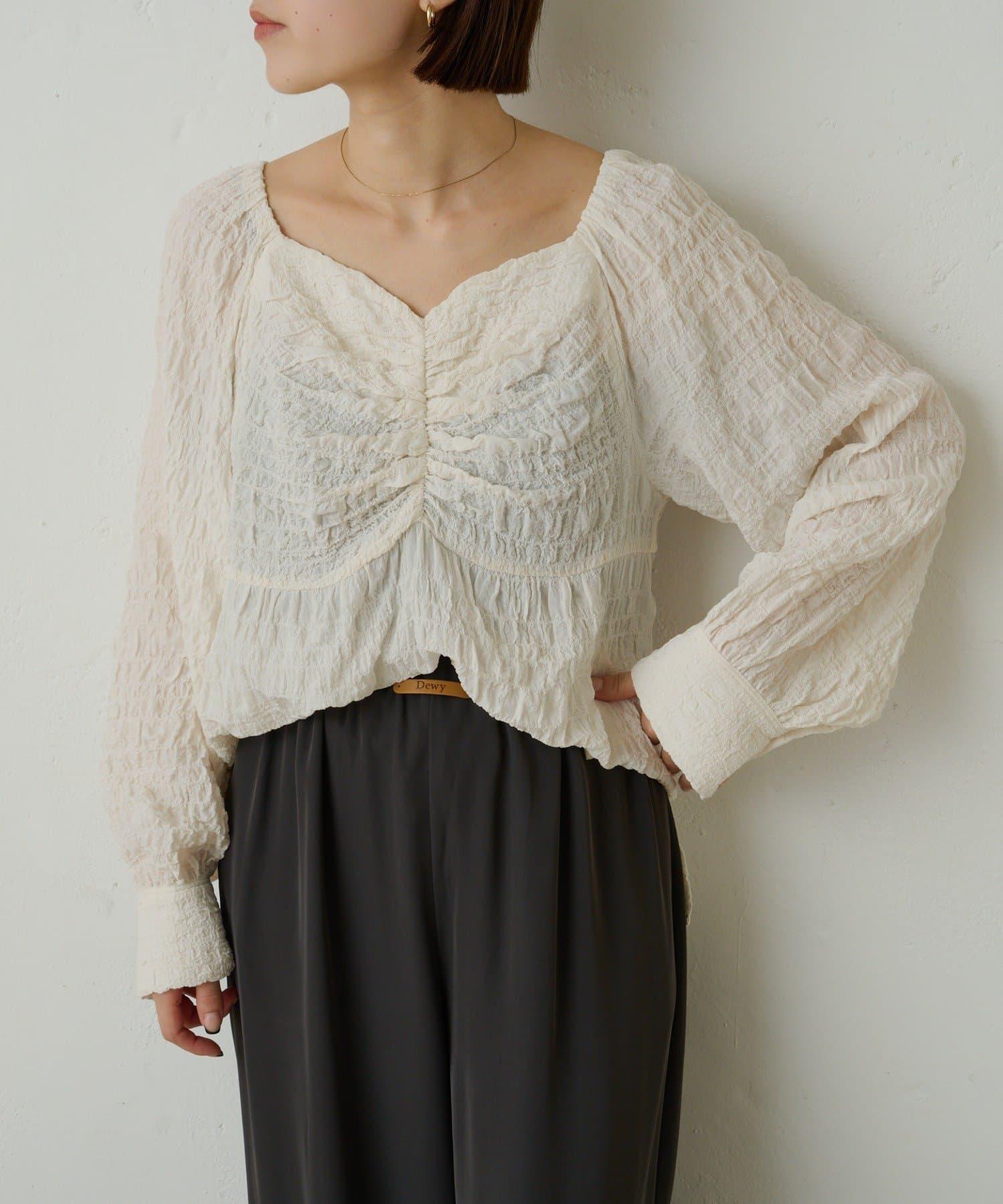 這款心形領上衣胸前的設計和凹凸不平的面料是這款上衣的亮點。