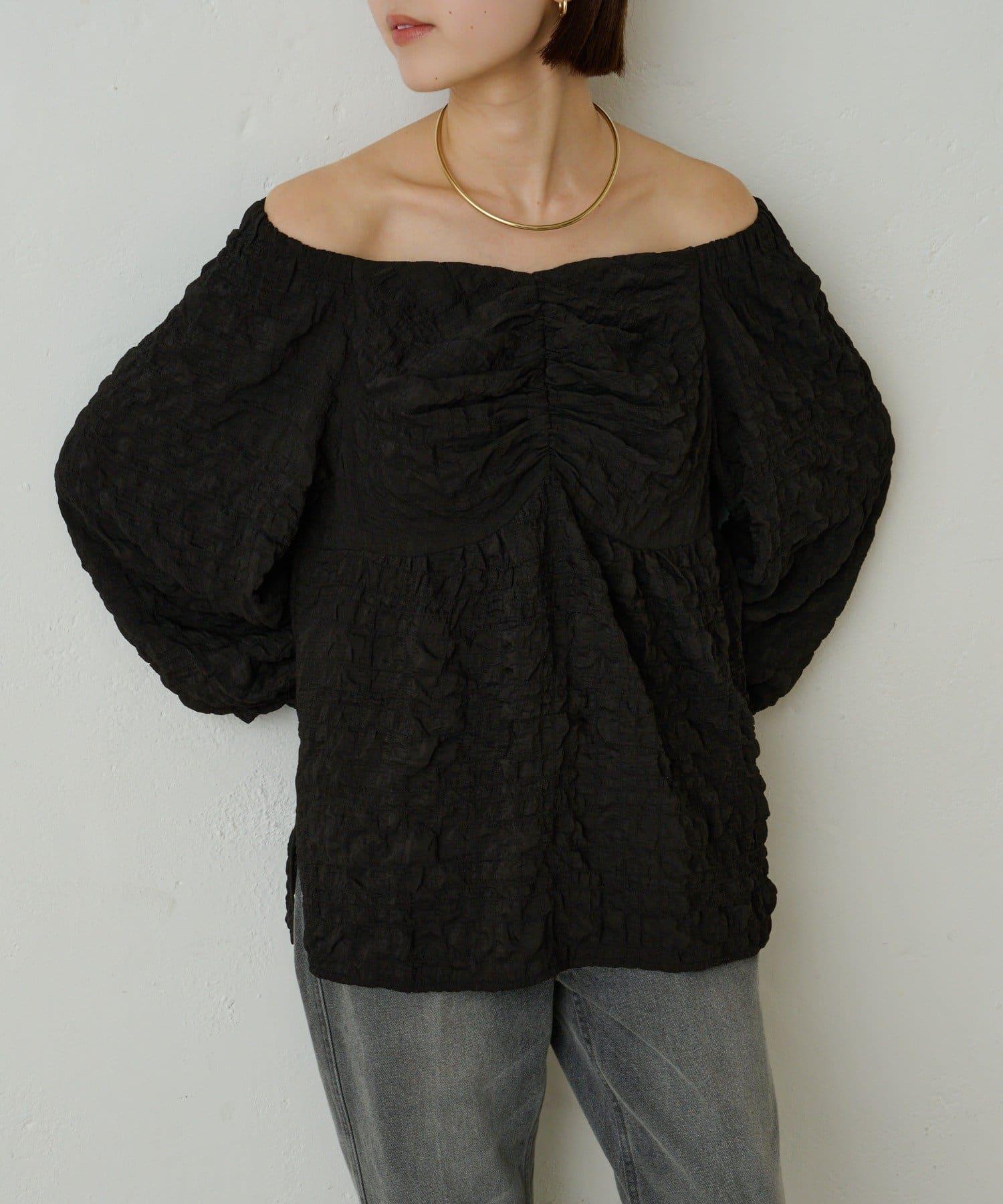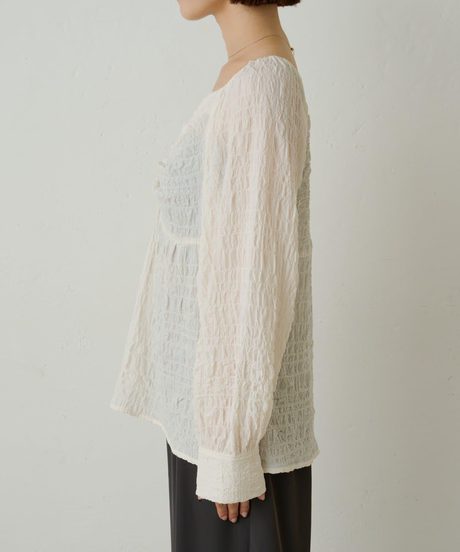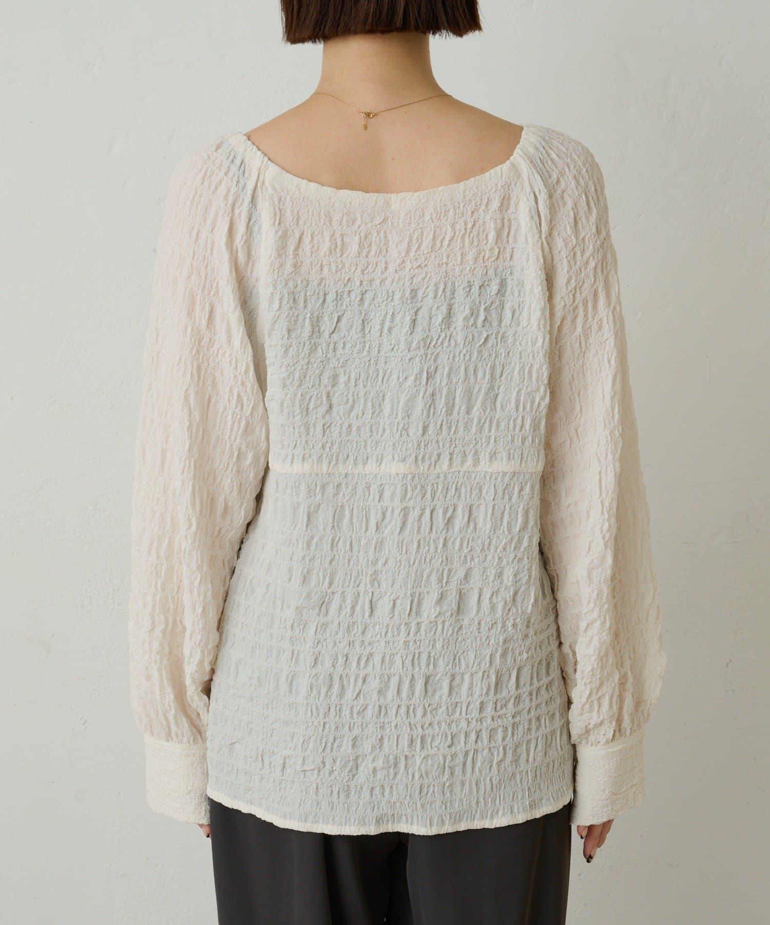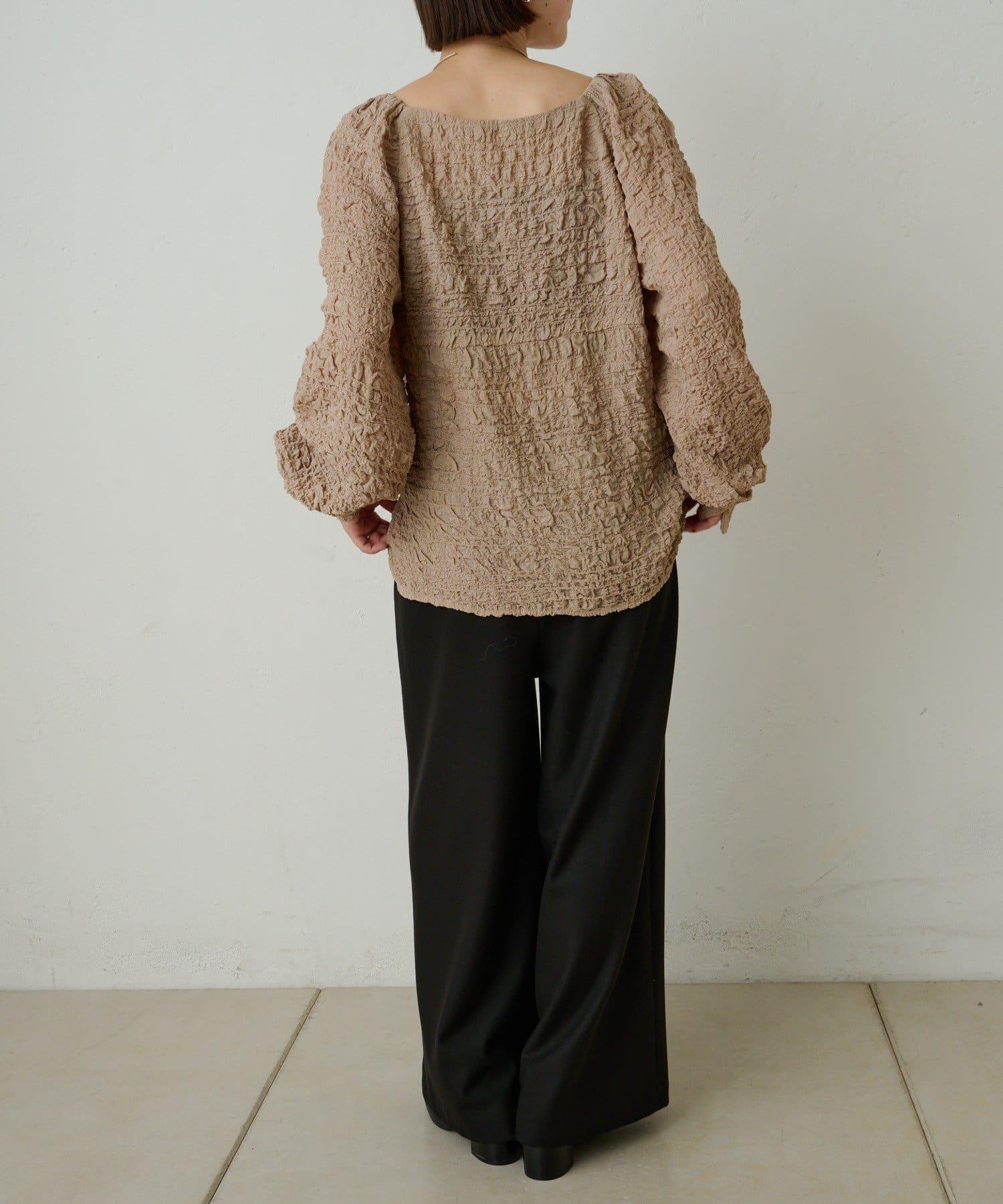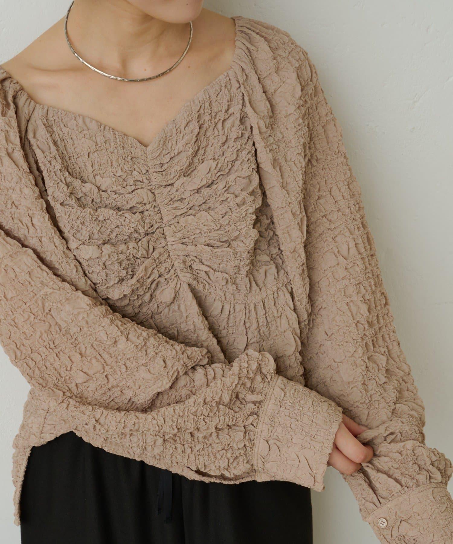 這款心形領上衣胸前的設計和凹凸不平的面料是這款上衣的亮點。
