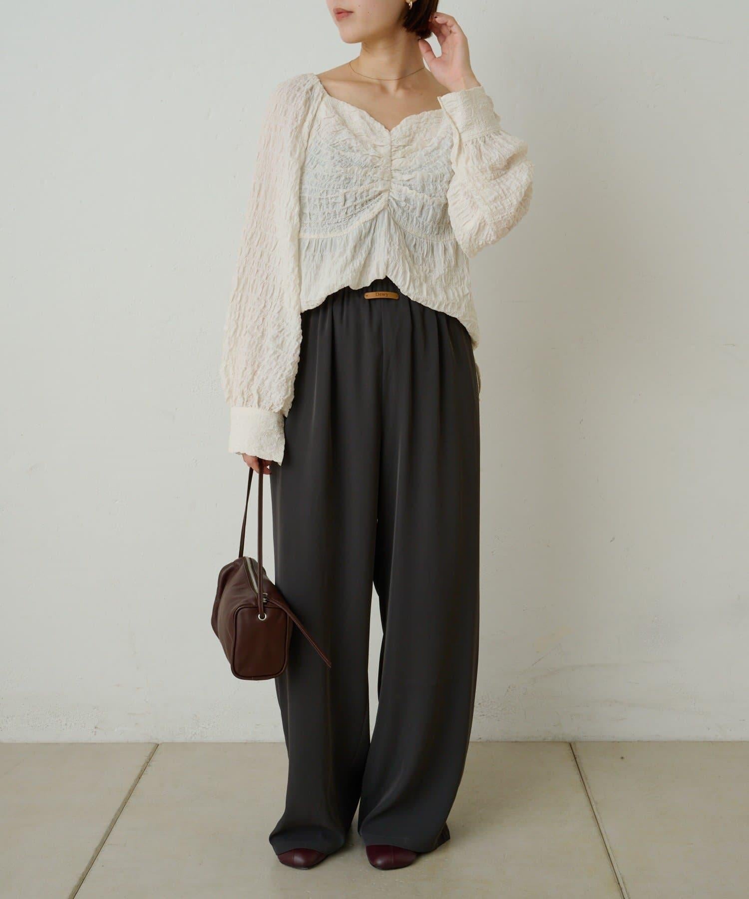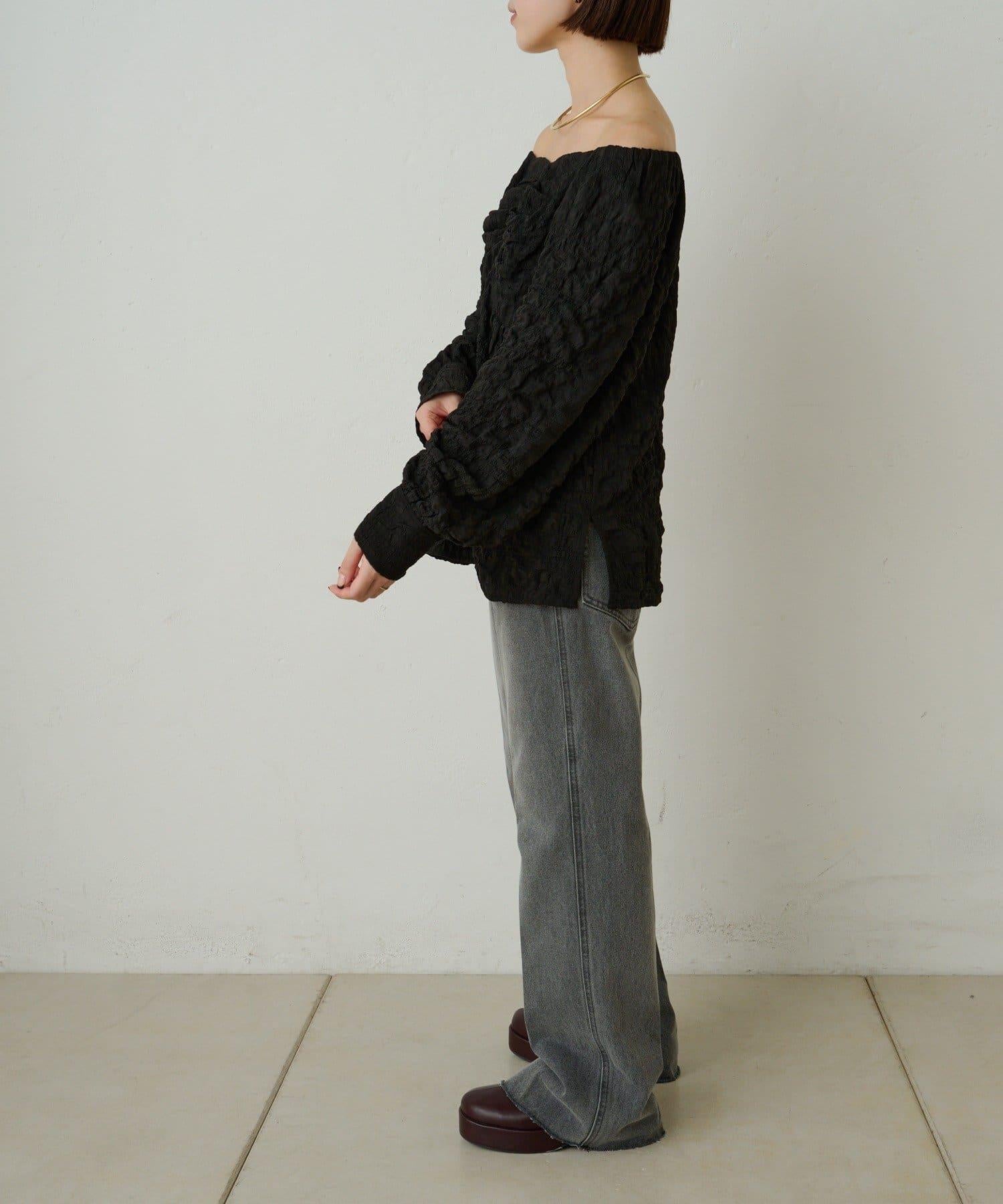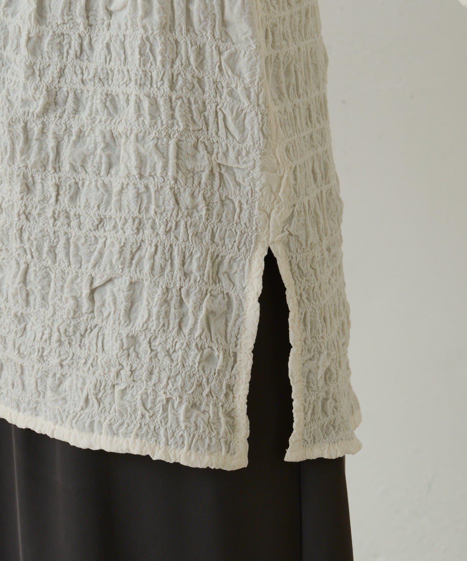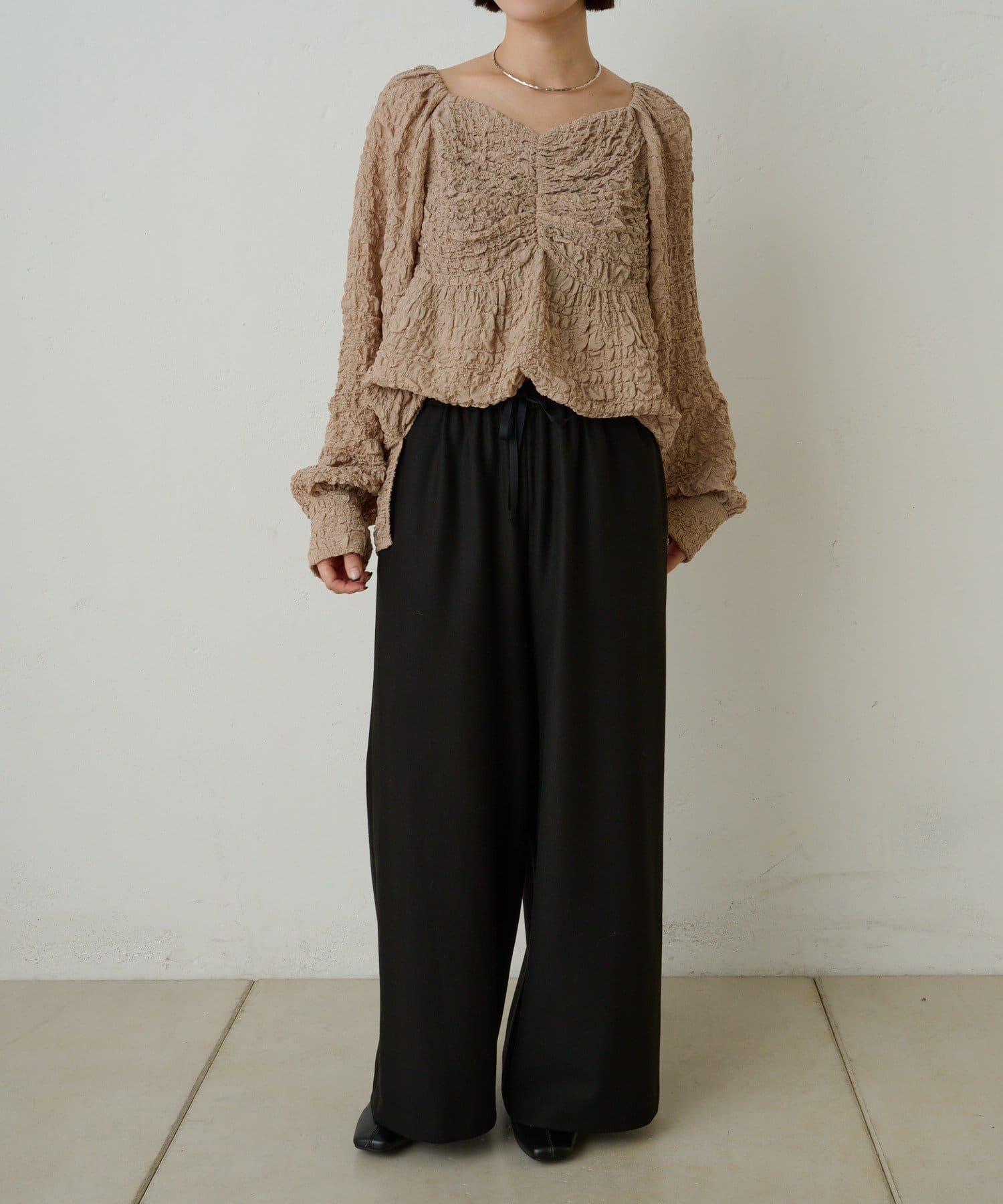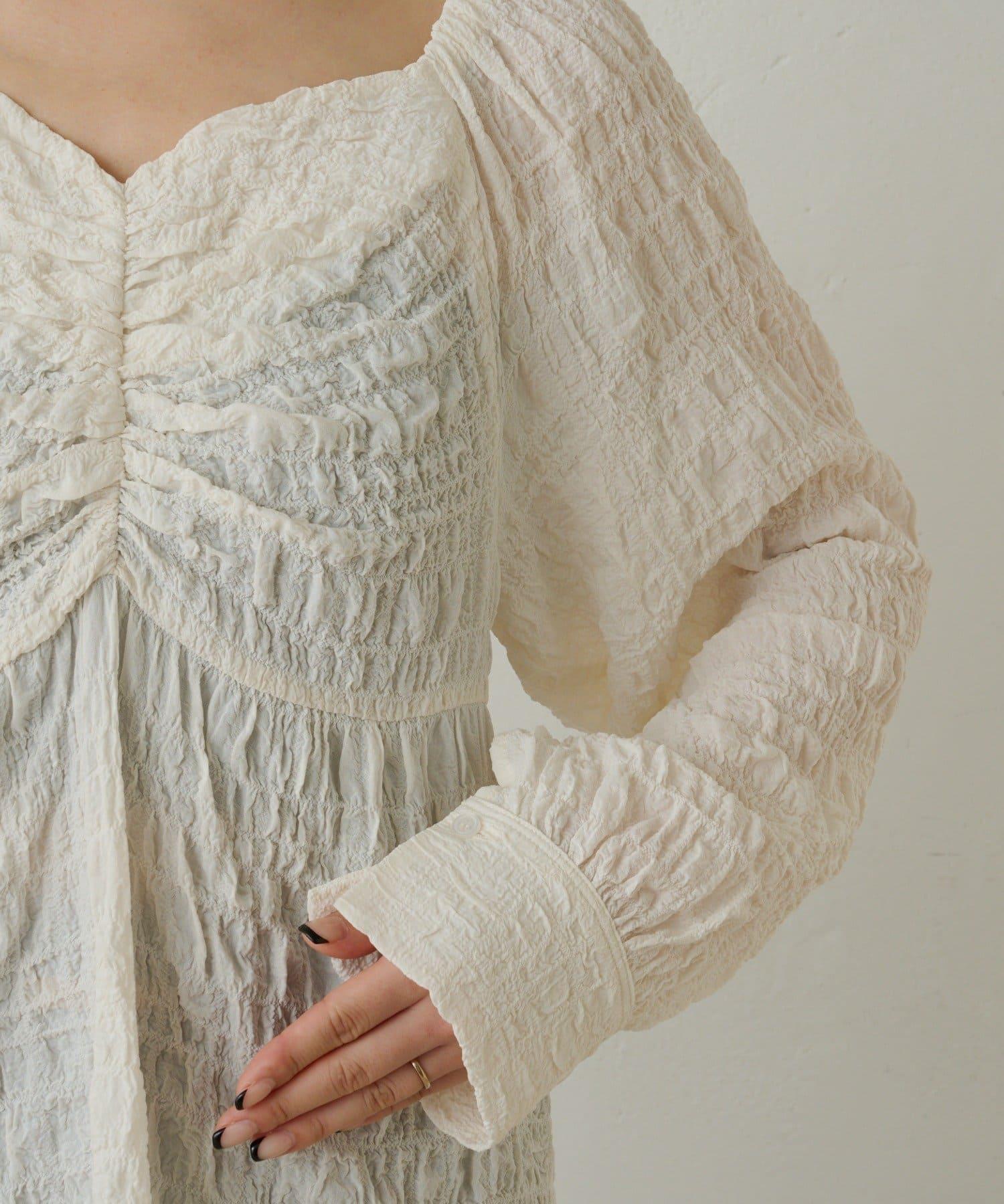 這款心形領上衣胸前的設計和凹凸不平的面料是這款上衣的亮點。