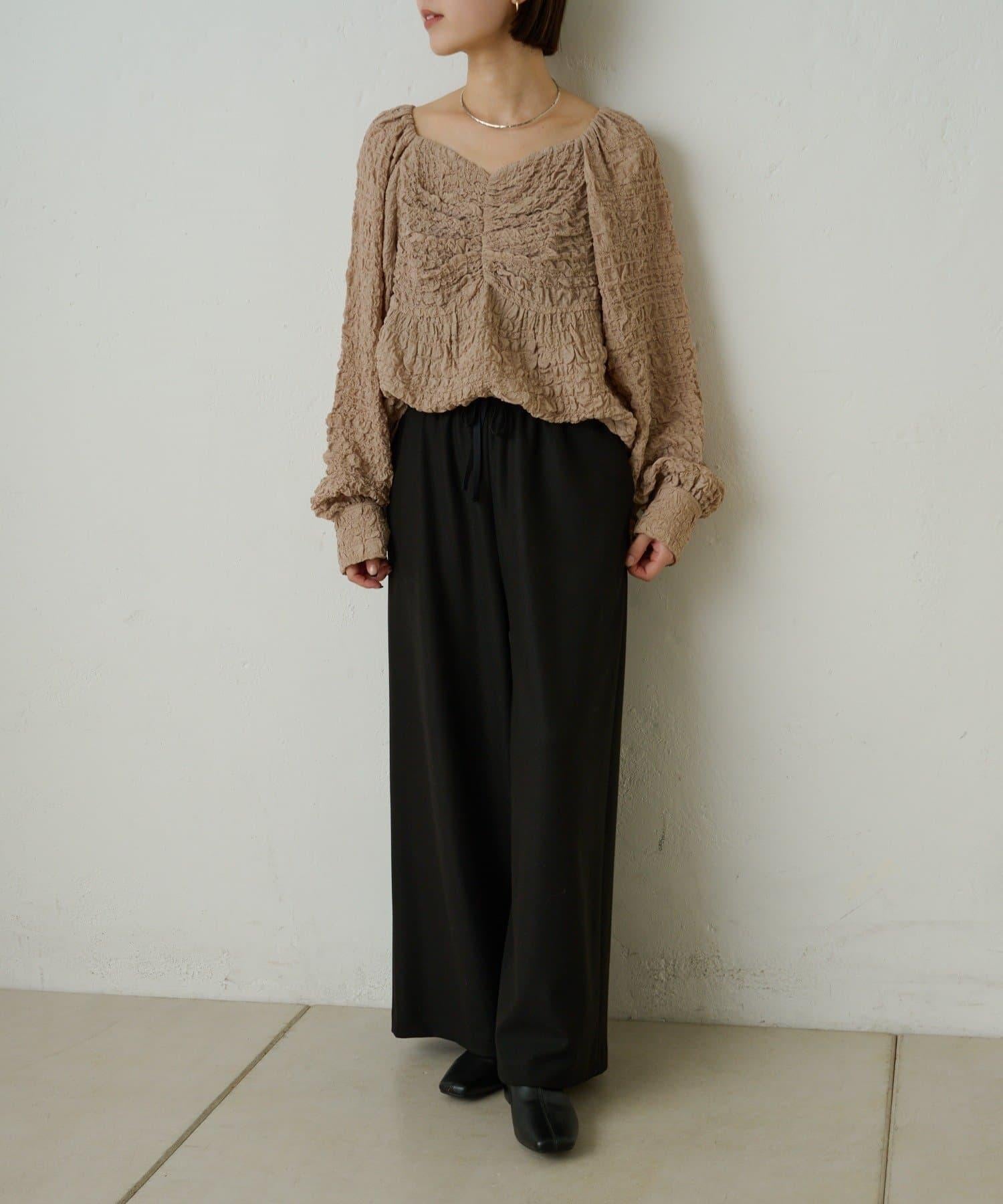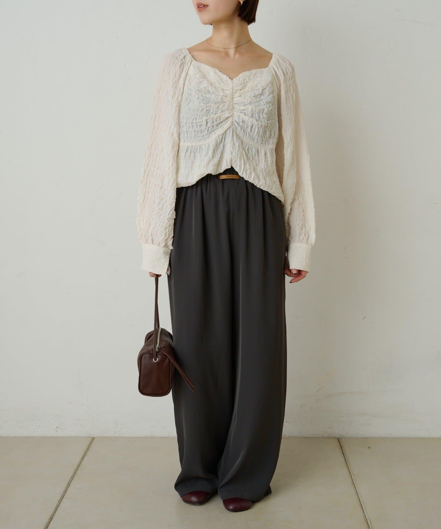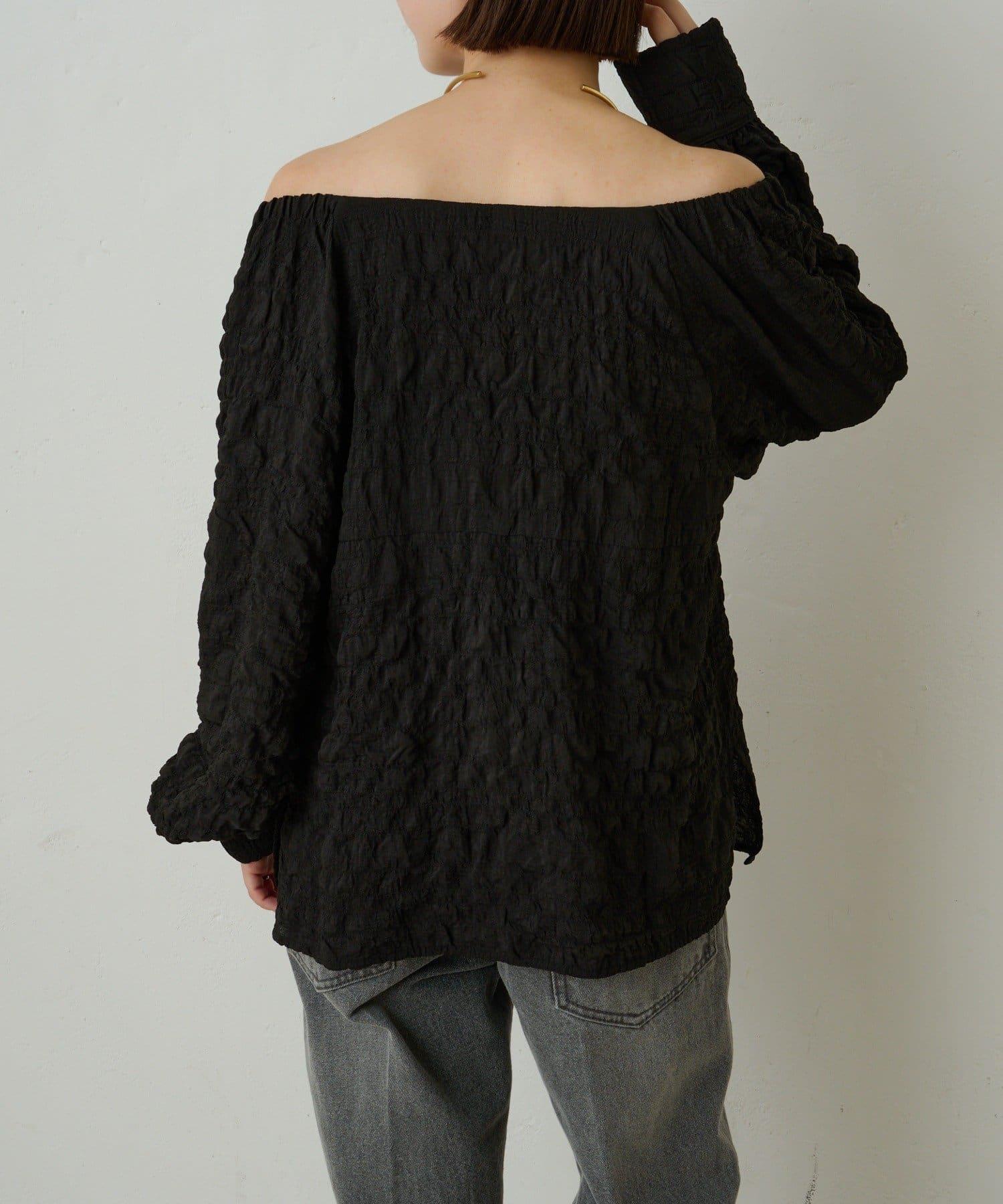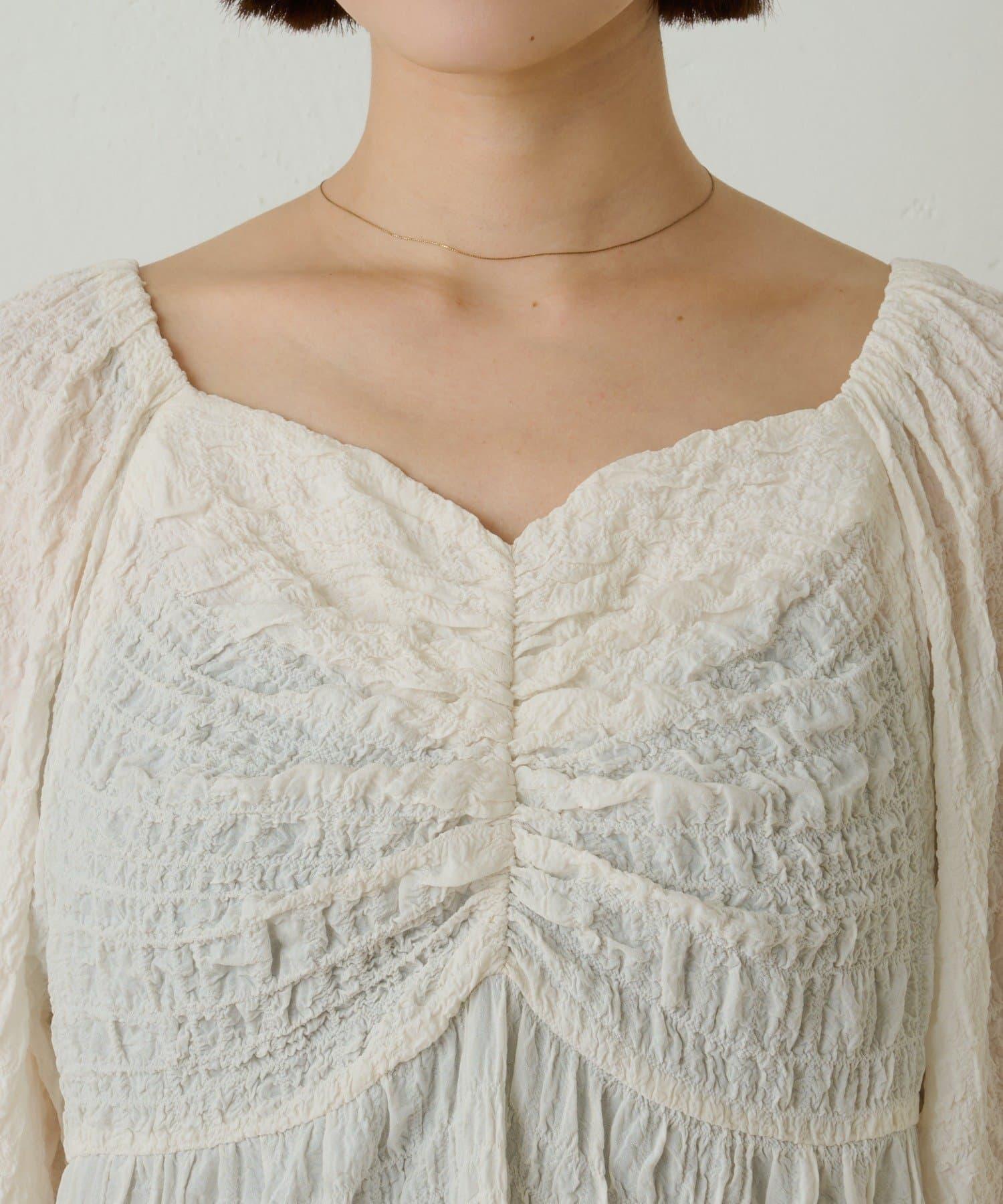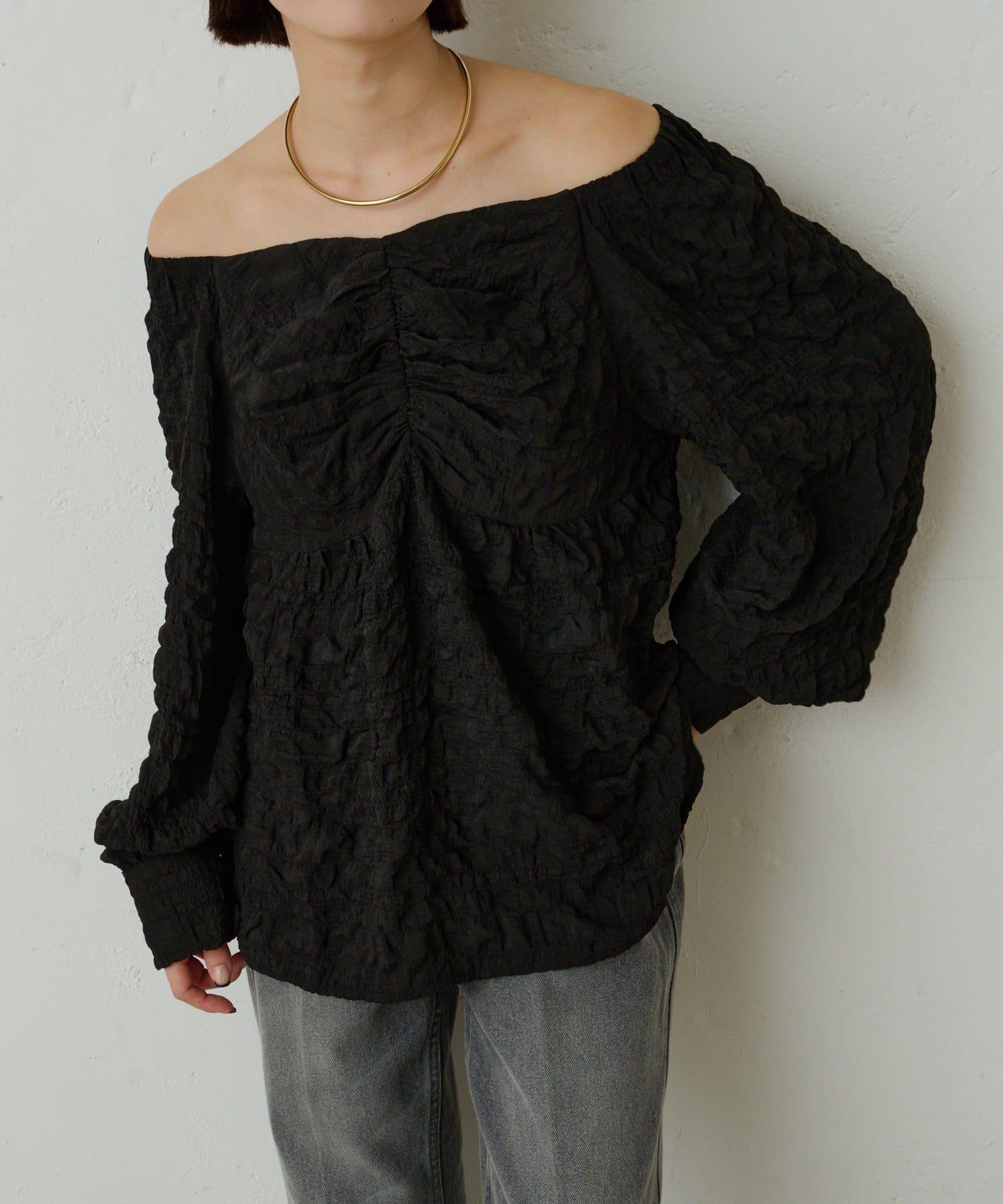 這款心形領上衣胸前的設計和凹凸不平的面料是這款上衣的亮點。