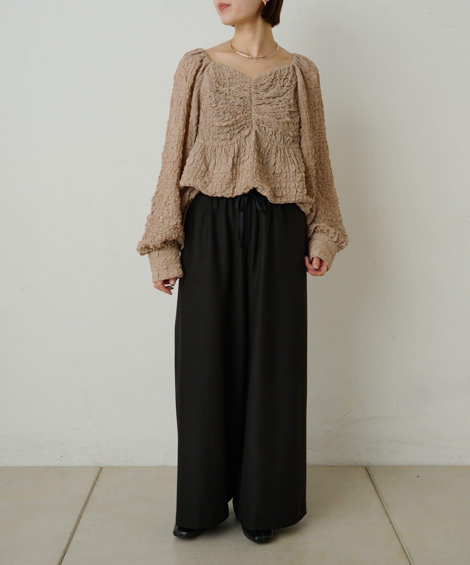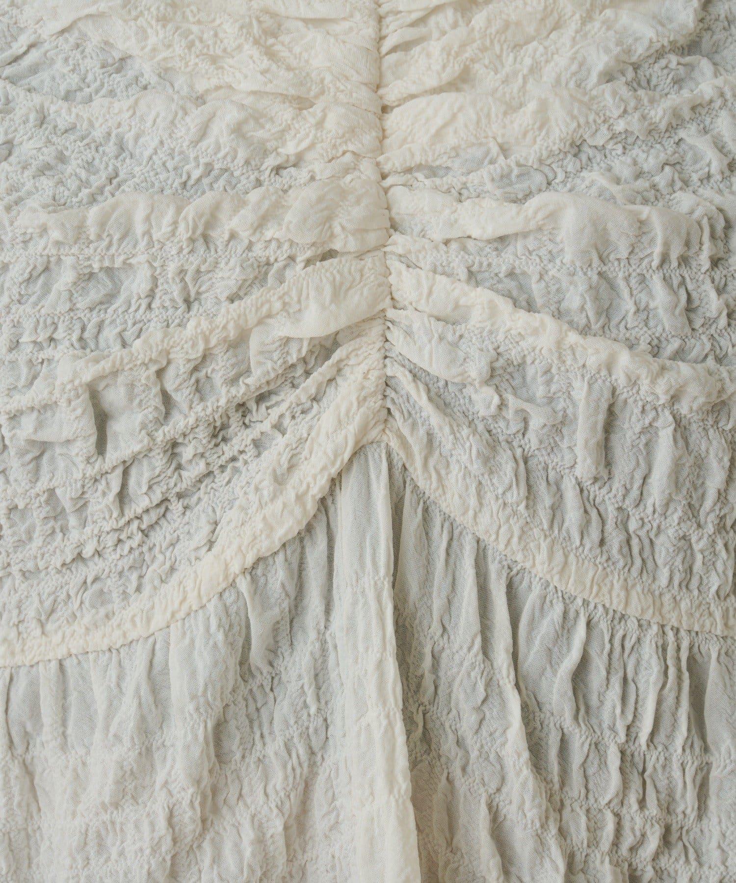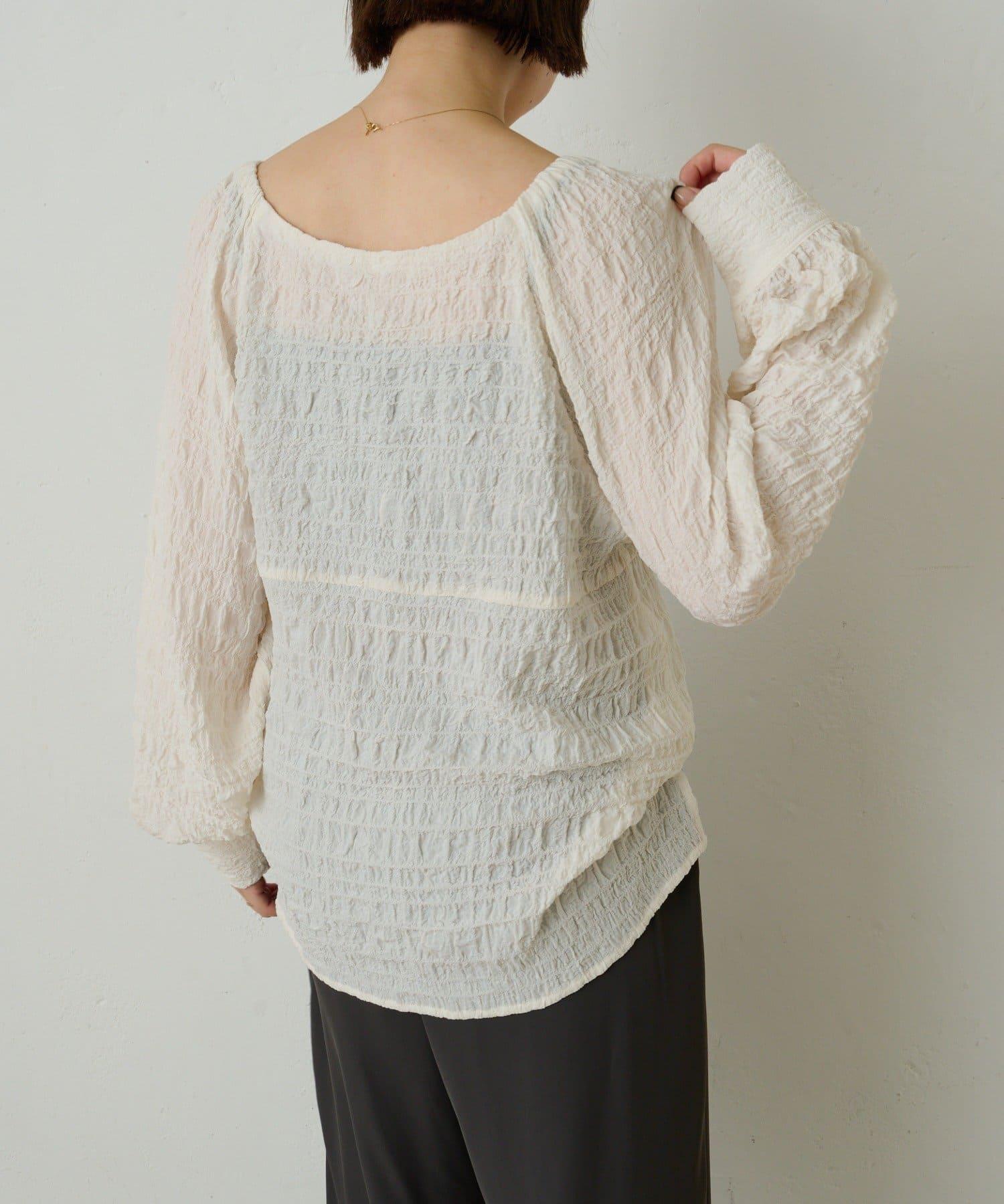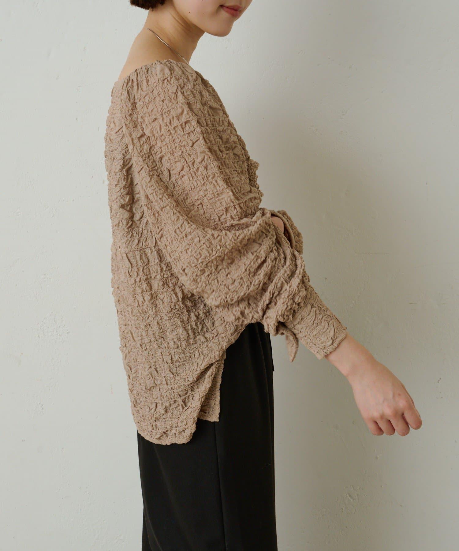 這款心形領上衣胸前的設計和凹凸不平的面料是這款上衣的亮點。