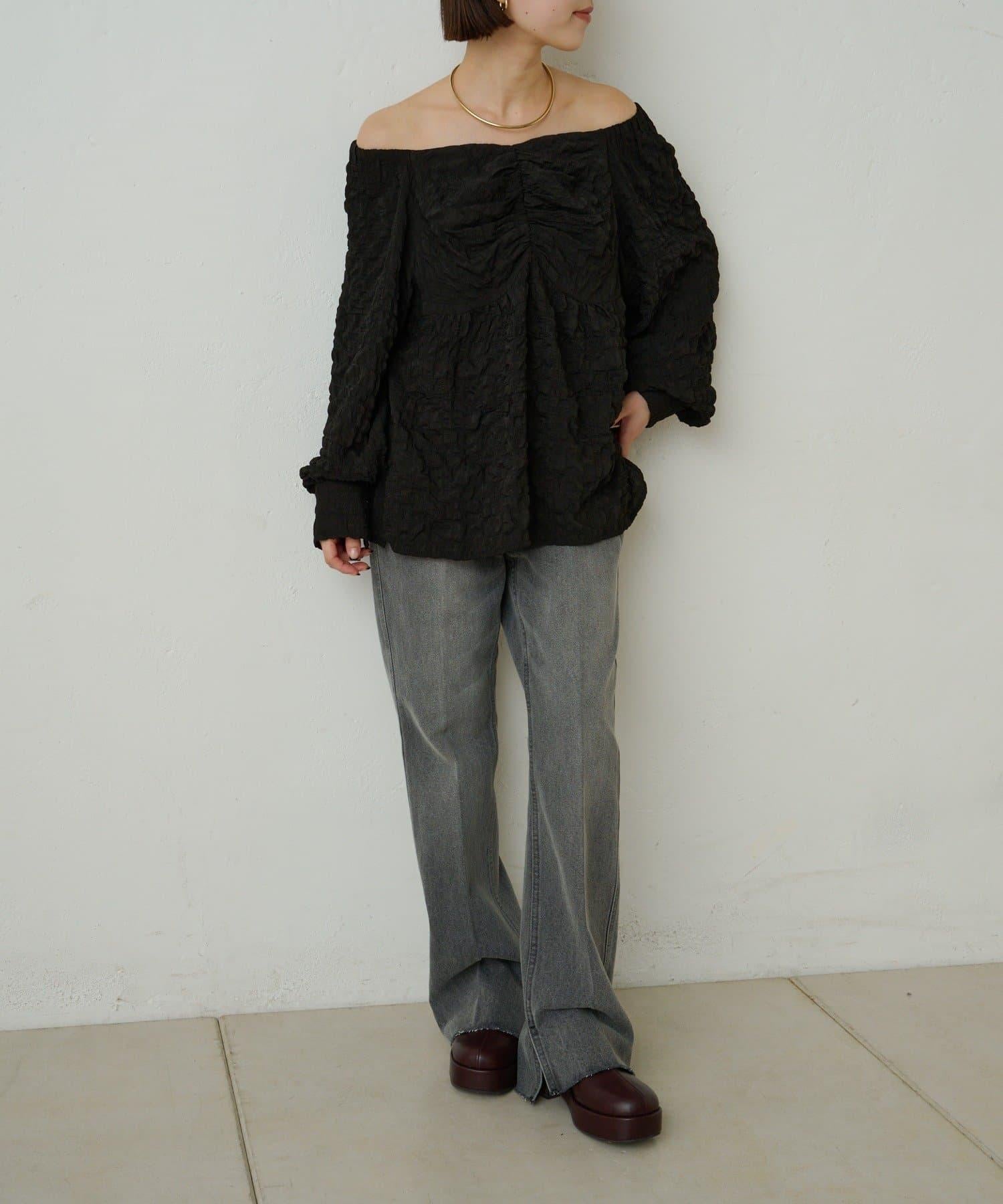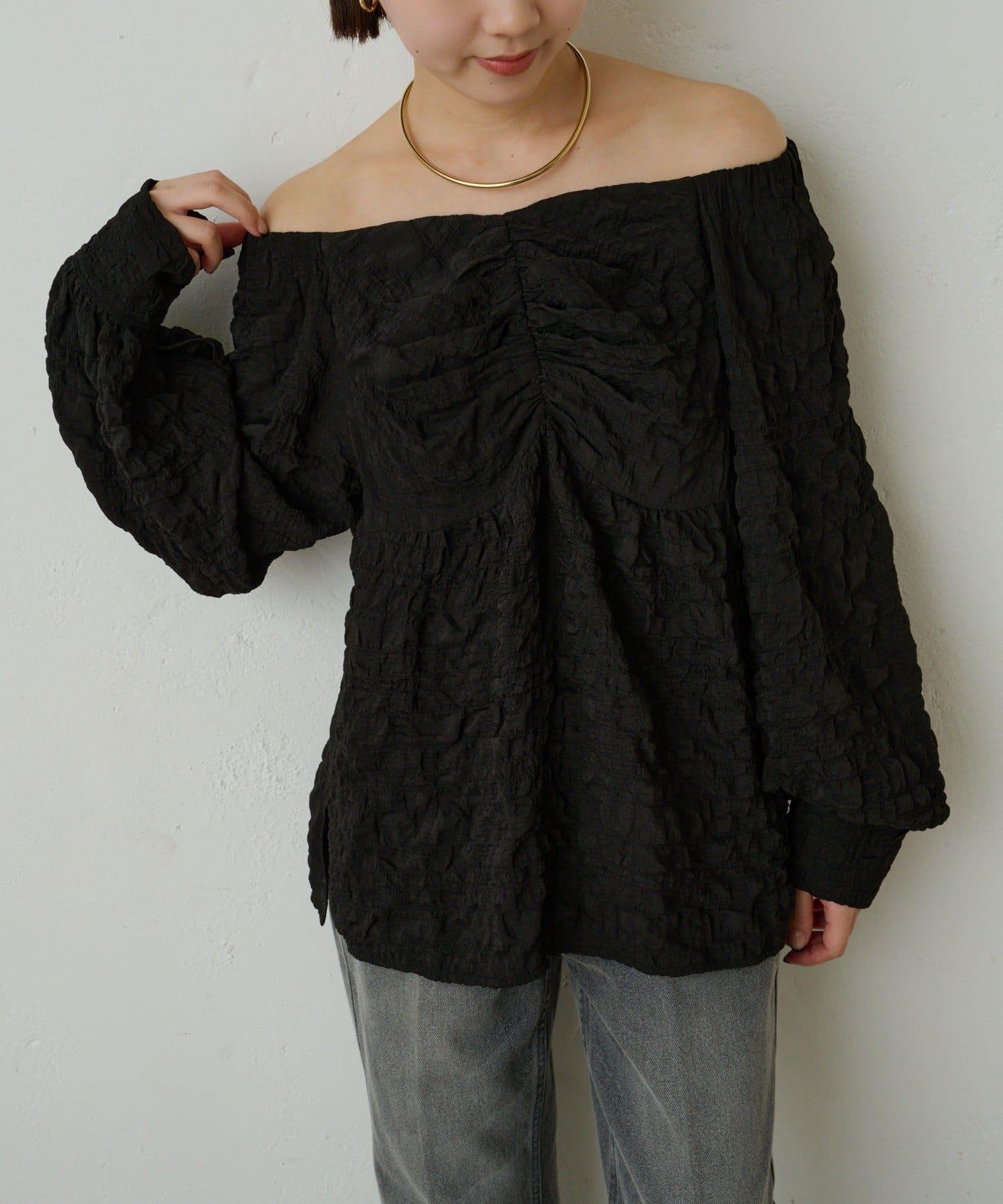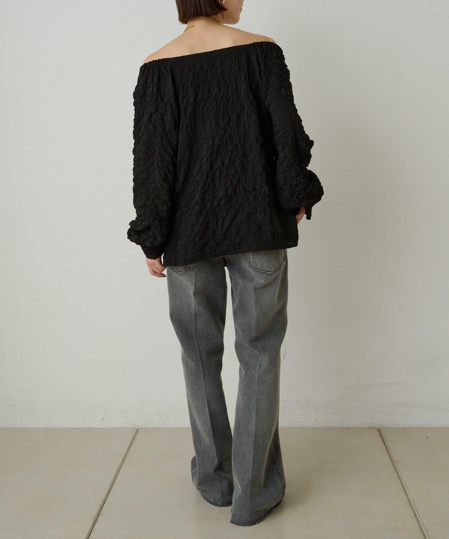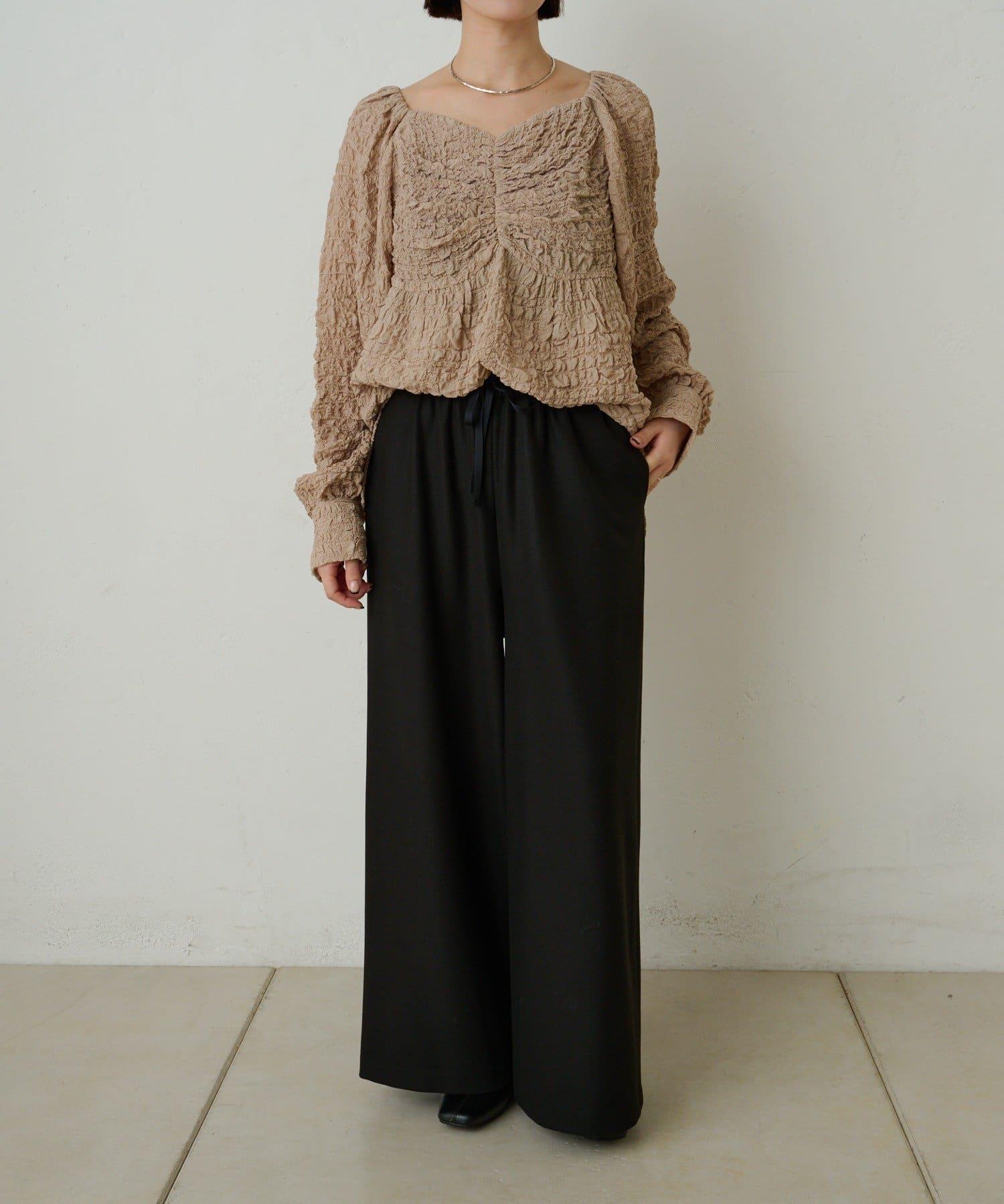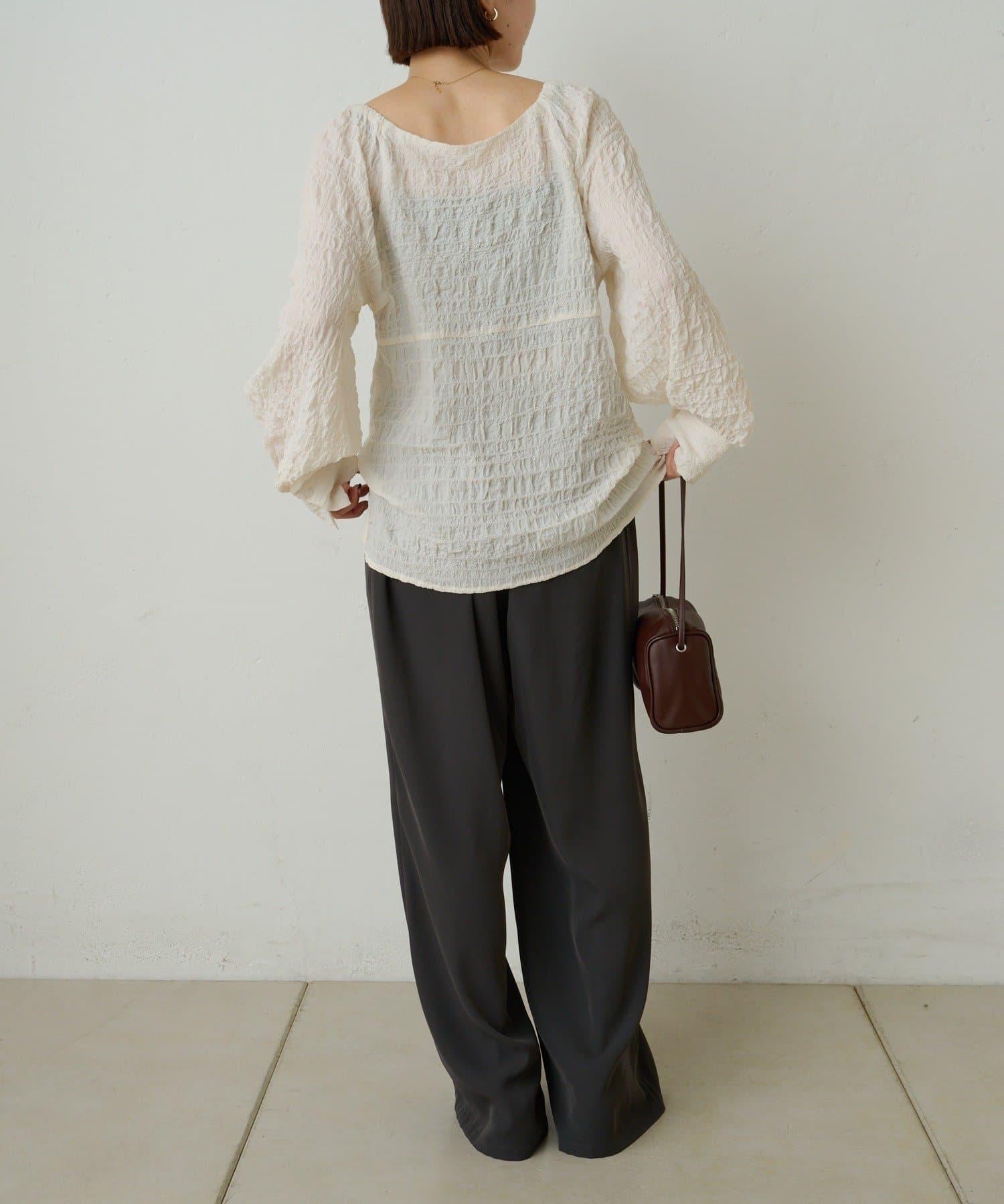 這款心形領上衣胸前的設計和凹凸不平的面料是這款上衣的亮點。