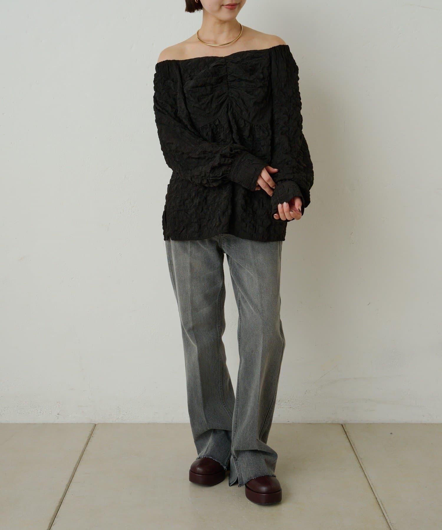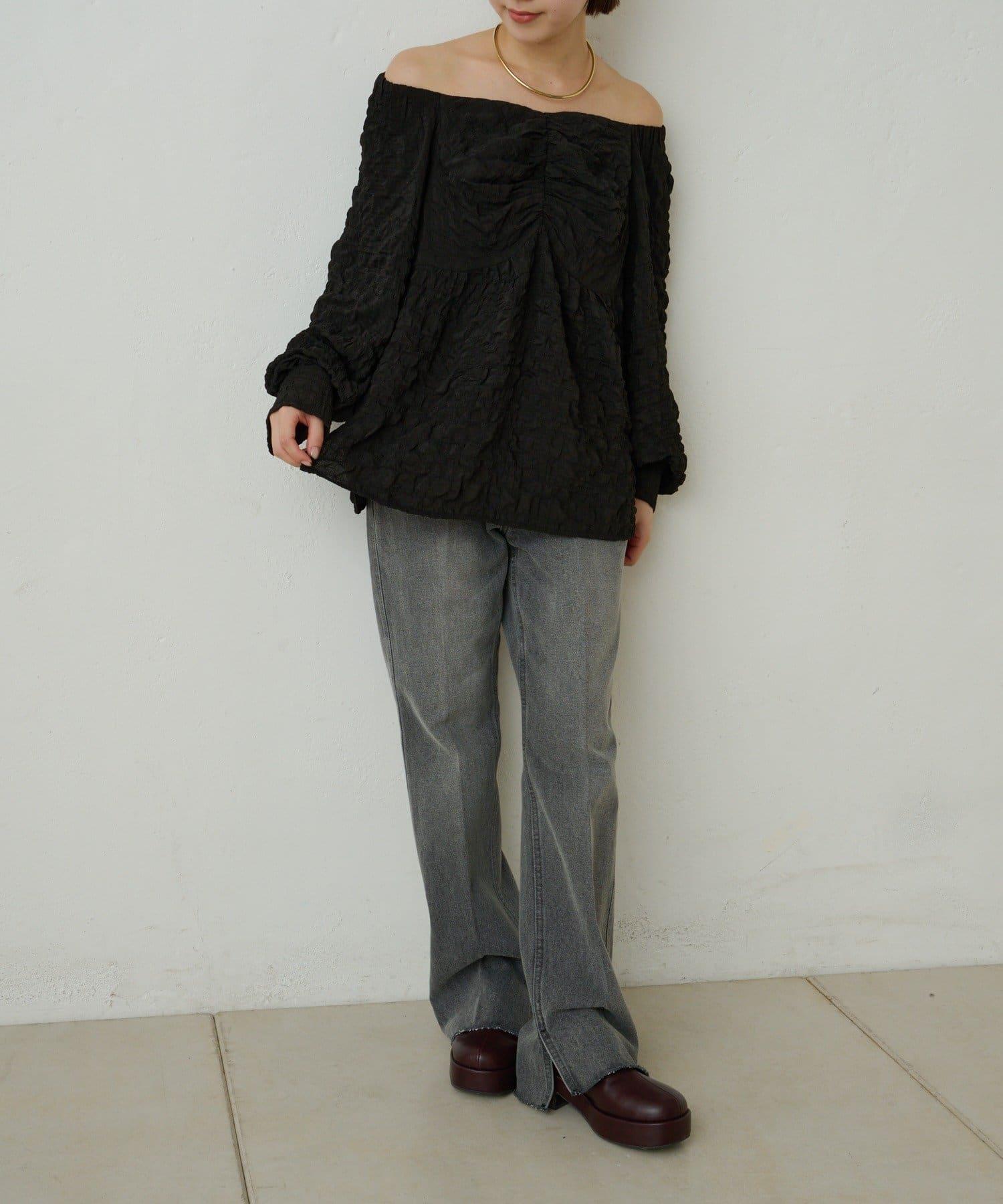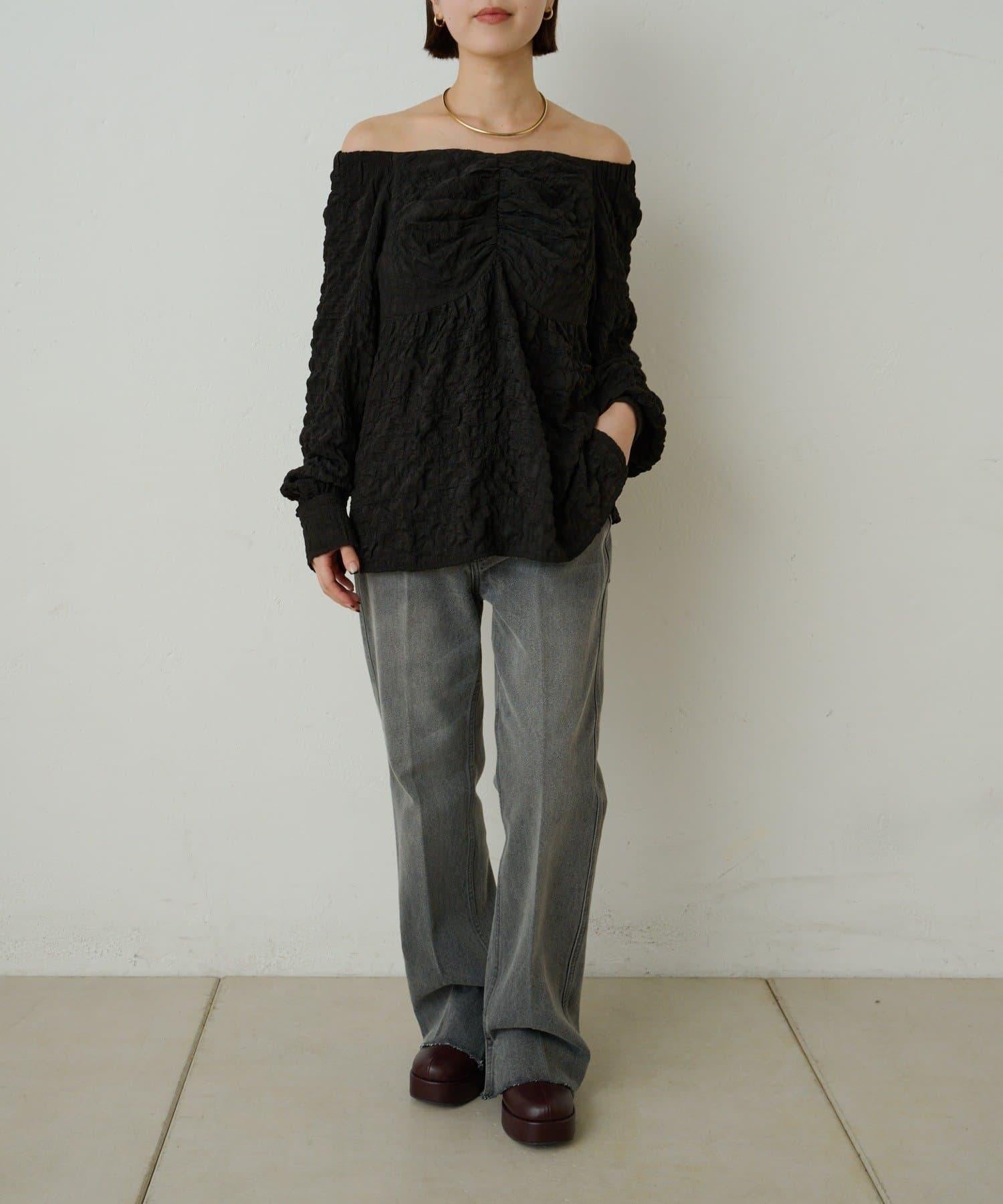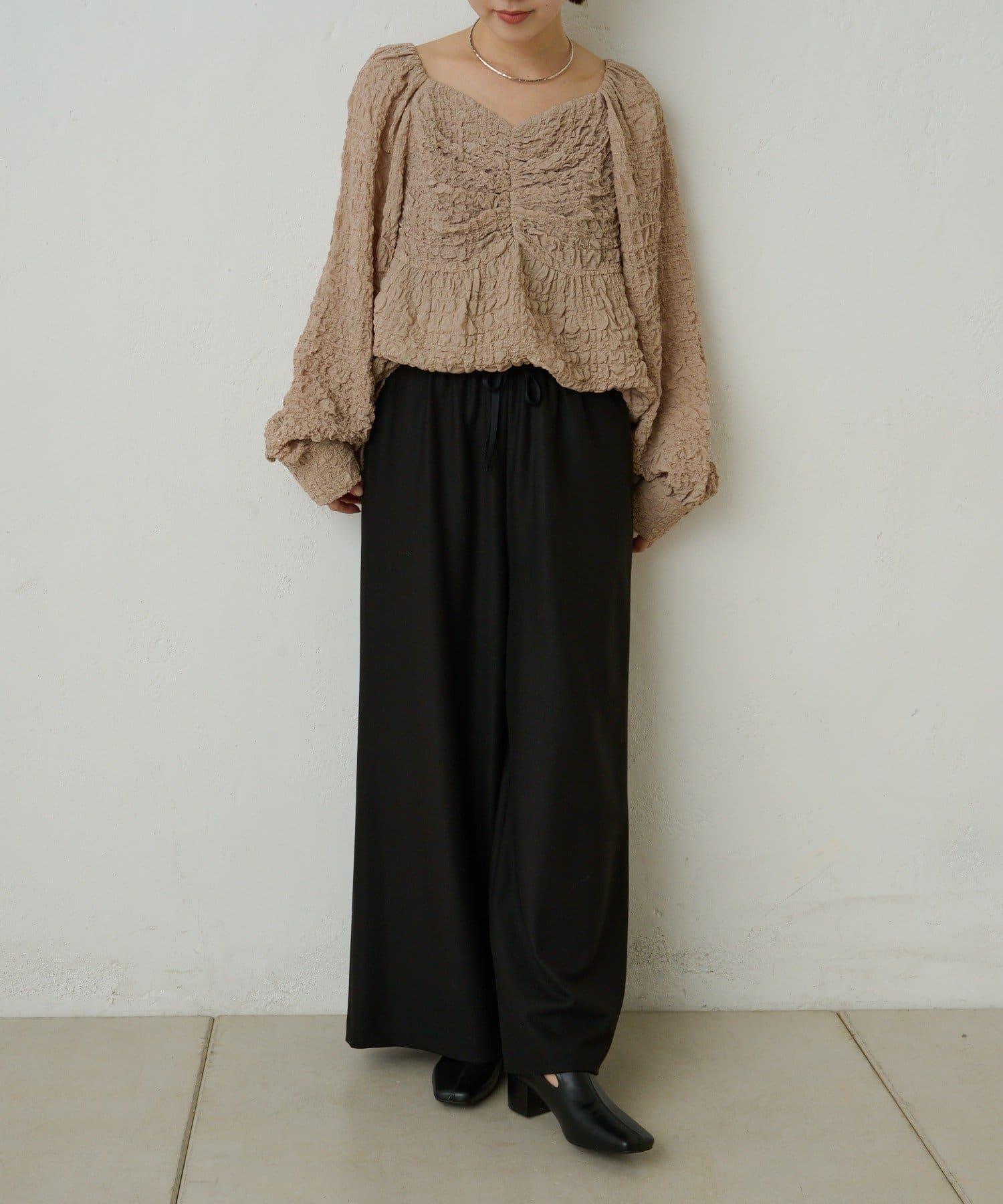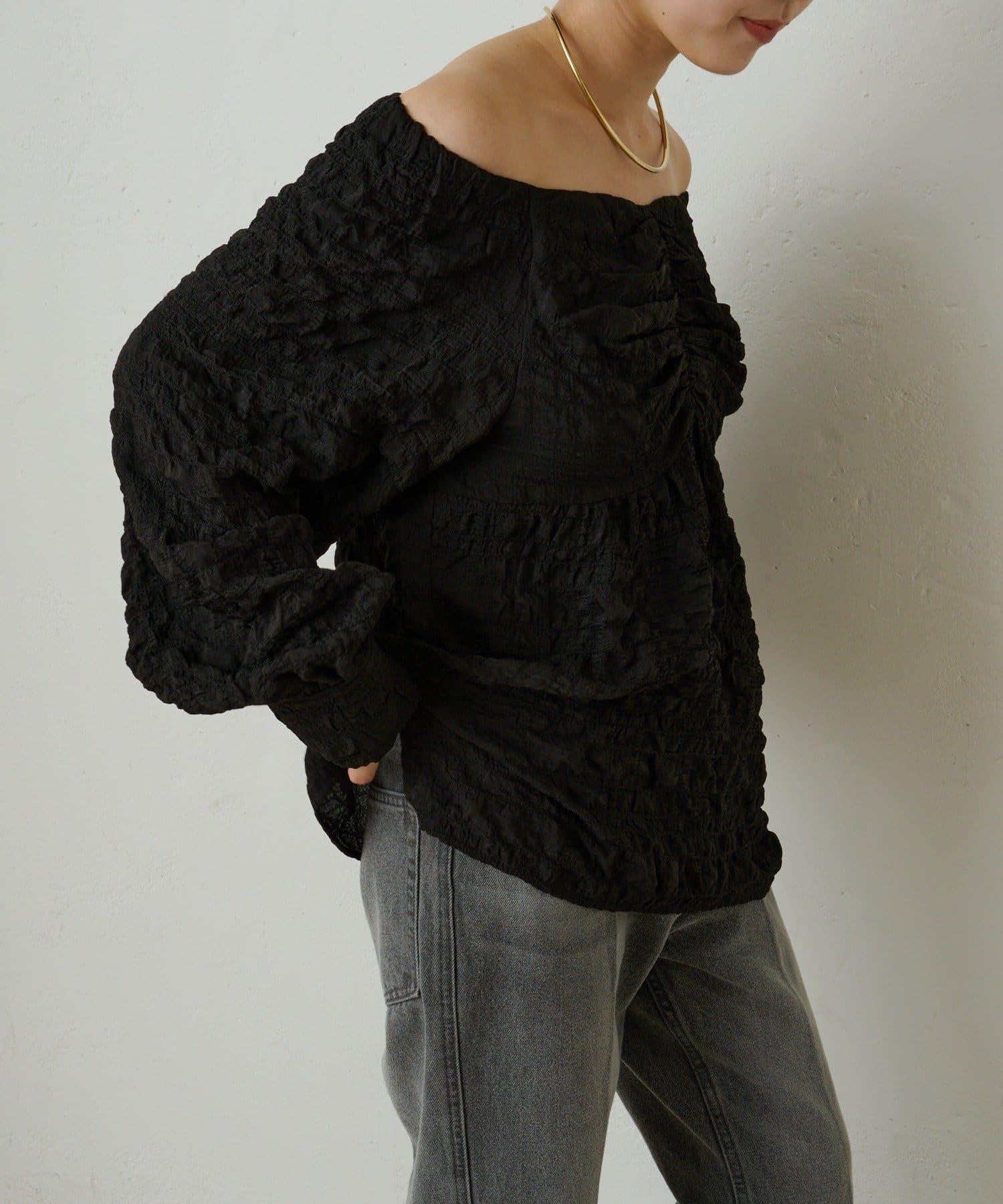 這款心形領上衣胸前的設計和凹凸不平的面料是這款上衣的亮點。