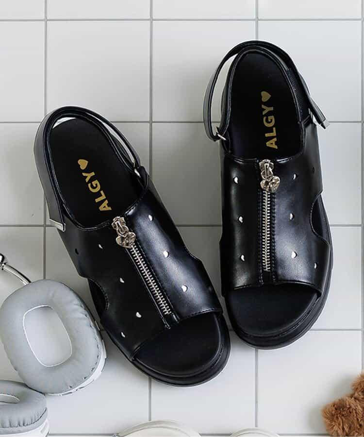 心形飾物拉鍊涼鞋