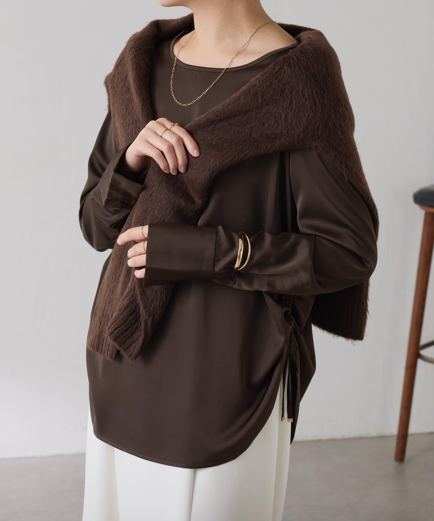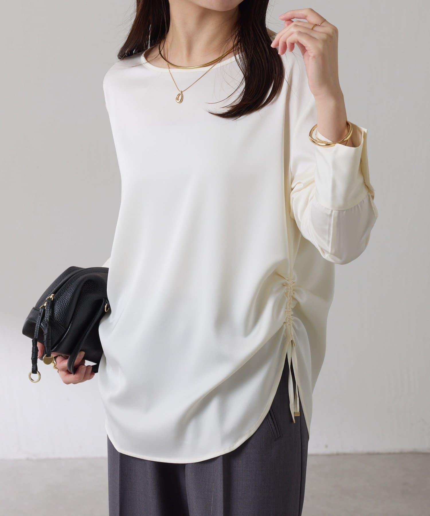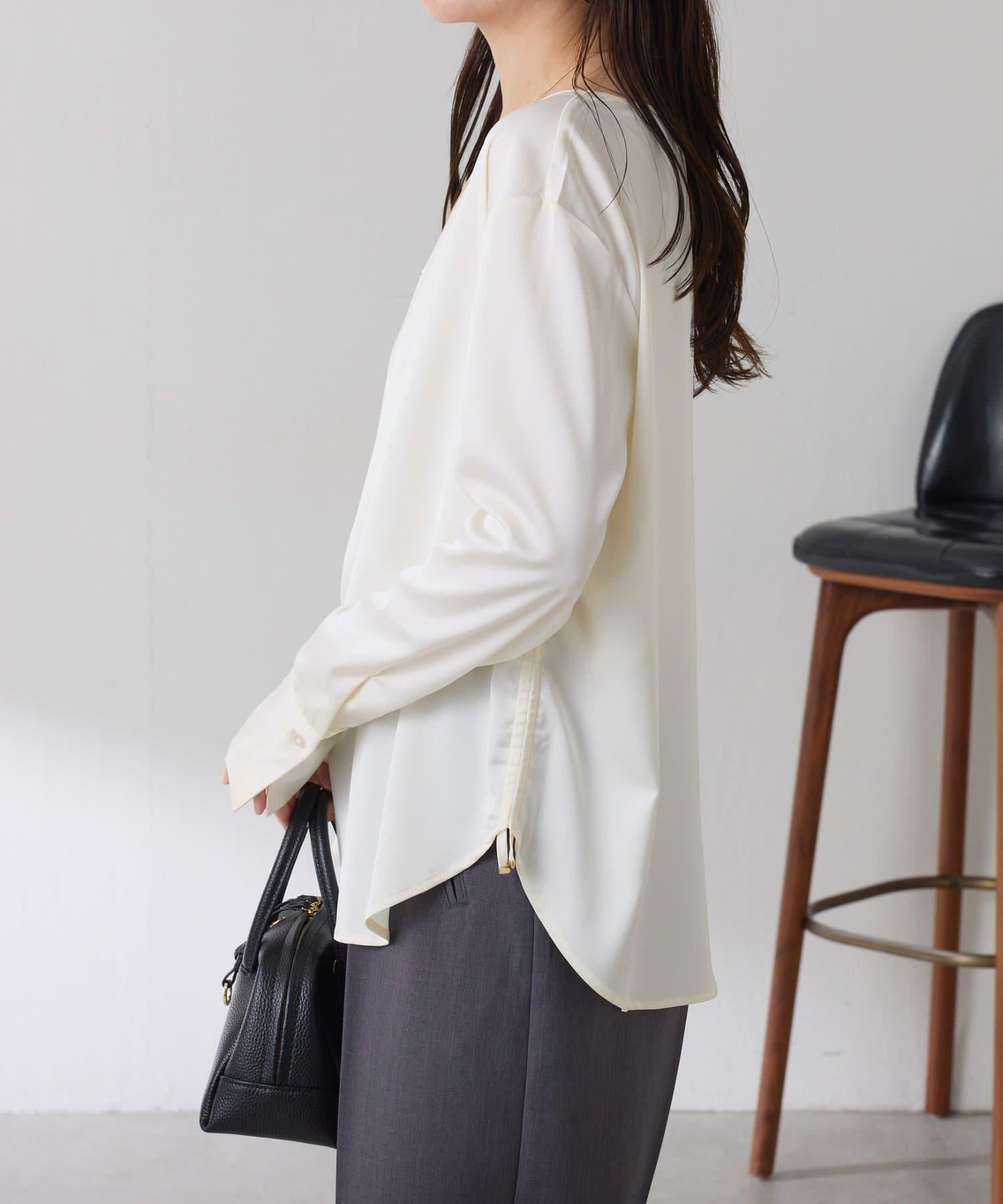 【必買襯衫】緞面側抽繩T恤襯衫/禮服
