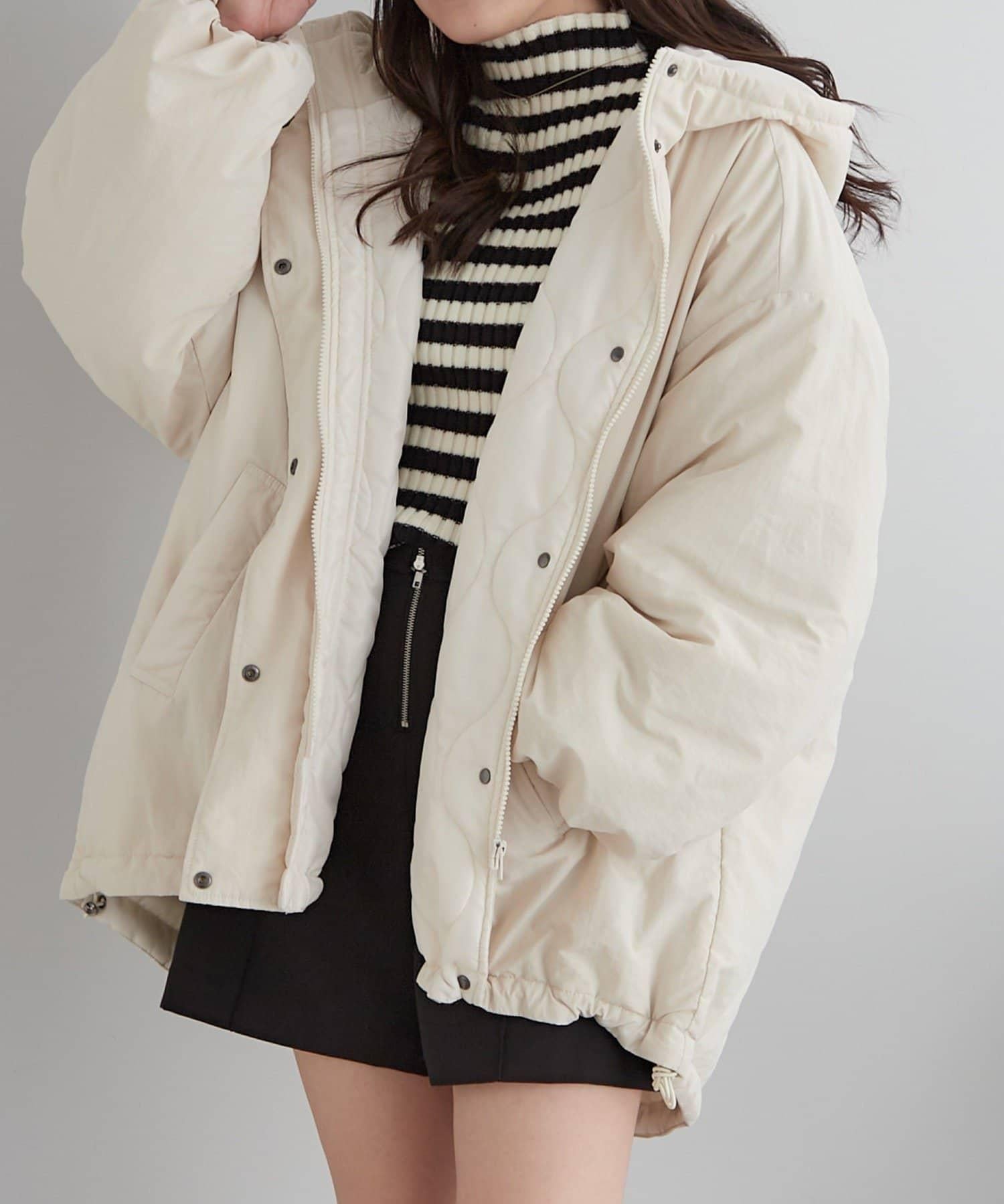 拉鍊和紐扣可以拉上,遮住脖子,無需圍巾。