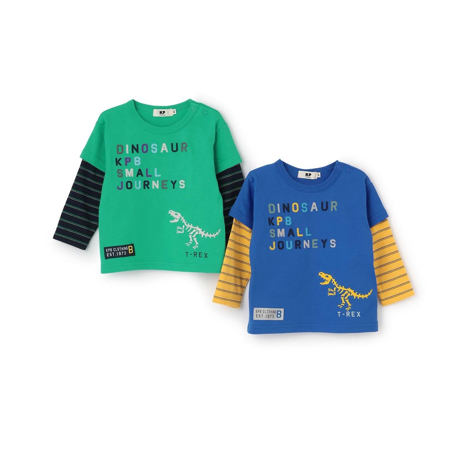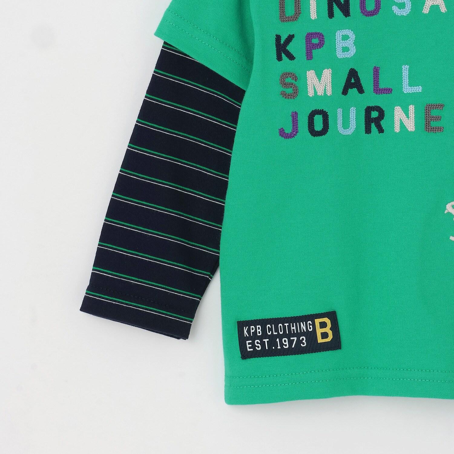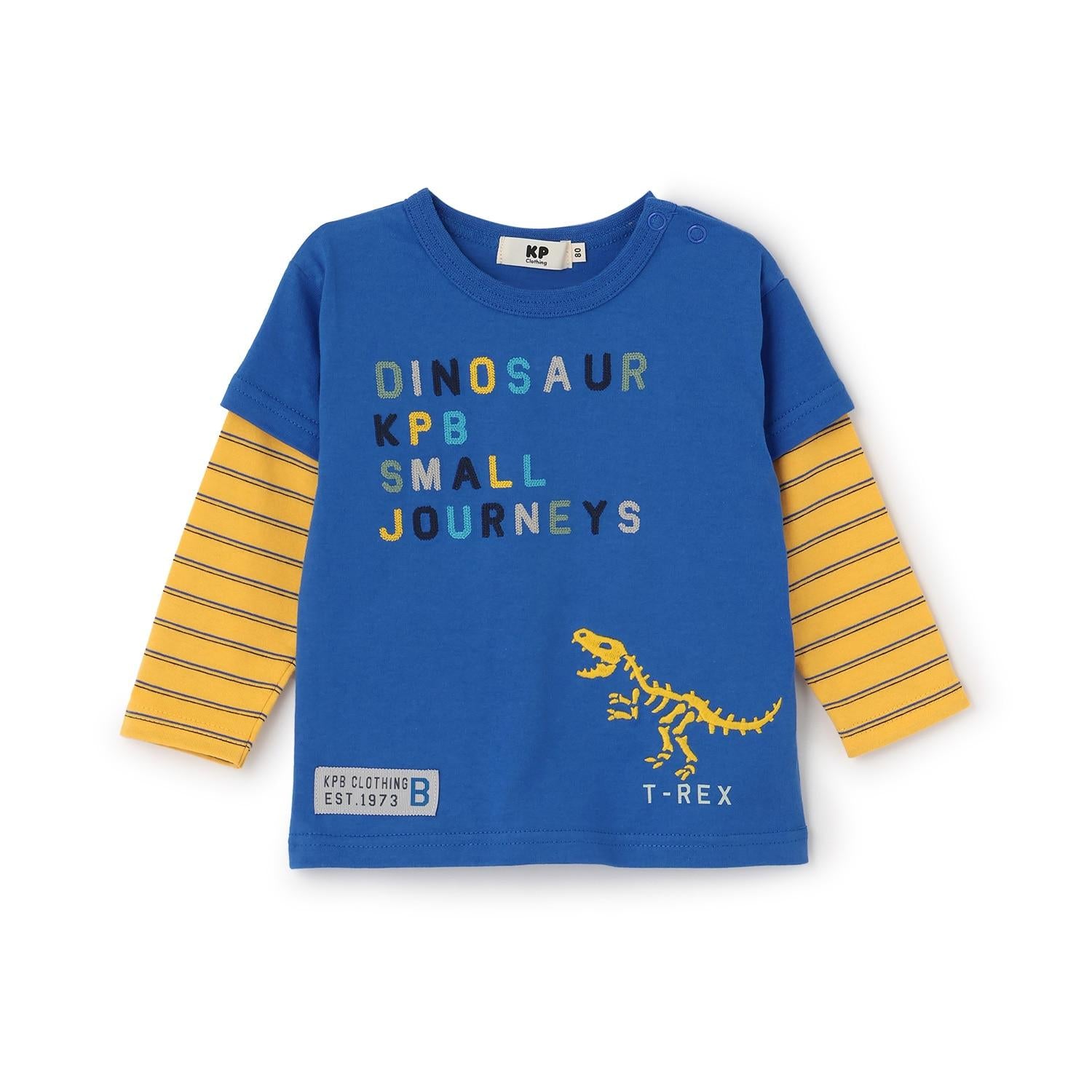 恐龍刺繡假兩件長袖T恤