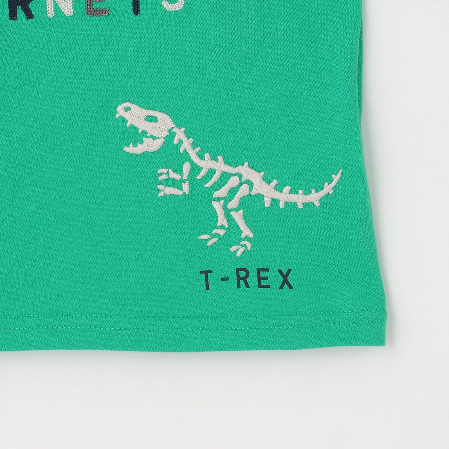 下襬處的骷髏恐龍刺繡增添了歡快和趣味。