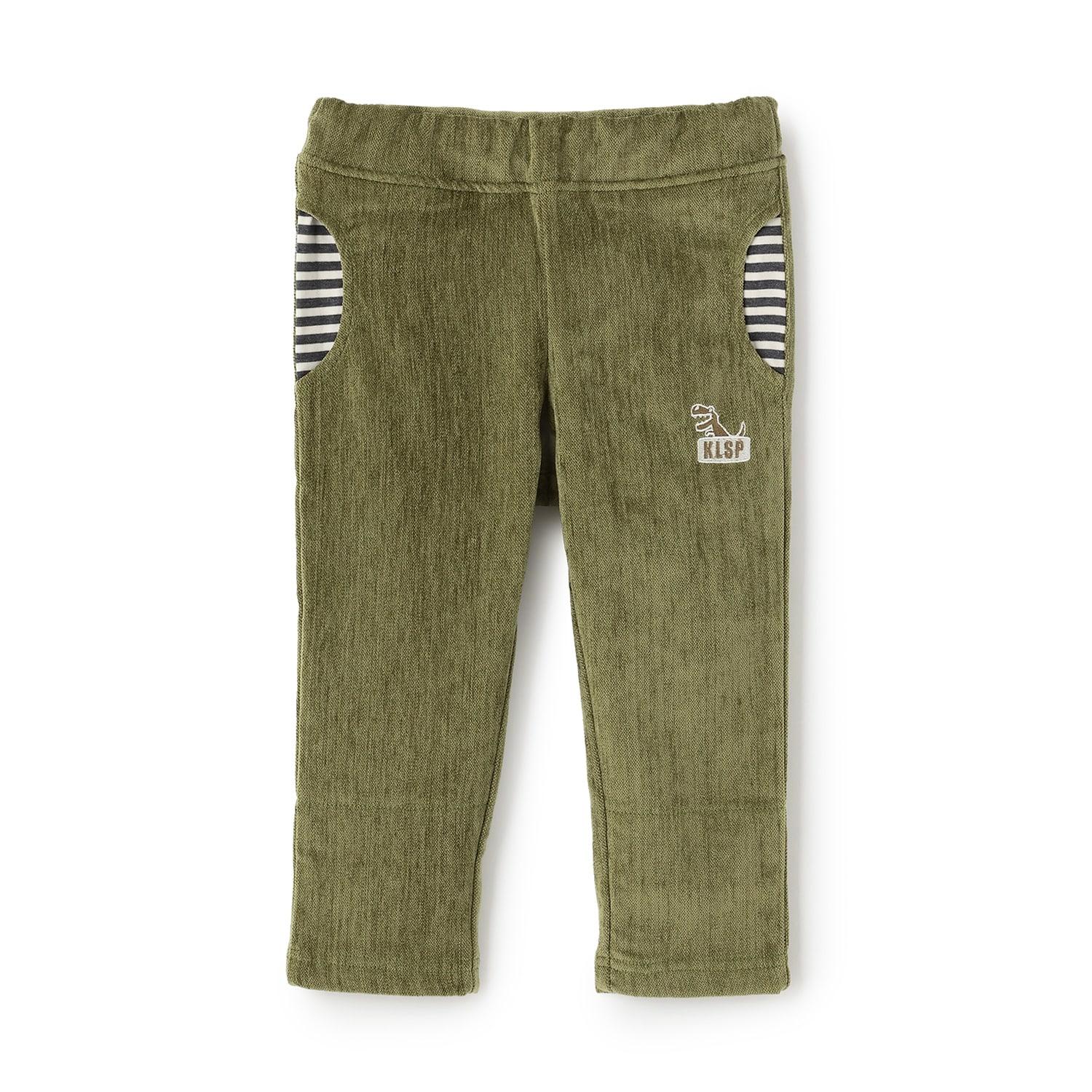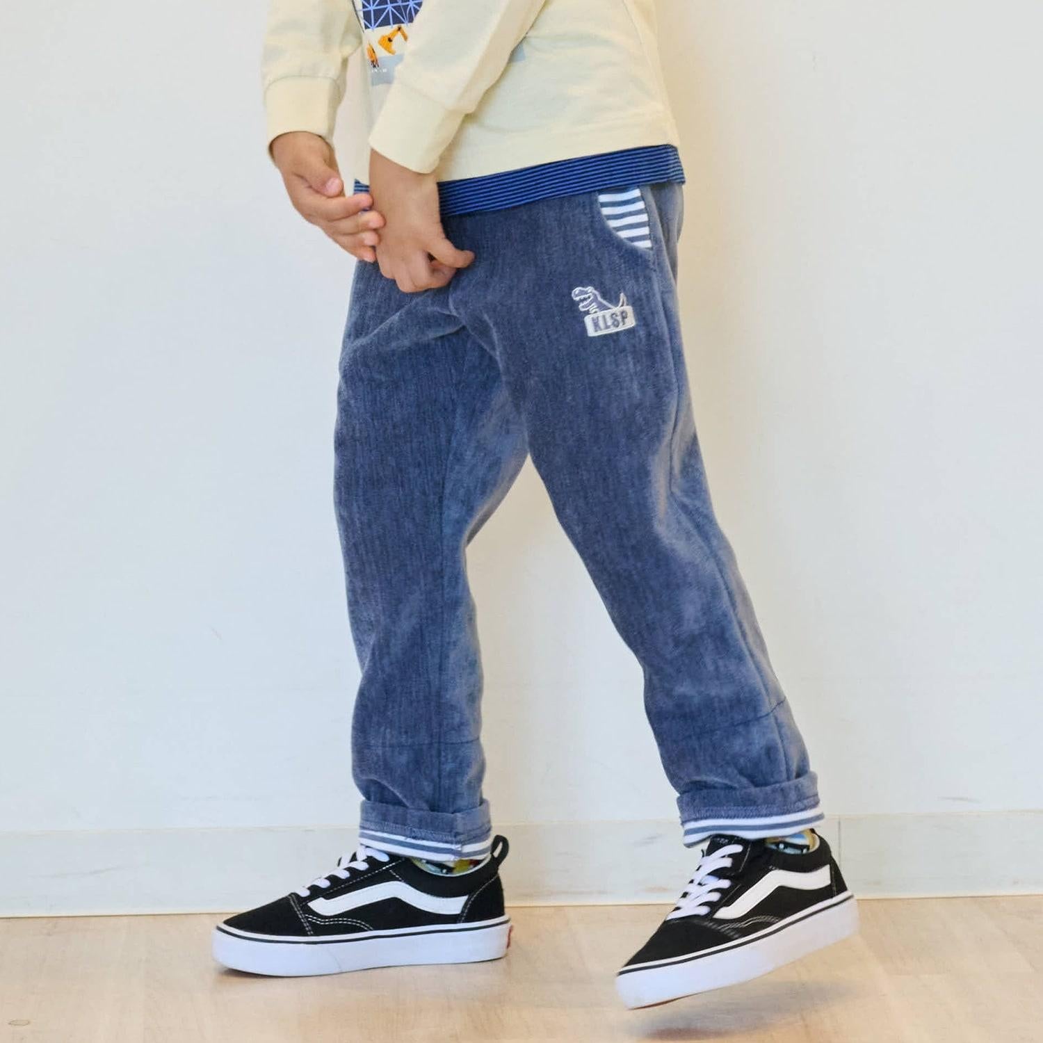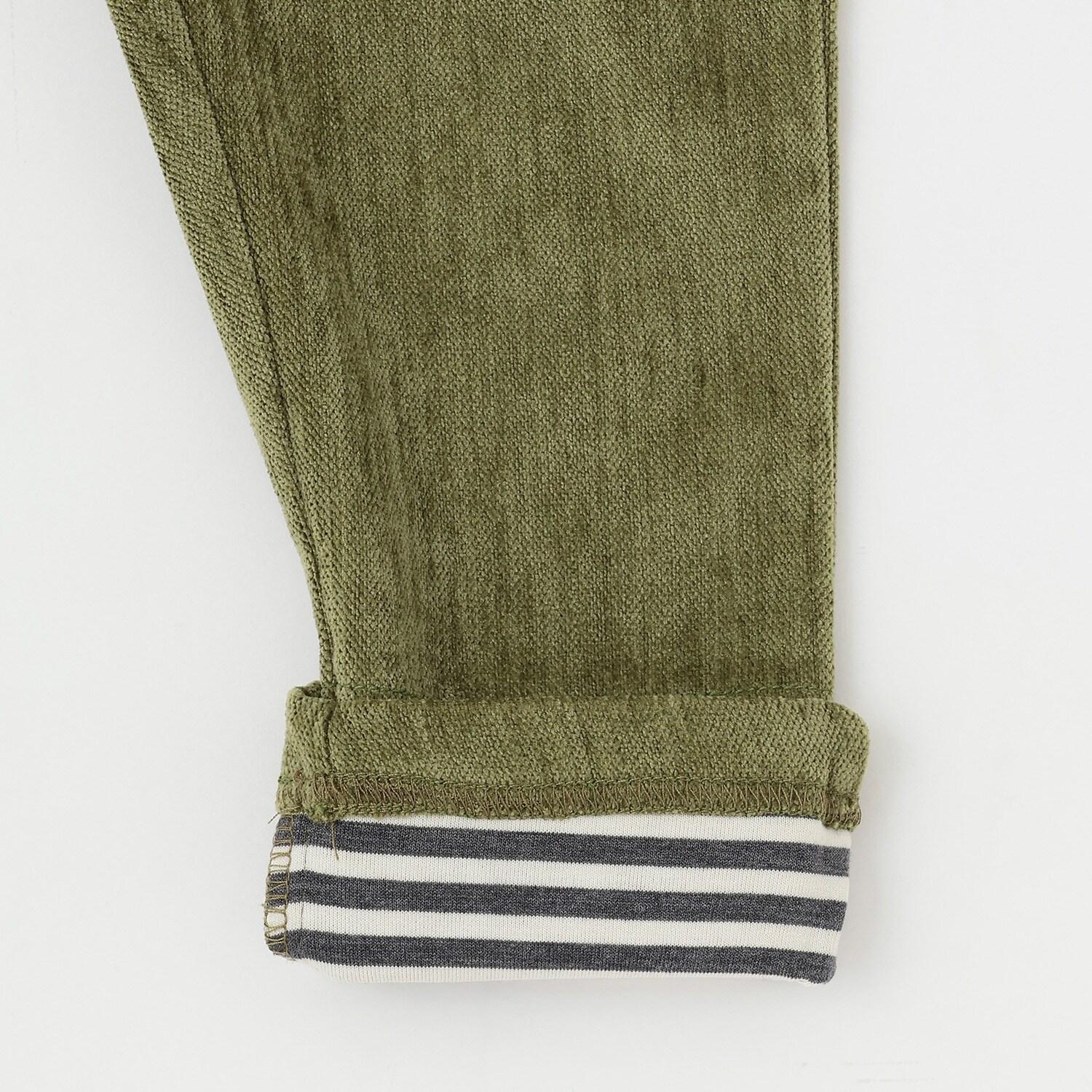 這款錐形長褲以局部邊框圖案變化作為點綴。