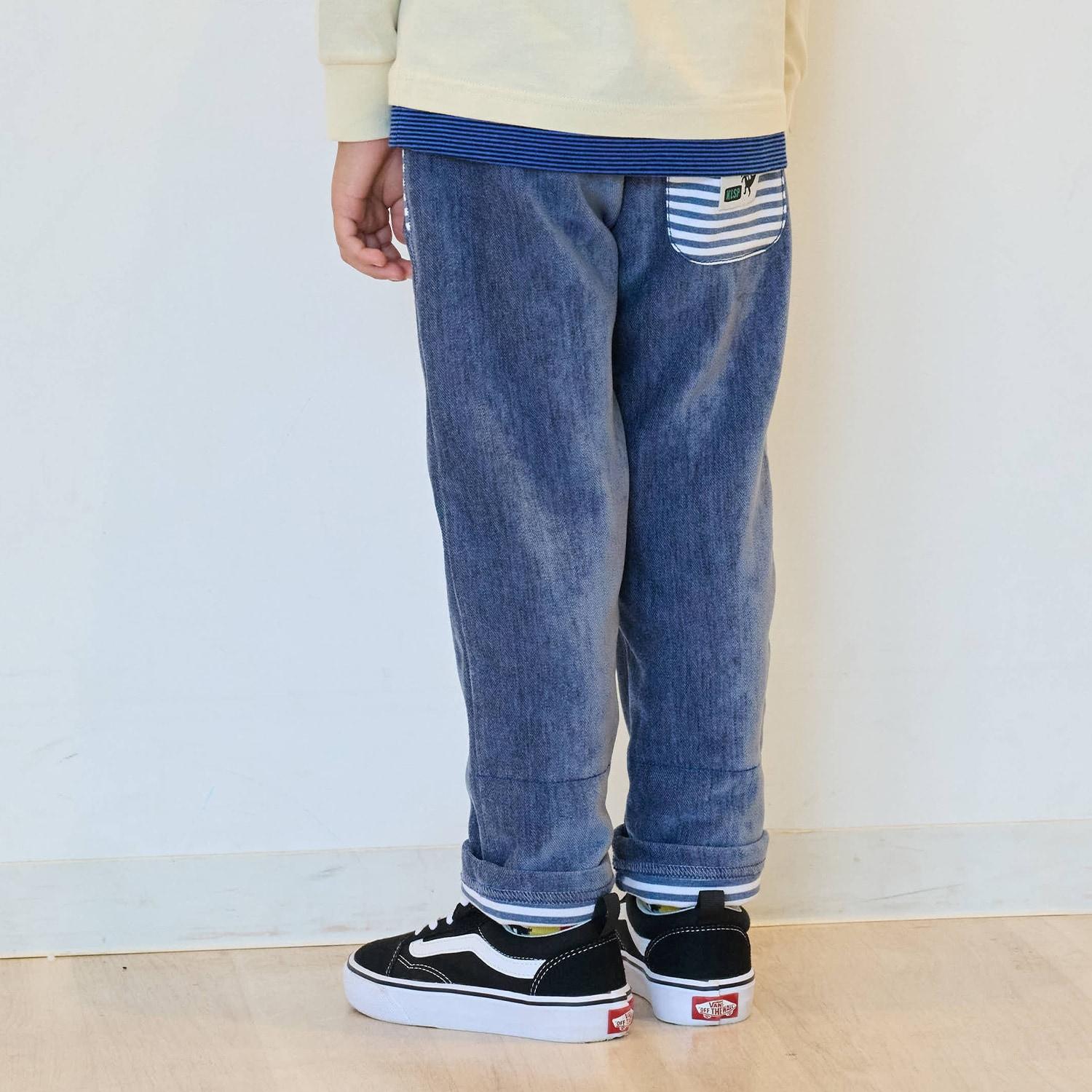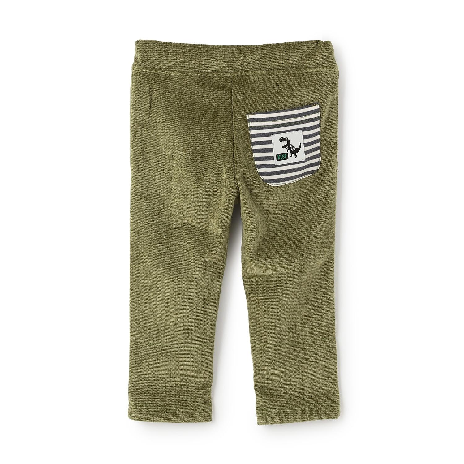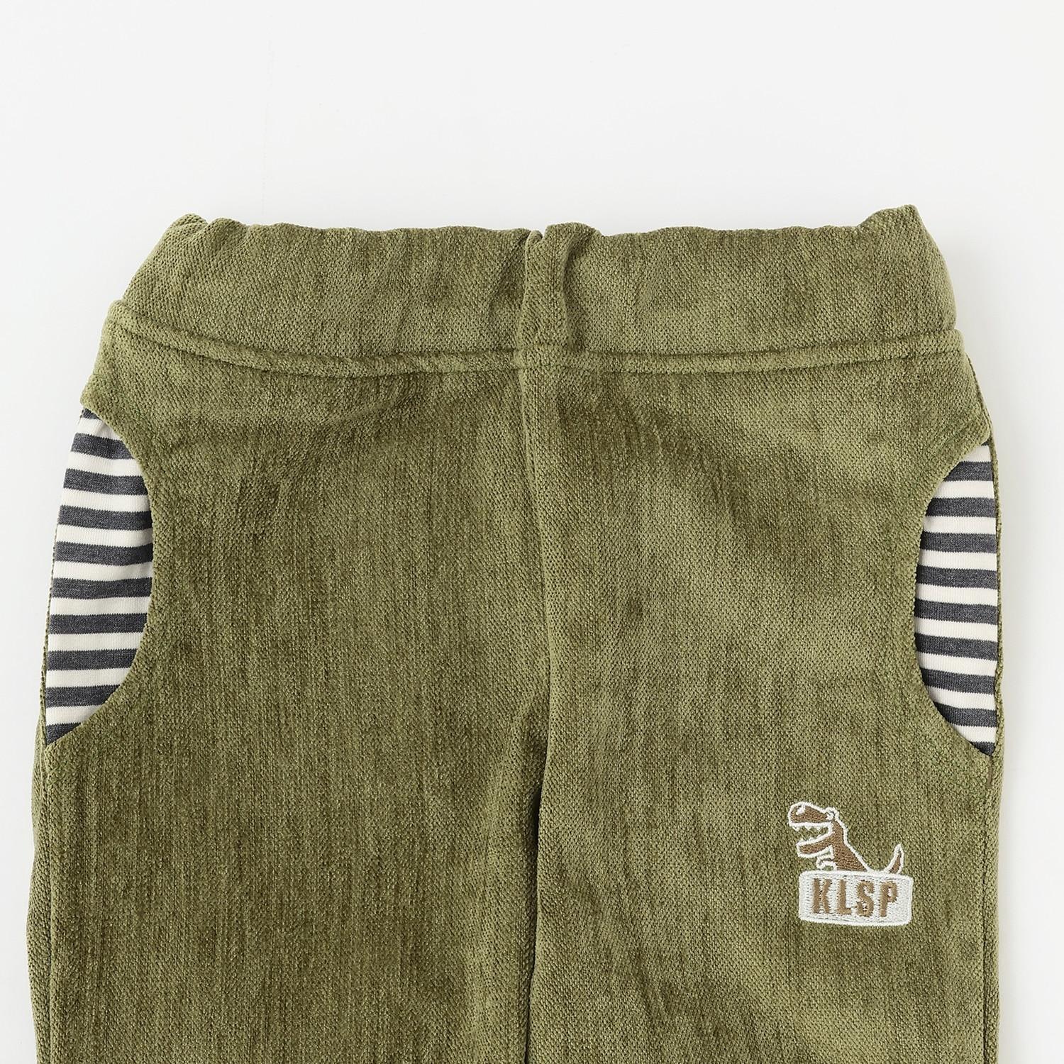 這款錐形長褲以局部邊框圖案變化作為點綴。