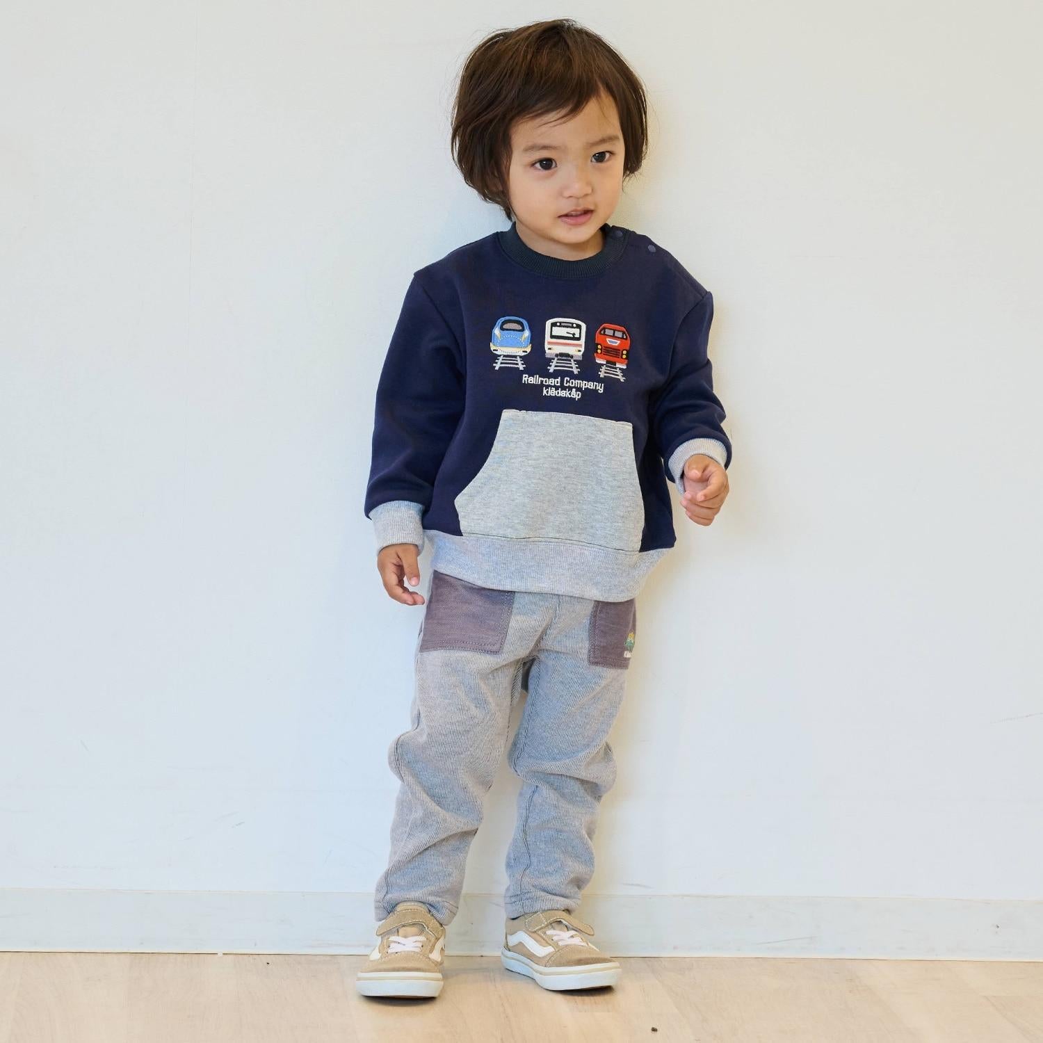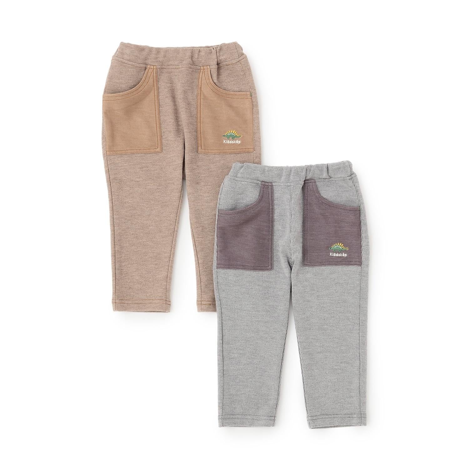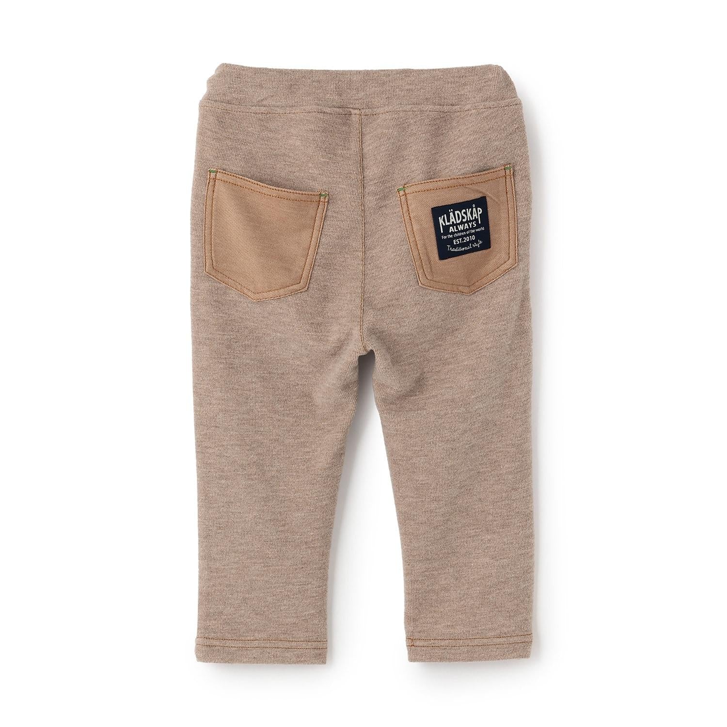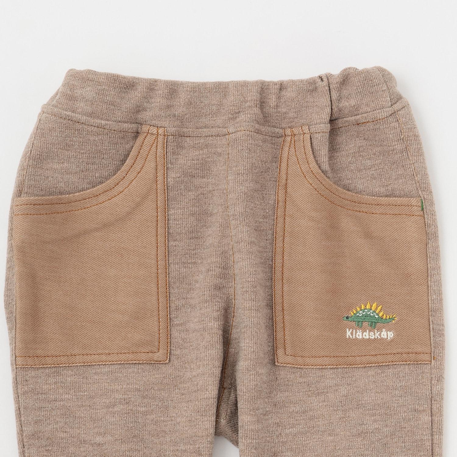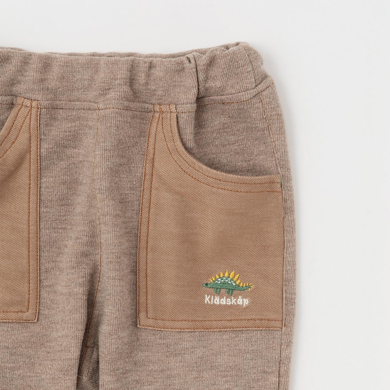時尚的錐形長褲,採用不同材質的口袋設計。