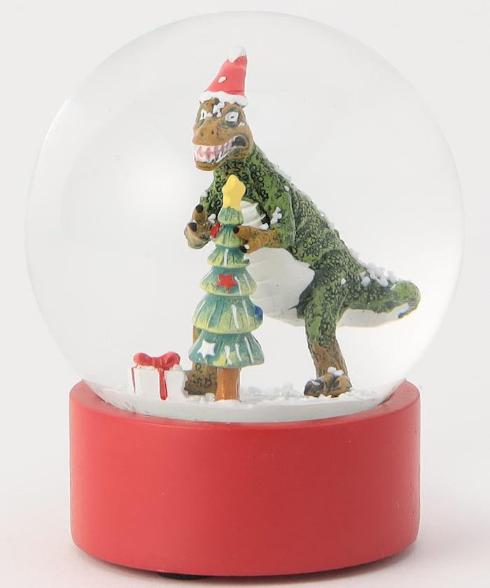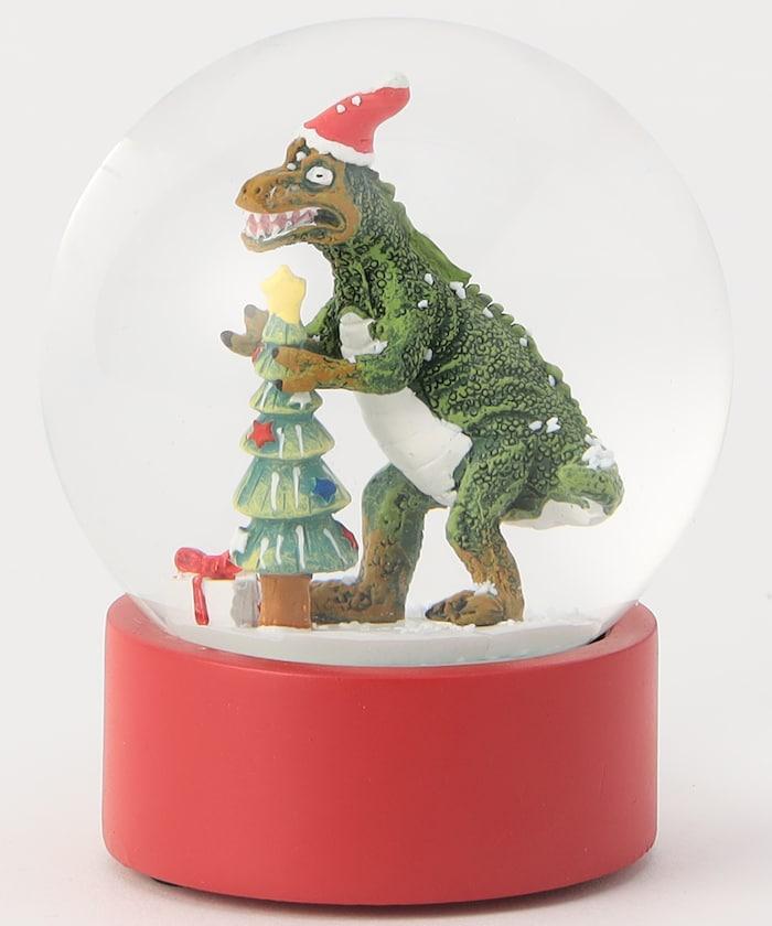 可愛俏皮的節日雪球,恐龍牽著手站在樹上