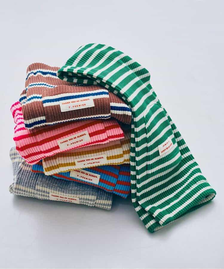 條紋] 棉質、彈力結實的羅紋面料,具有良好的伸縮性。