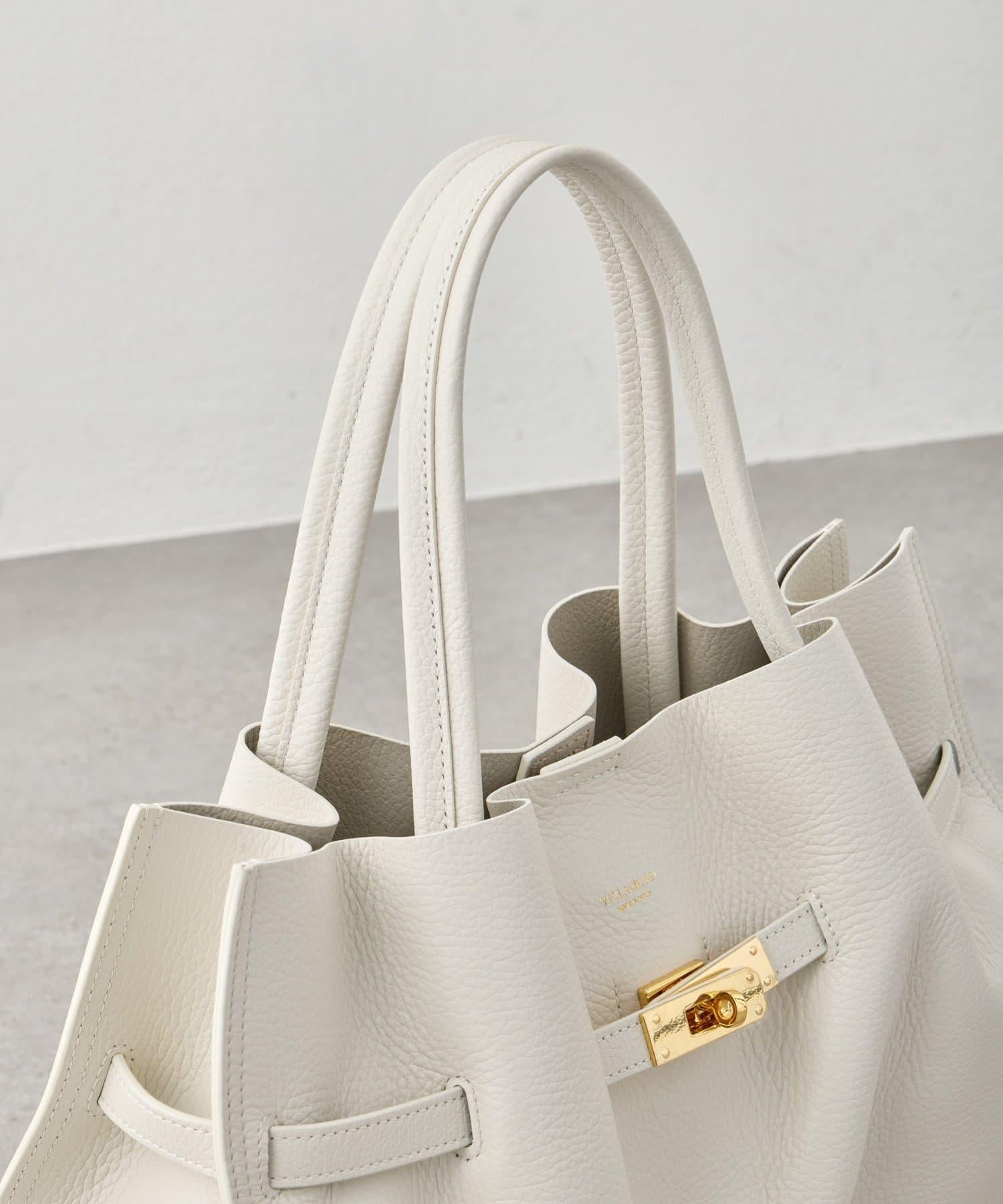 L 號手提包由意大利 W 麵皮革製成,質地柔軟輕盈。