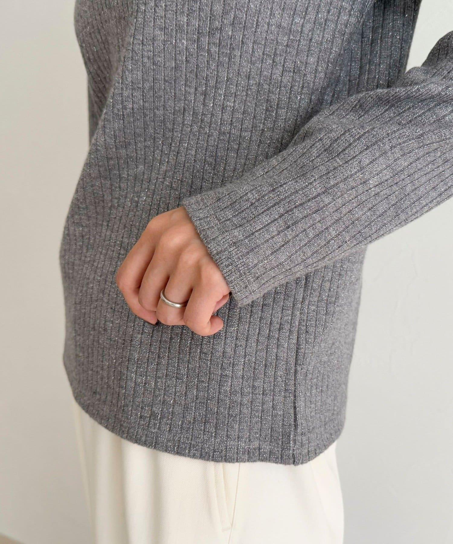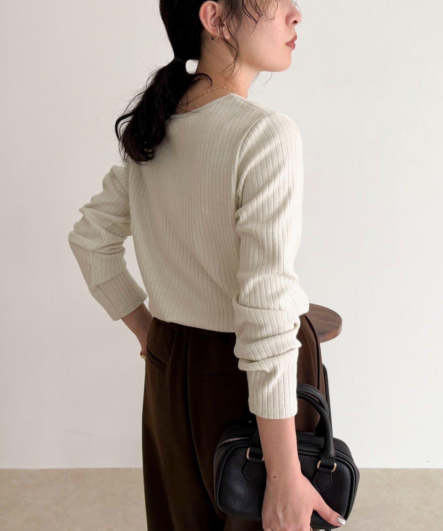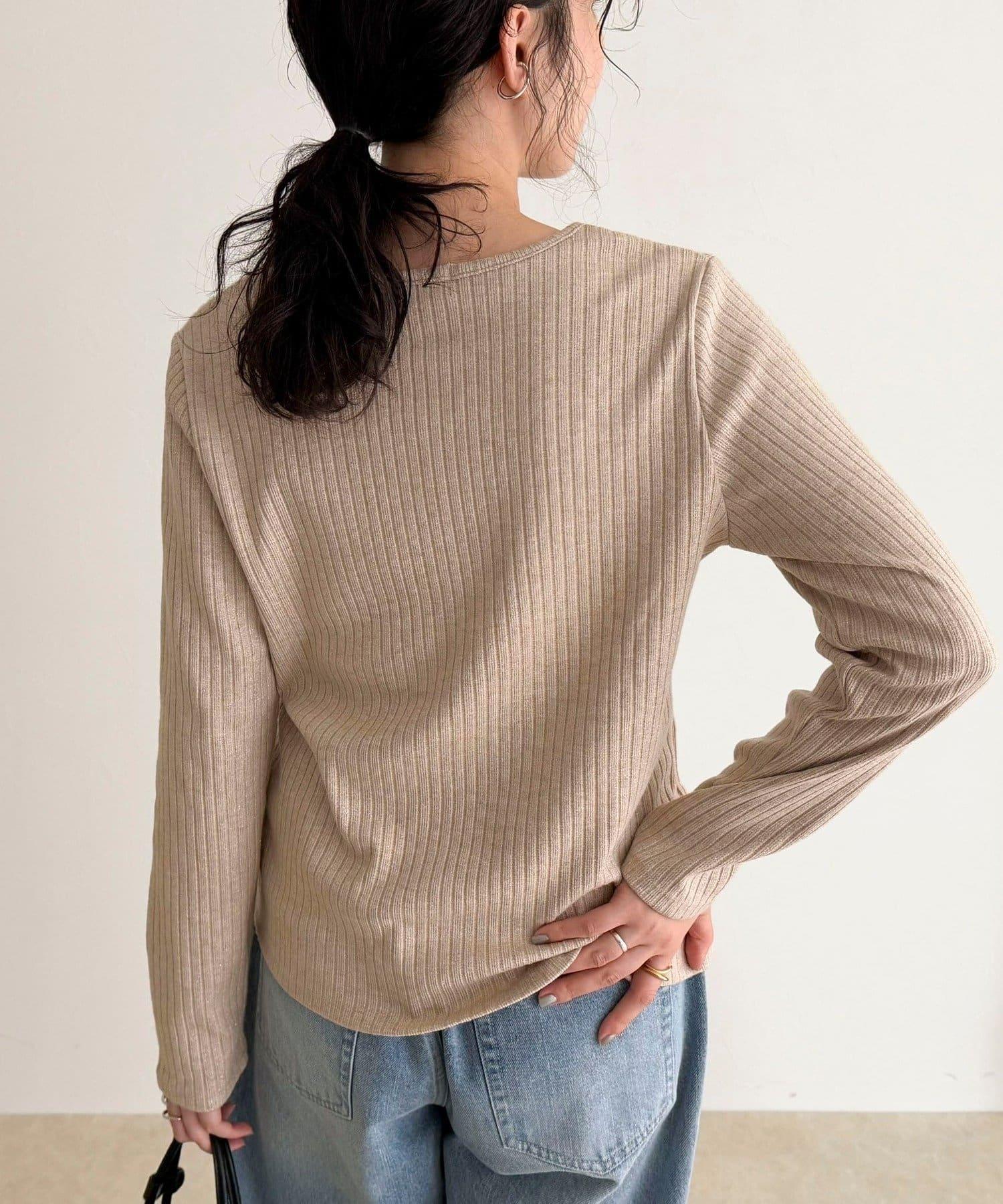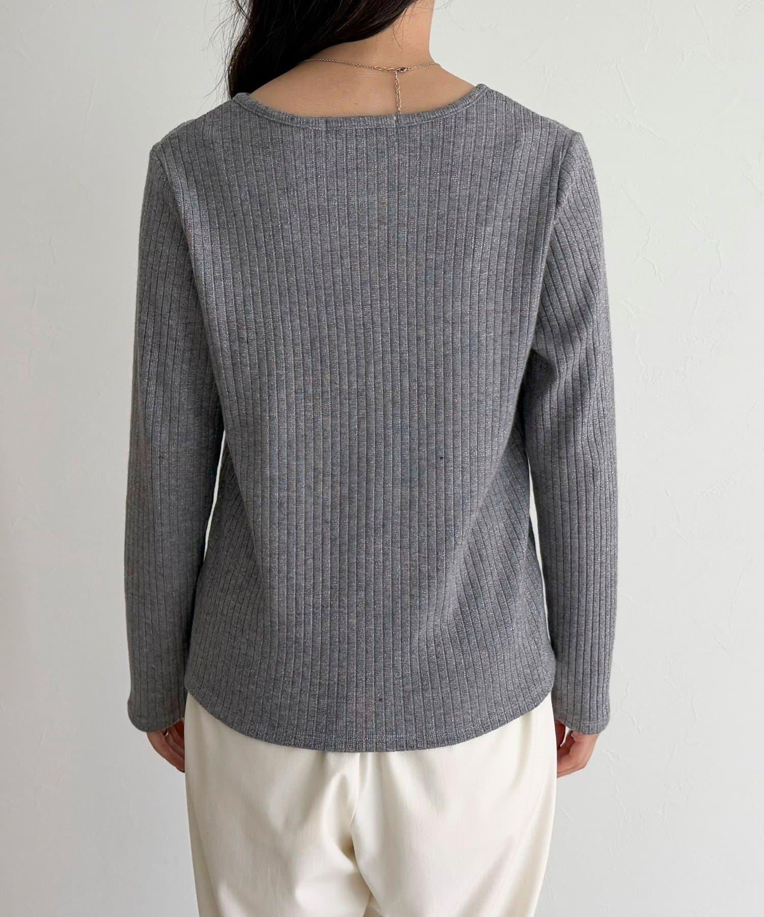 身高 156 厘米的工作人員(穿 38 號):羅紋面料非常貼身,無論是單穿還是作為內搭都很好看!薄片巧妙地閃耀著光芒,雖然簡單,但卻顯得時尚◎。