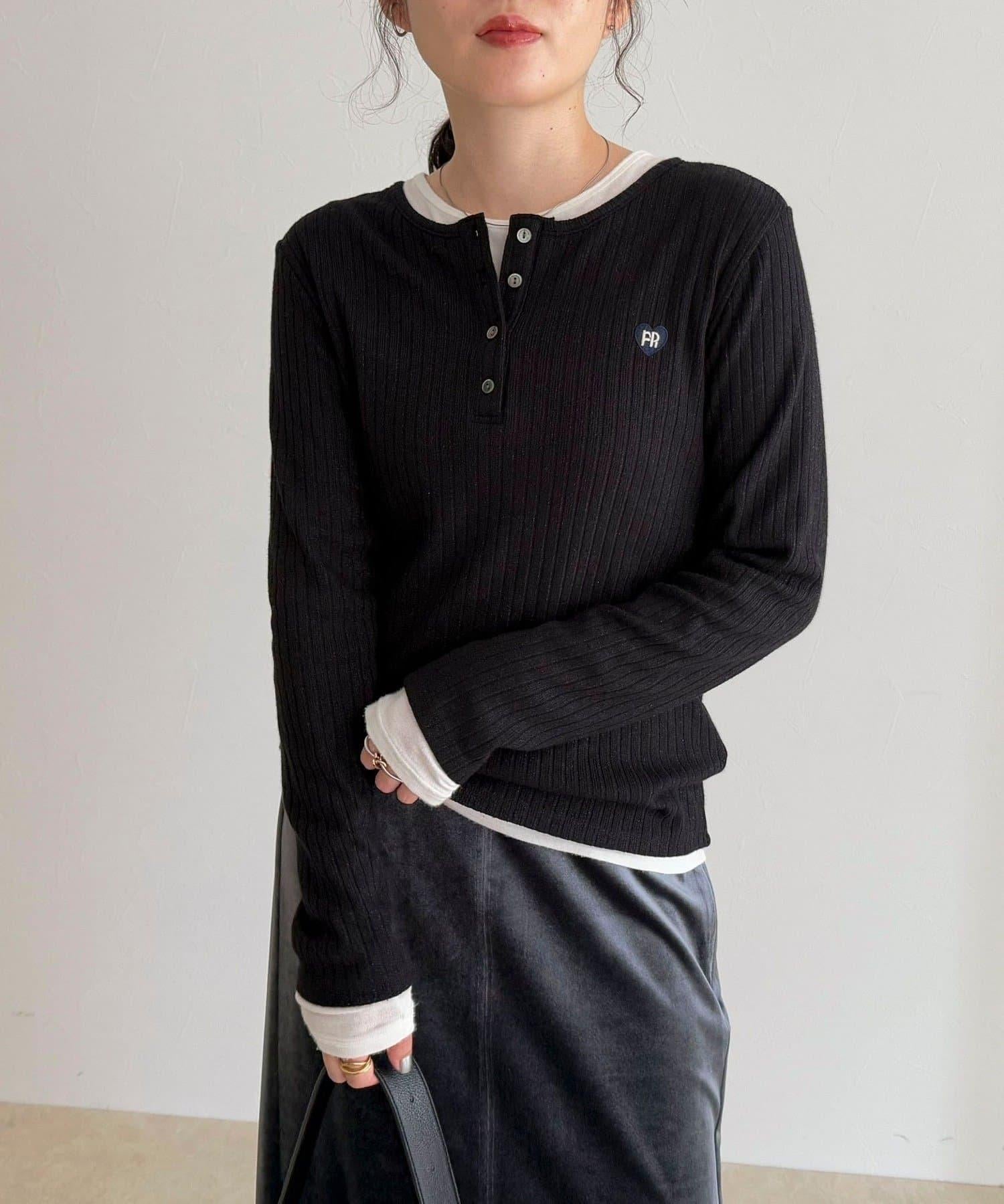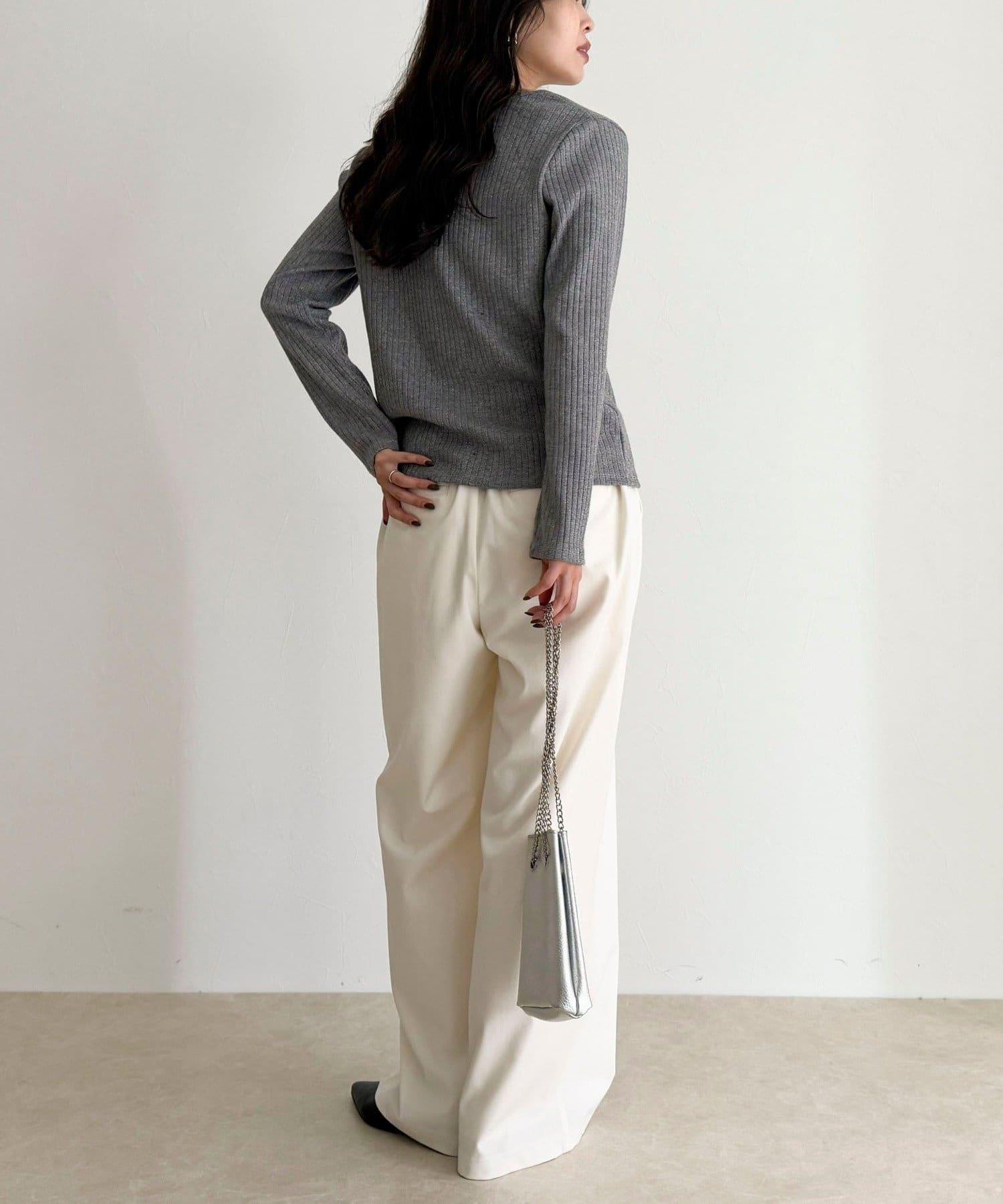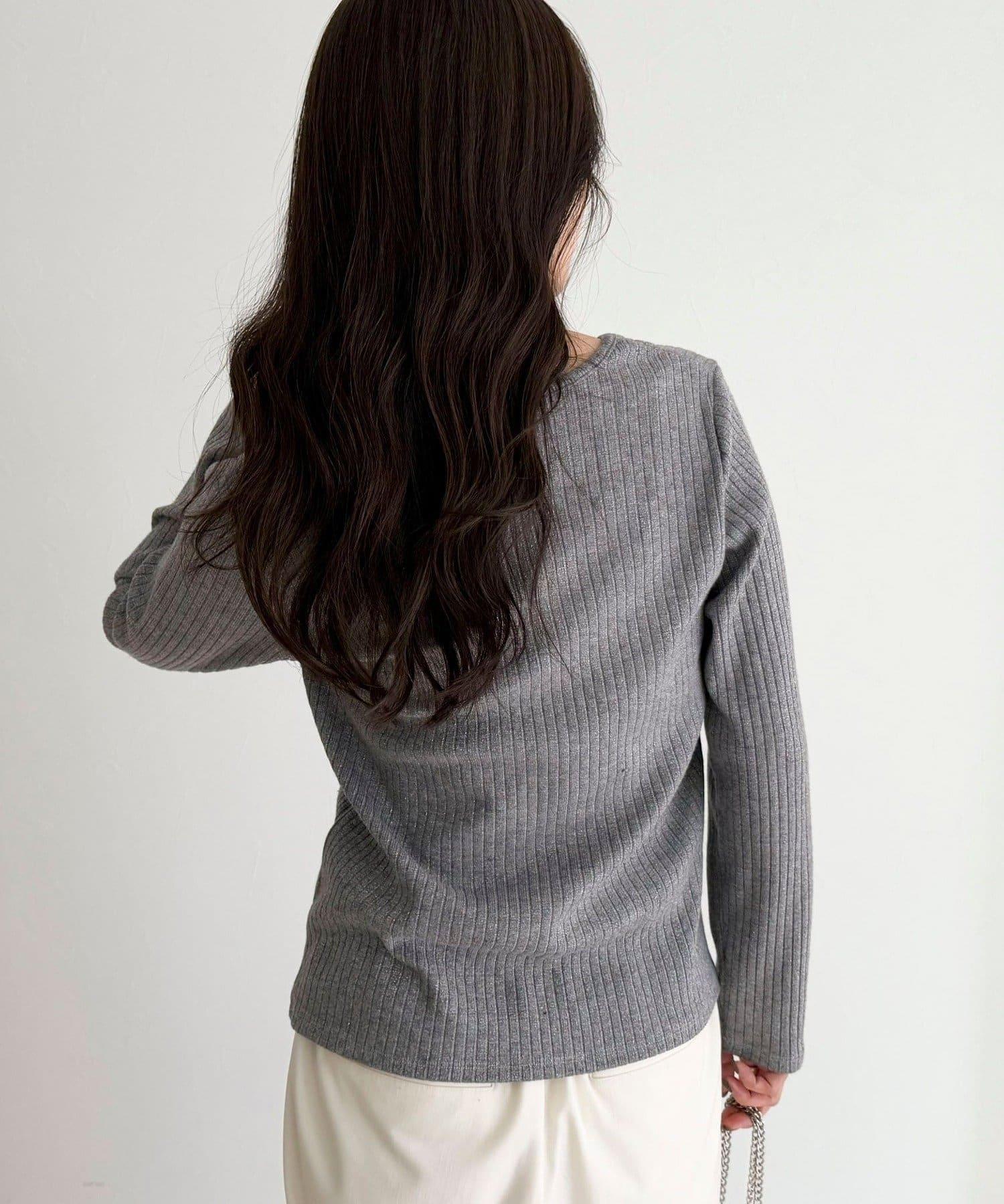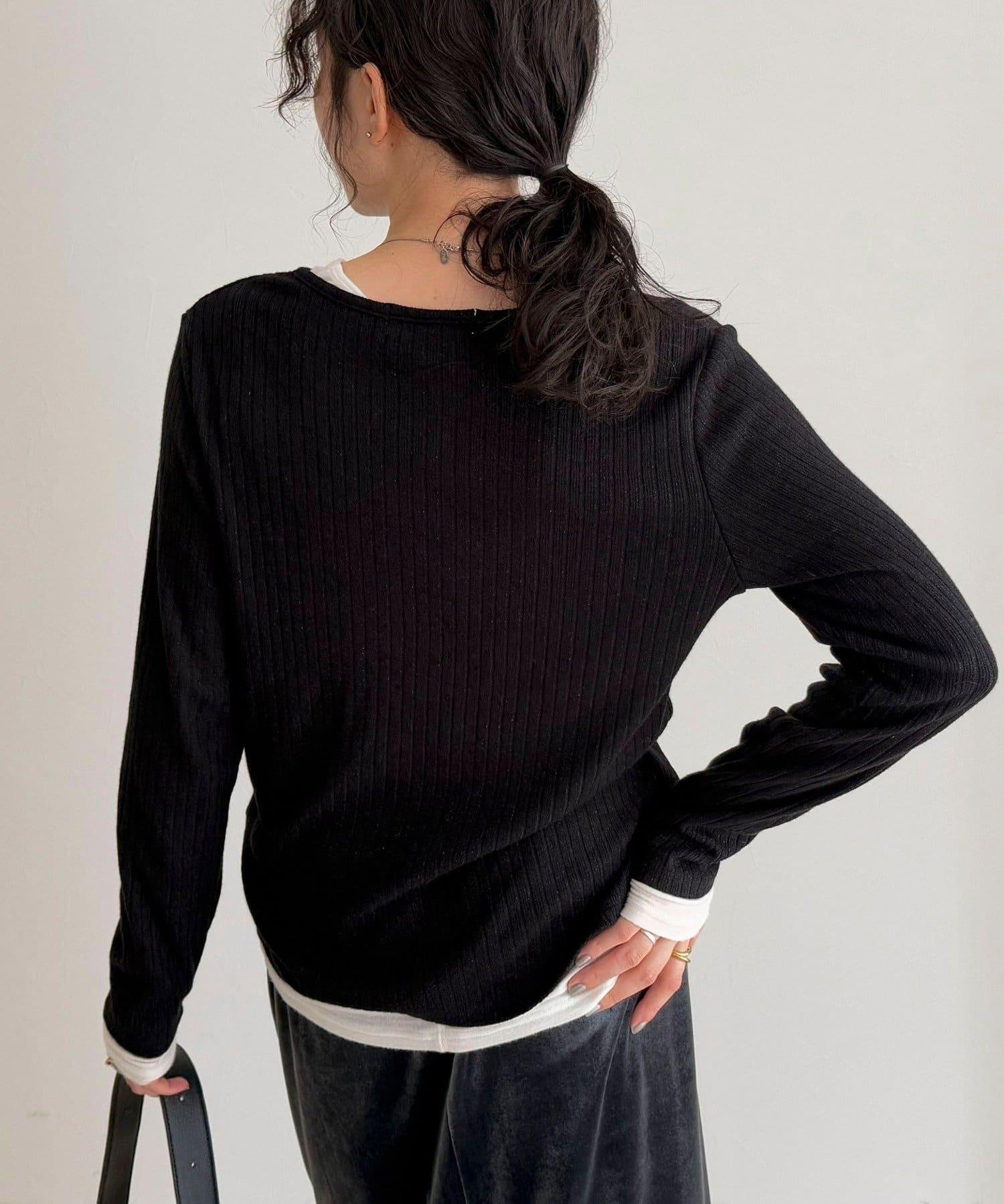 身高 156 厘米的工作人員(穿 38 號):羅紋面料非常貼身,無論是單穿還是作為內搭都很好看!薄片巧妙地閃耀著光芒,雖然簡單,但卻顯得時尚◎。