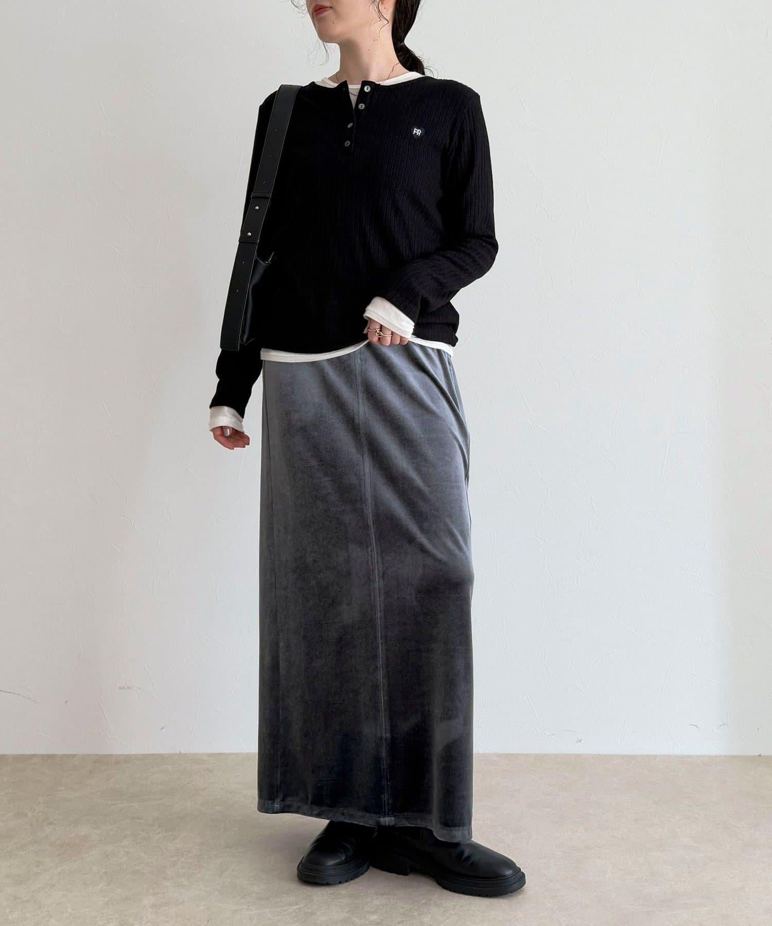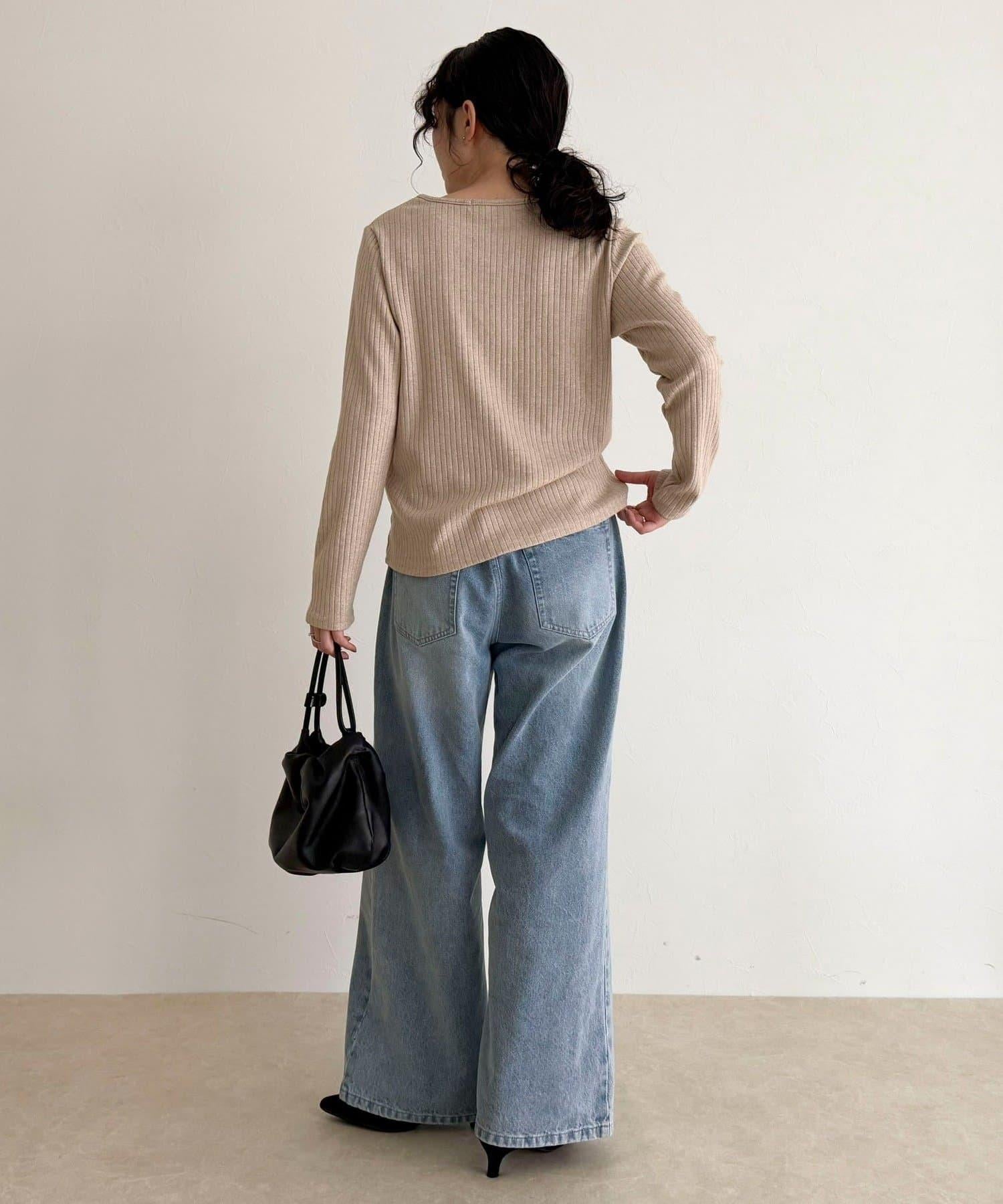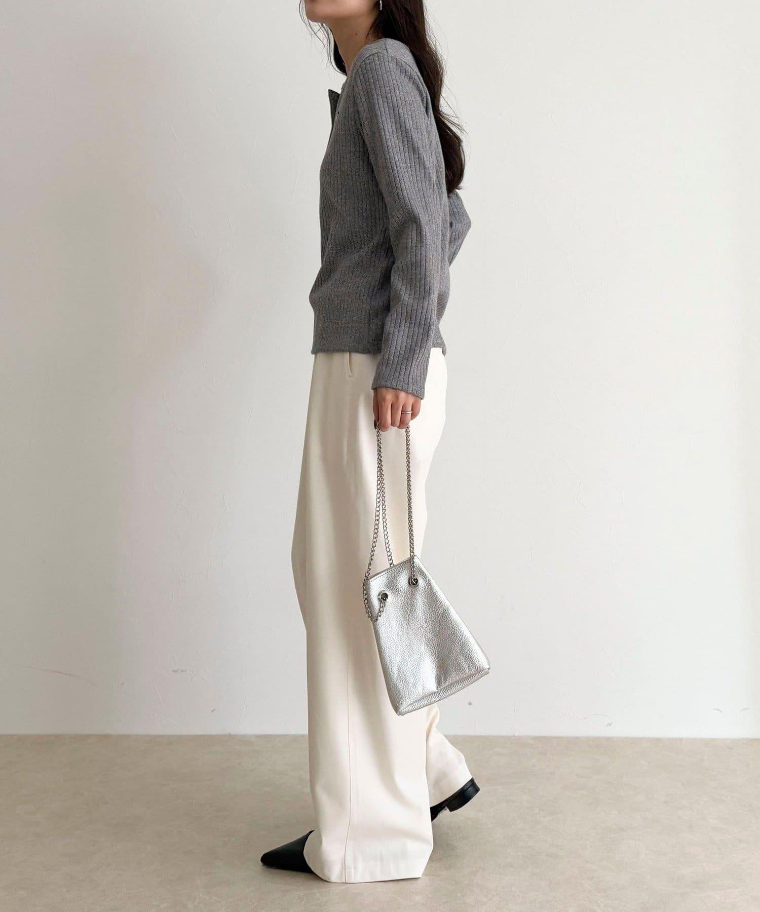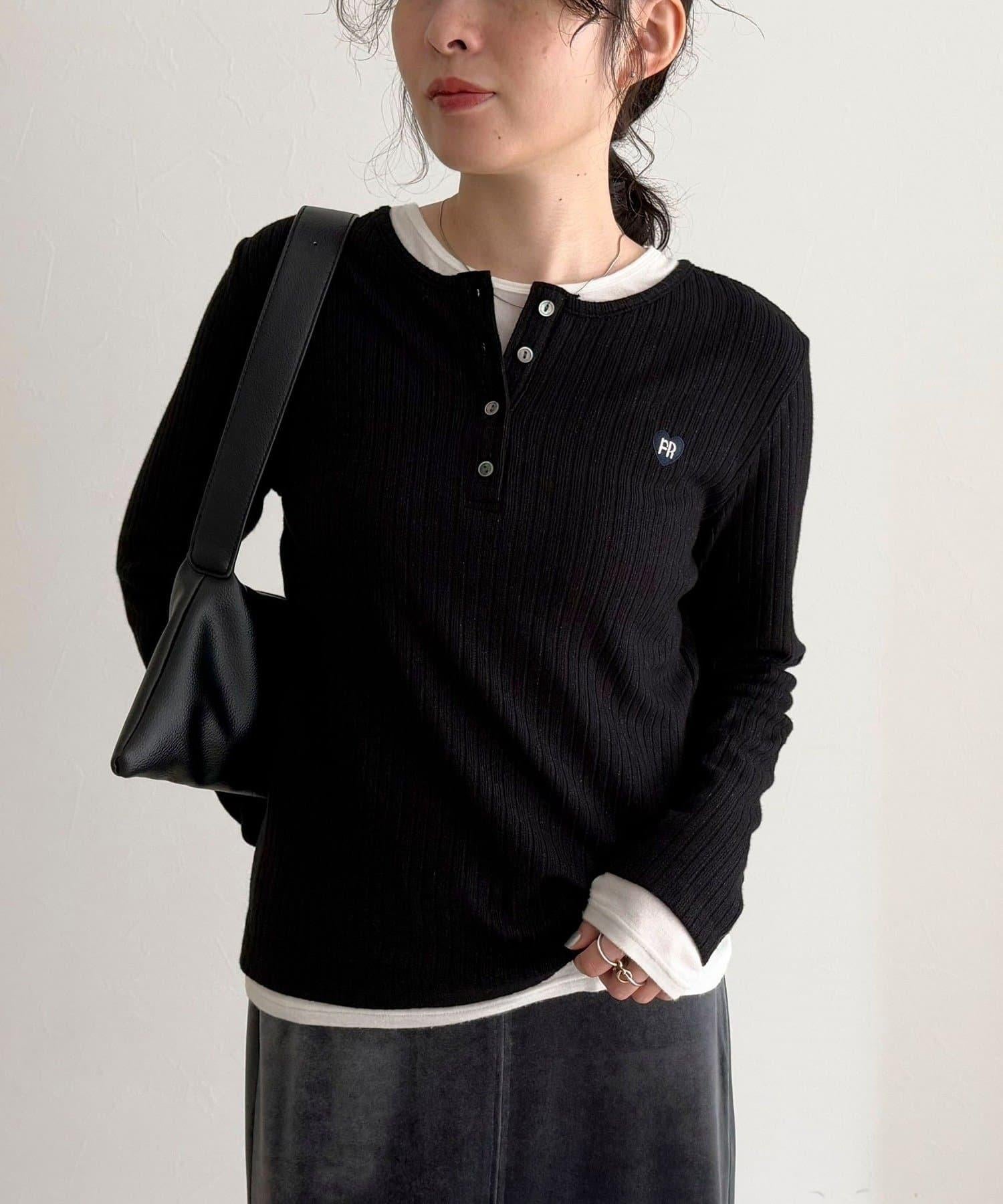 身高 156 厘米的工作人員(穿 38 號):羅紋面料非常貼身,無論是單穿還是作為內搭都很好看!薄片巧妙地閃耀著光芒,雖然簡單,但卻顯得時尚◎。