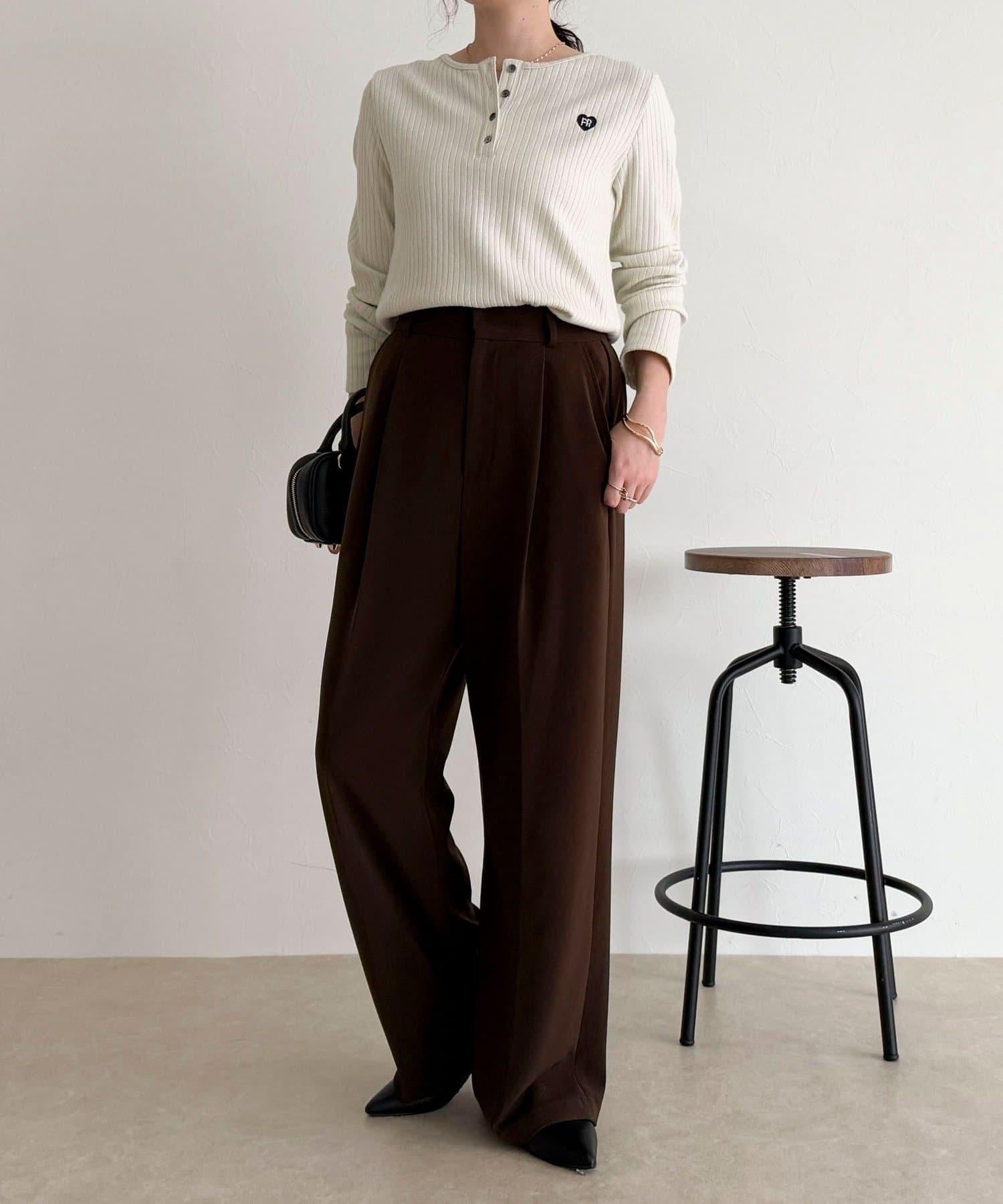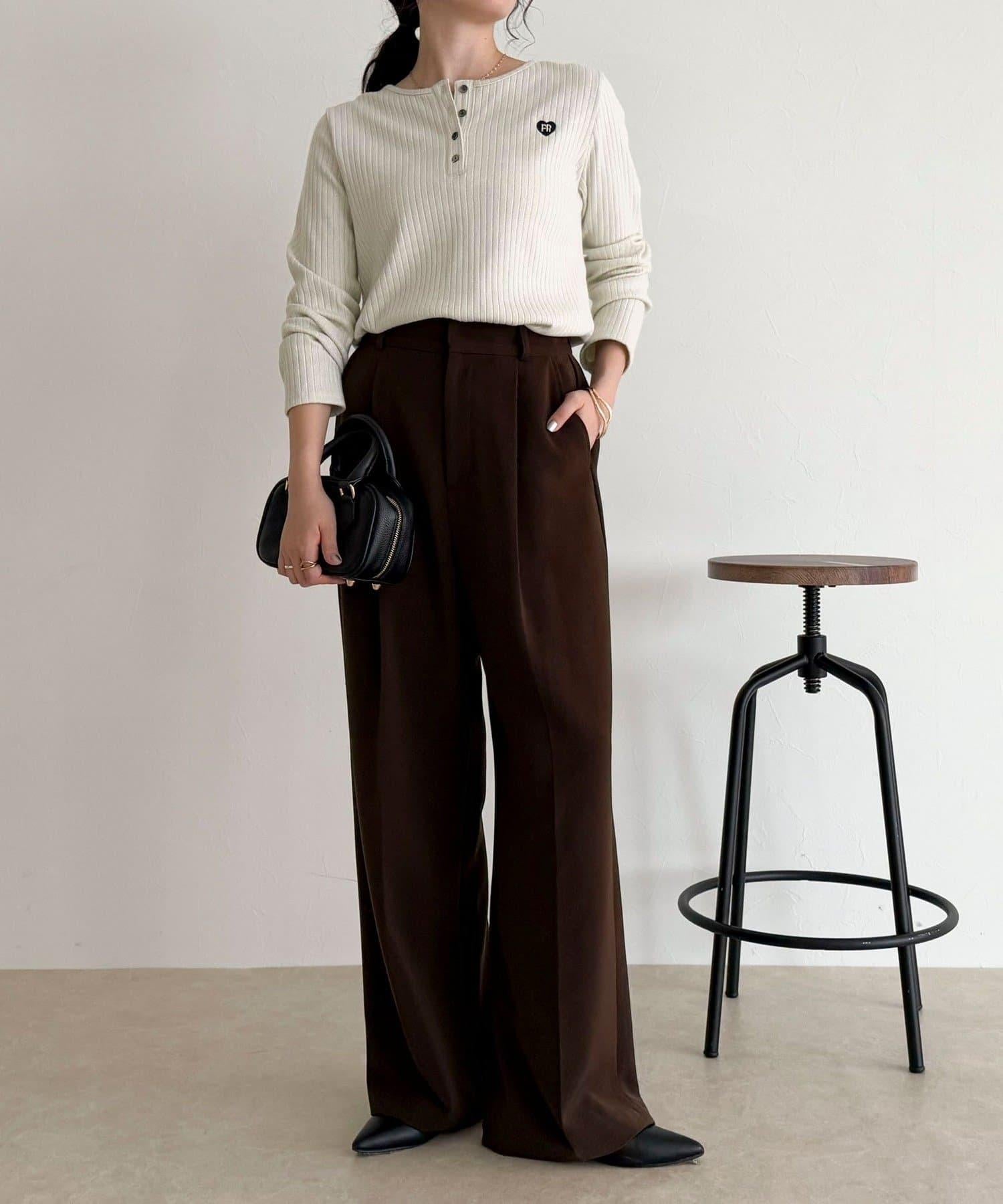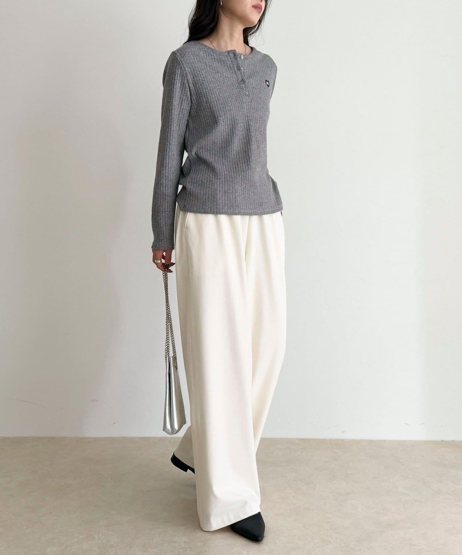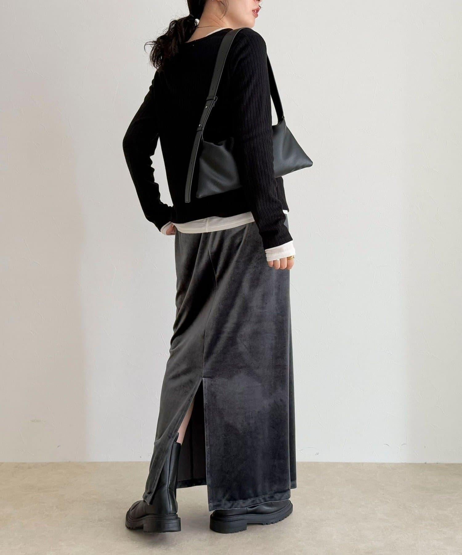 身高 156 厘米的工作人員(穿 38 號):羅紋面料非常貼身,無論是單穿還是作為內搭都很好看!薄片巧妙地閃耀著光芒,雖然簡單,但卻顯得時尚◎。