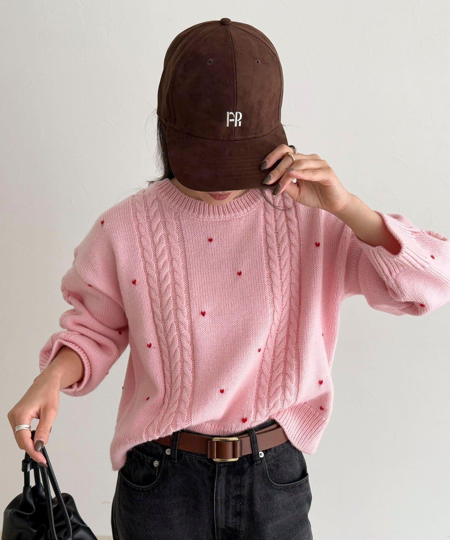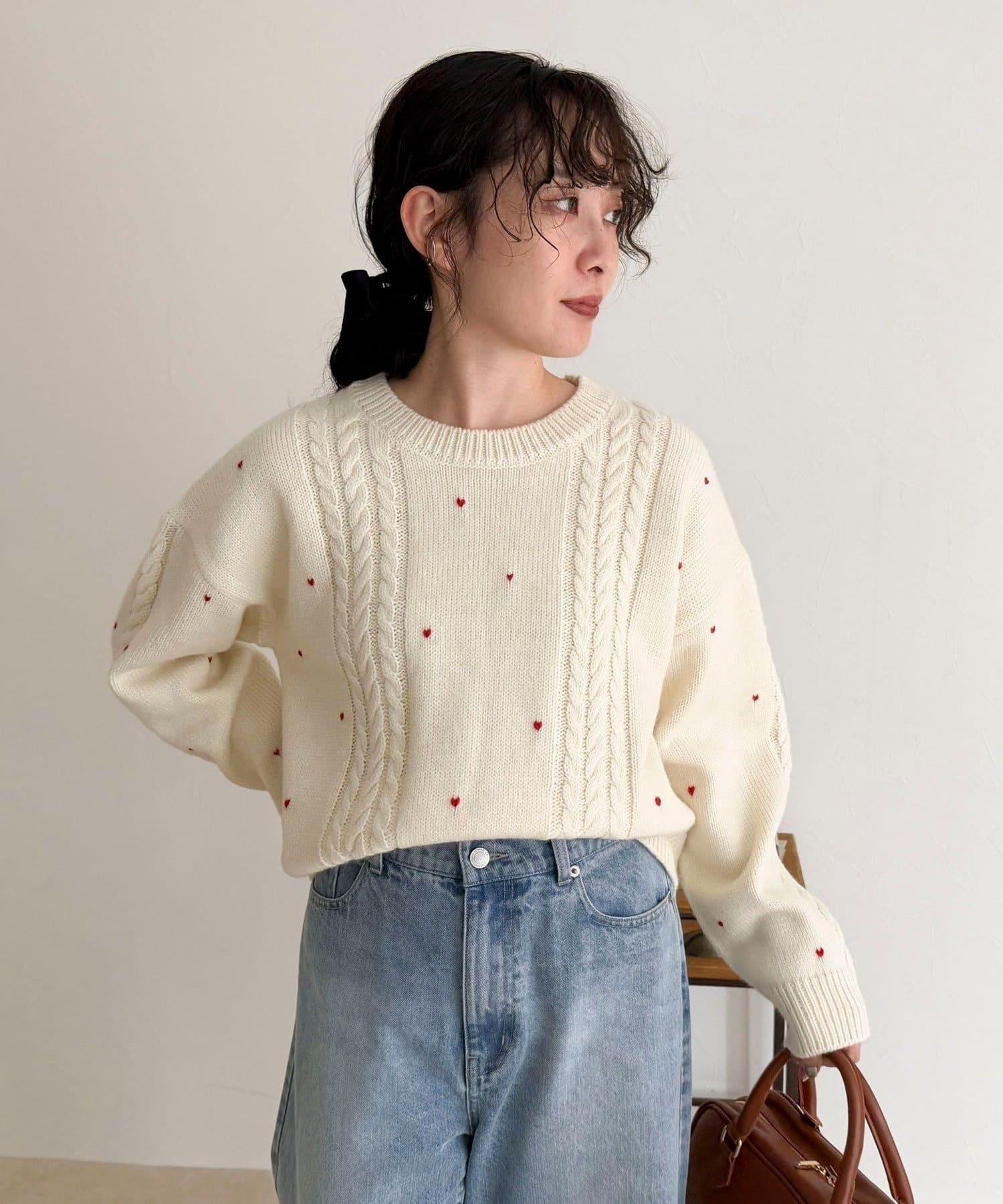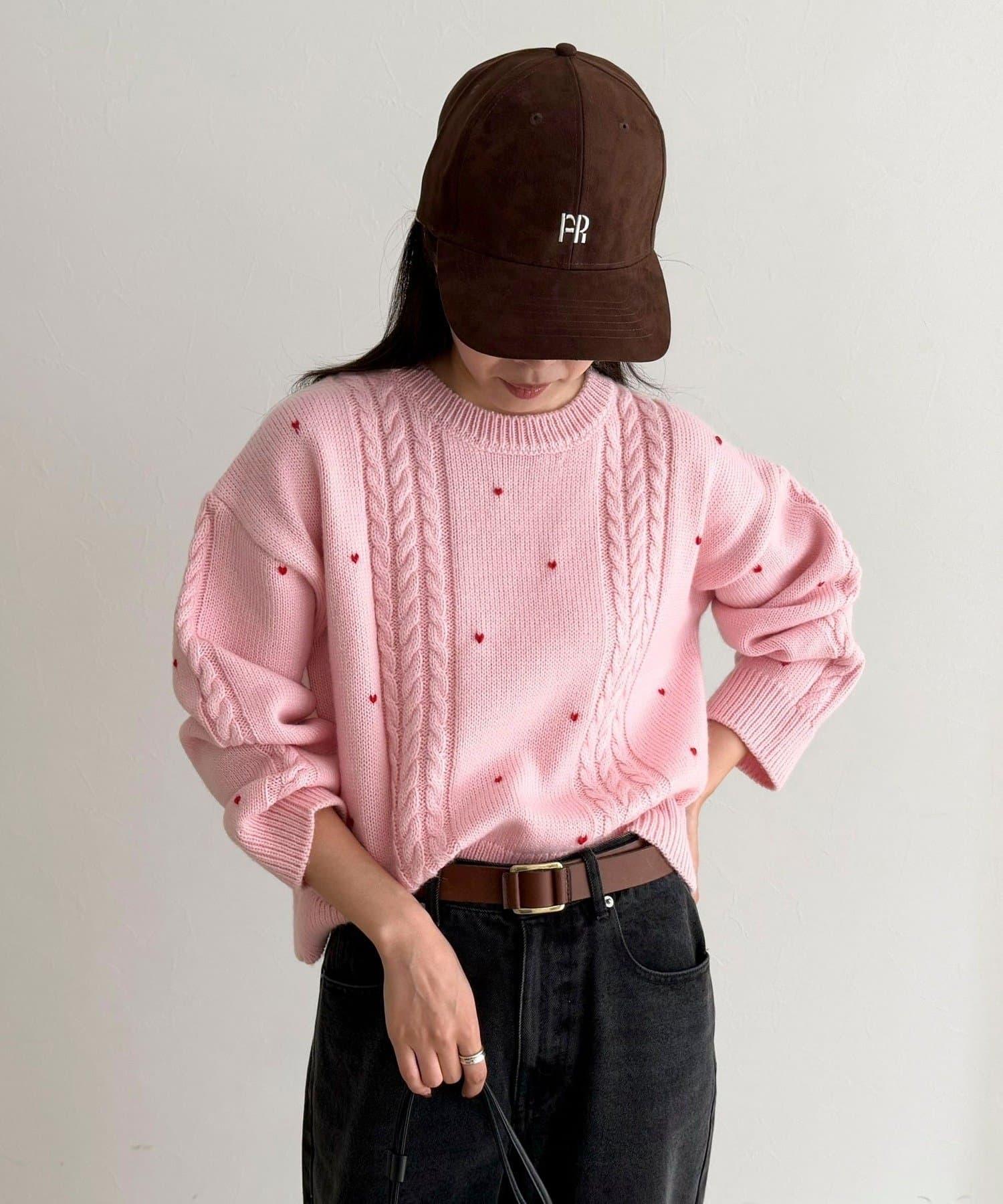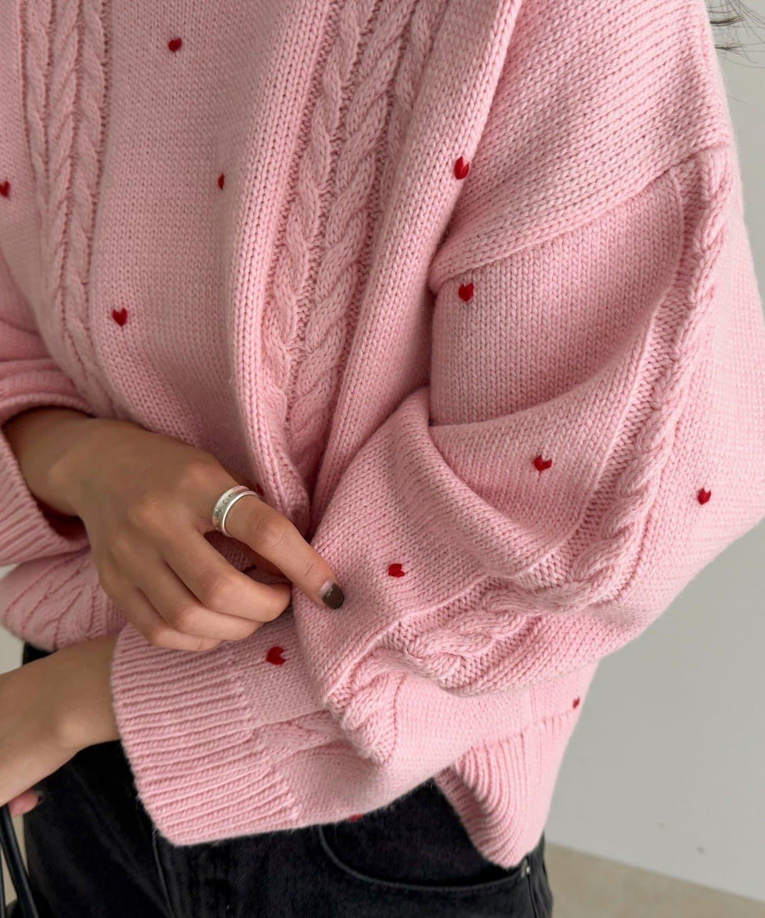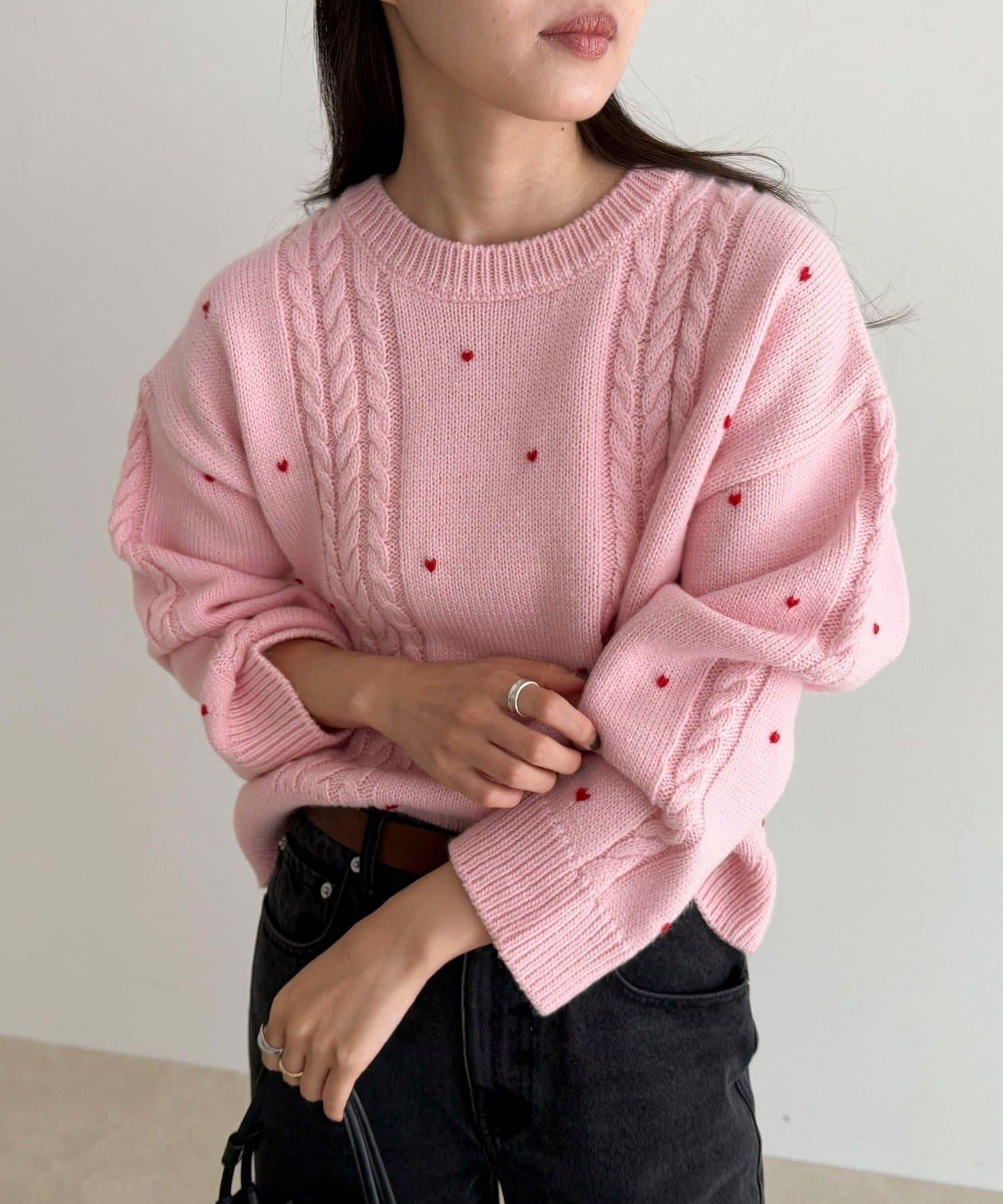 心形刺繡圖案針織衫,打造可愛成人秋冬風格