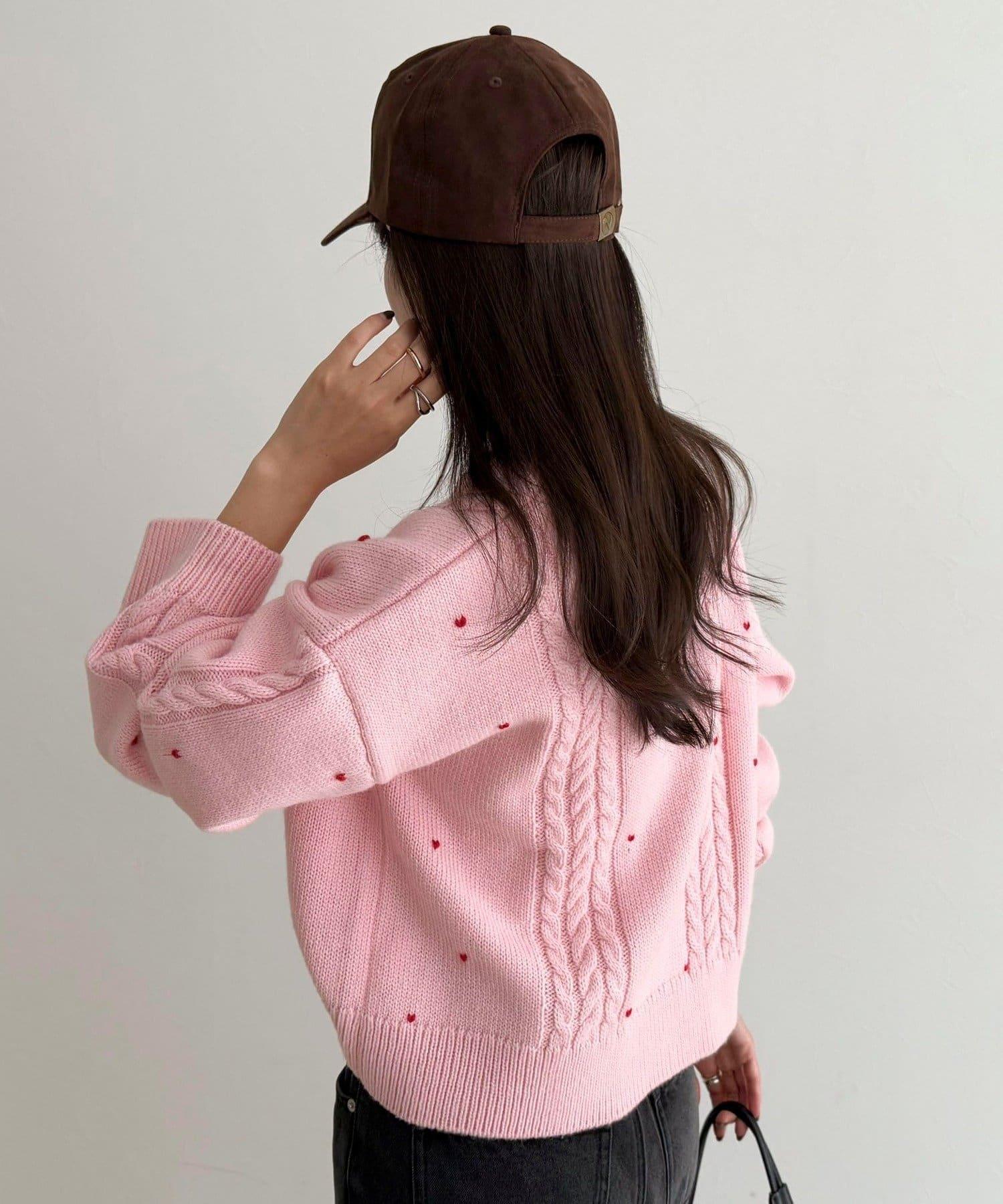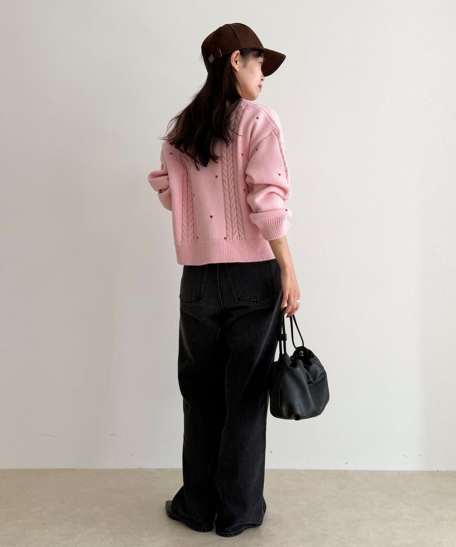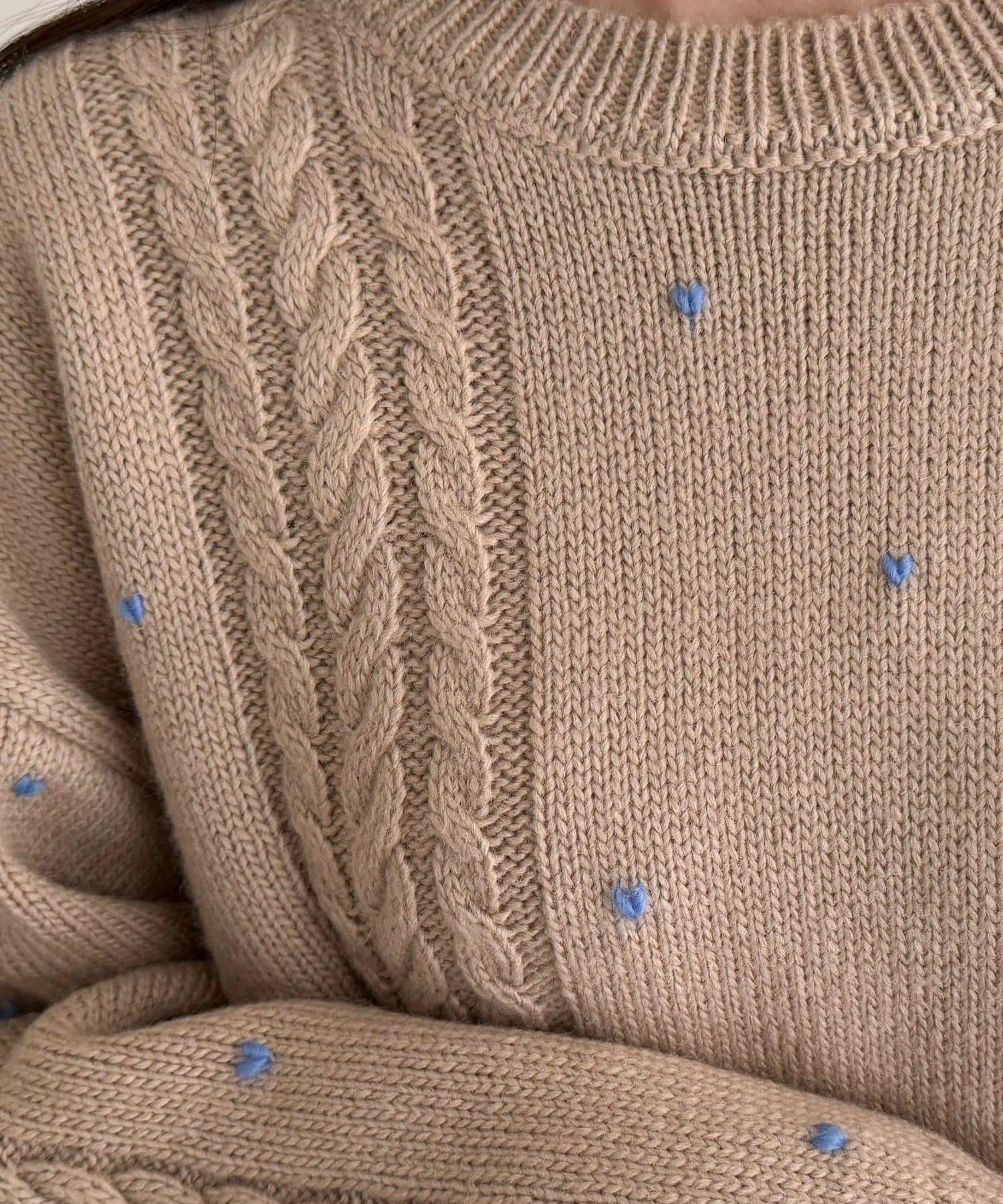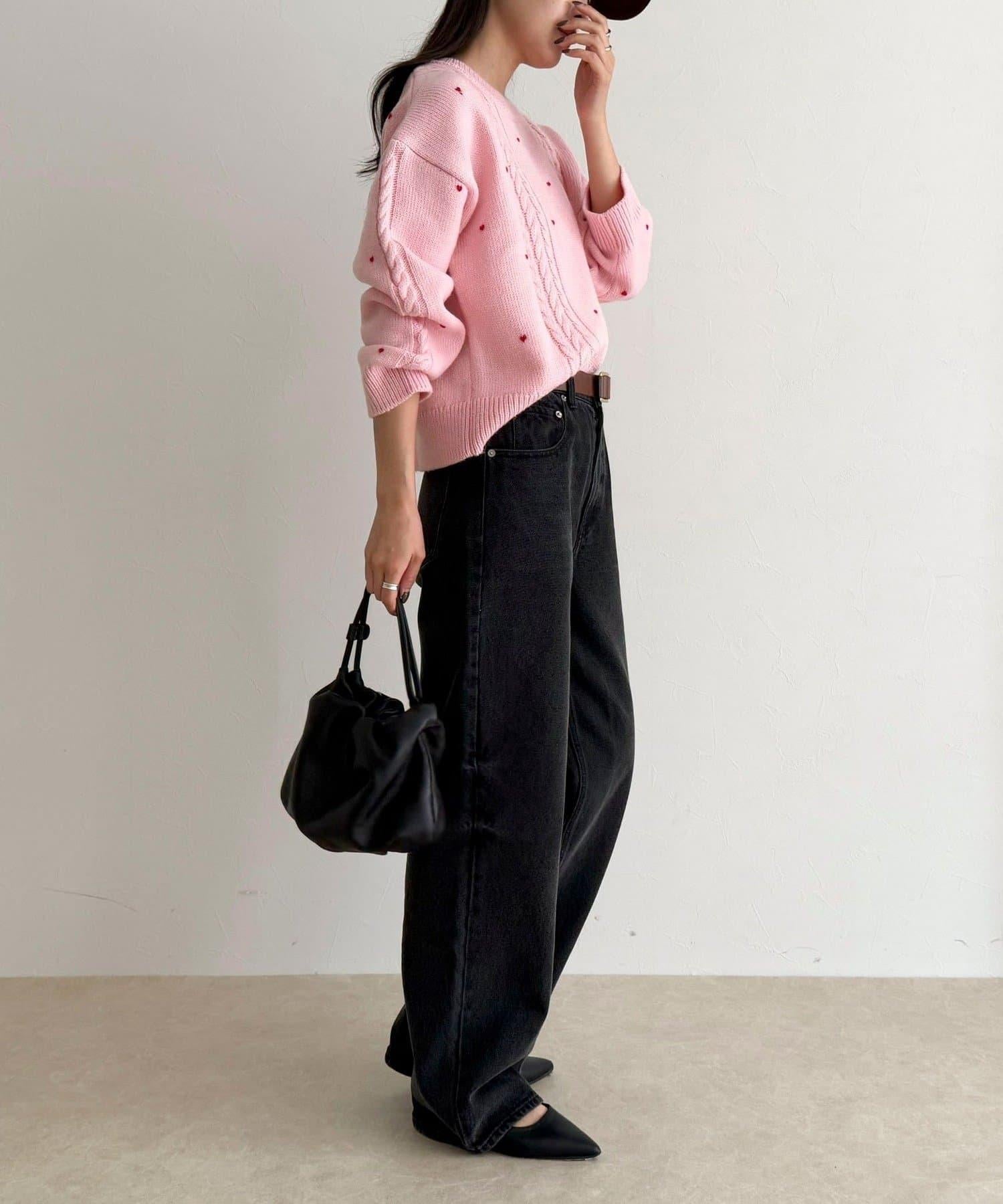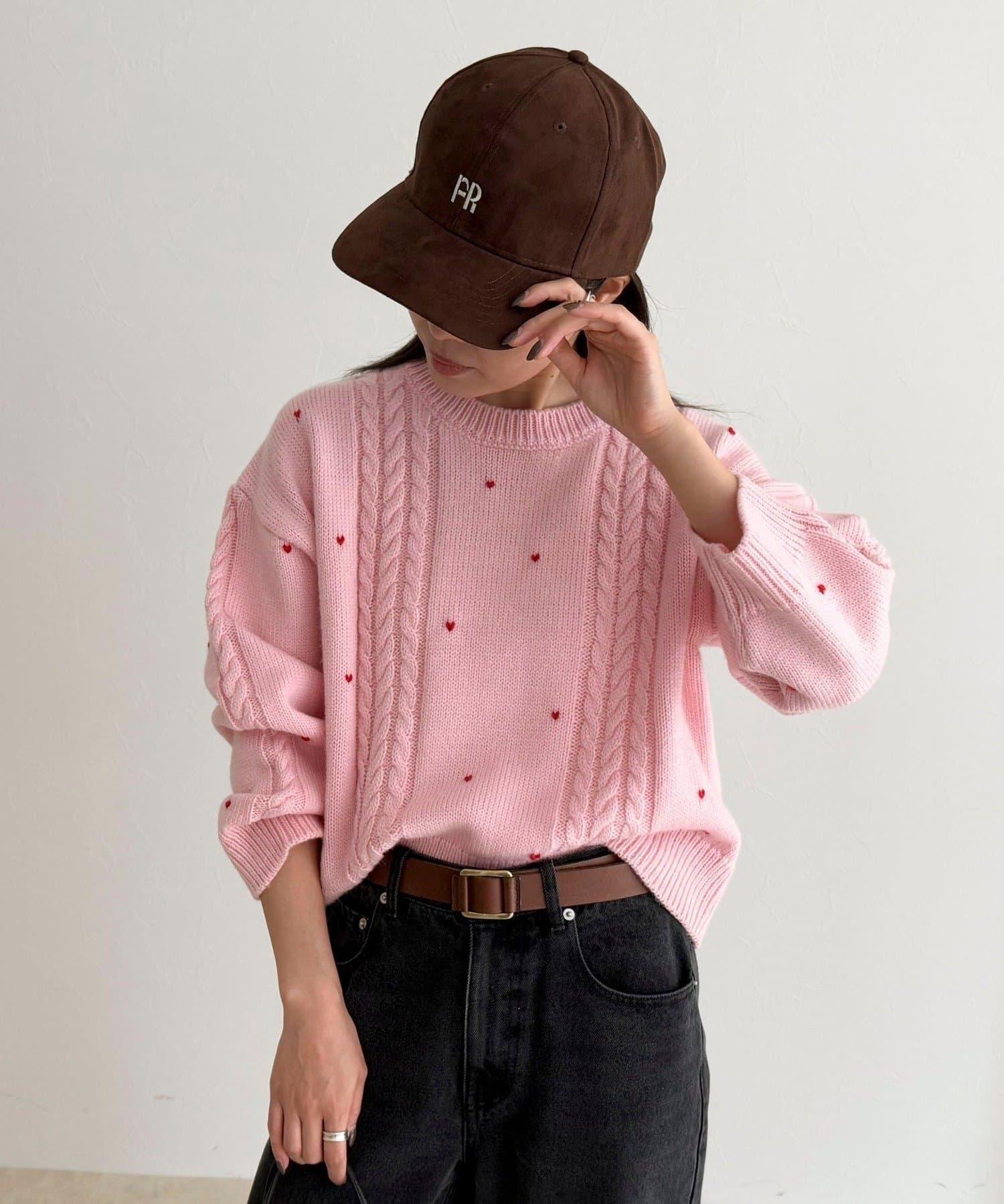 心形刺繡圖案針織衫,打造可愛成人秋冬風格