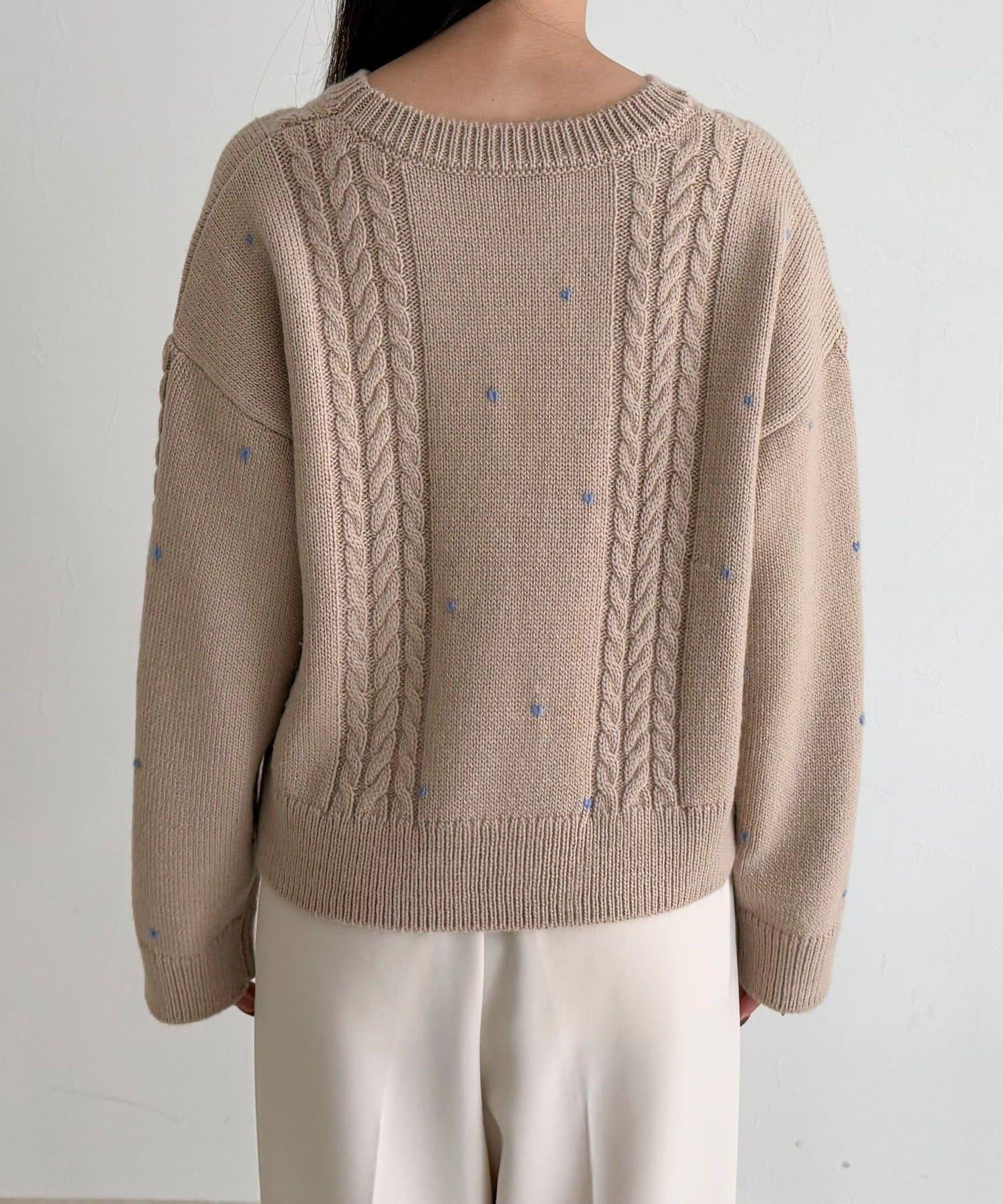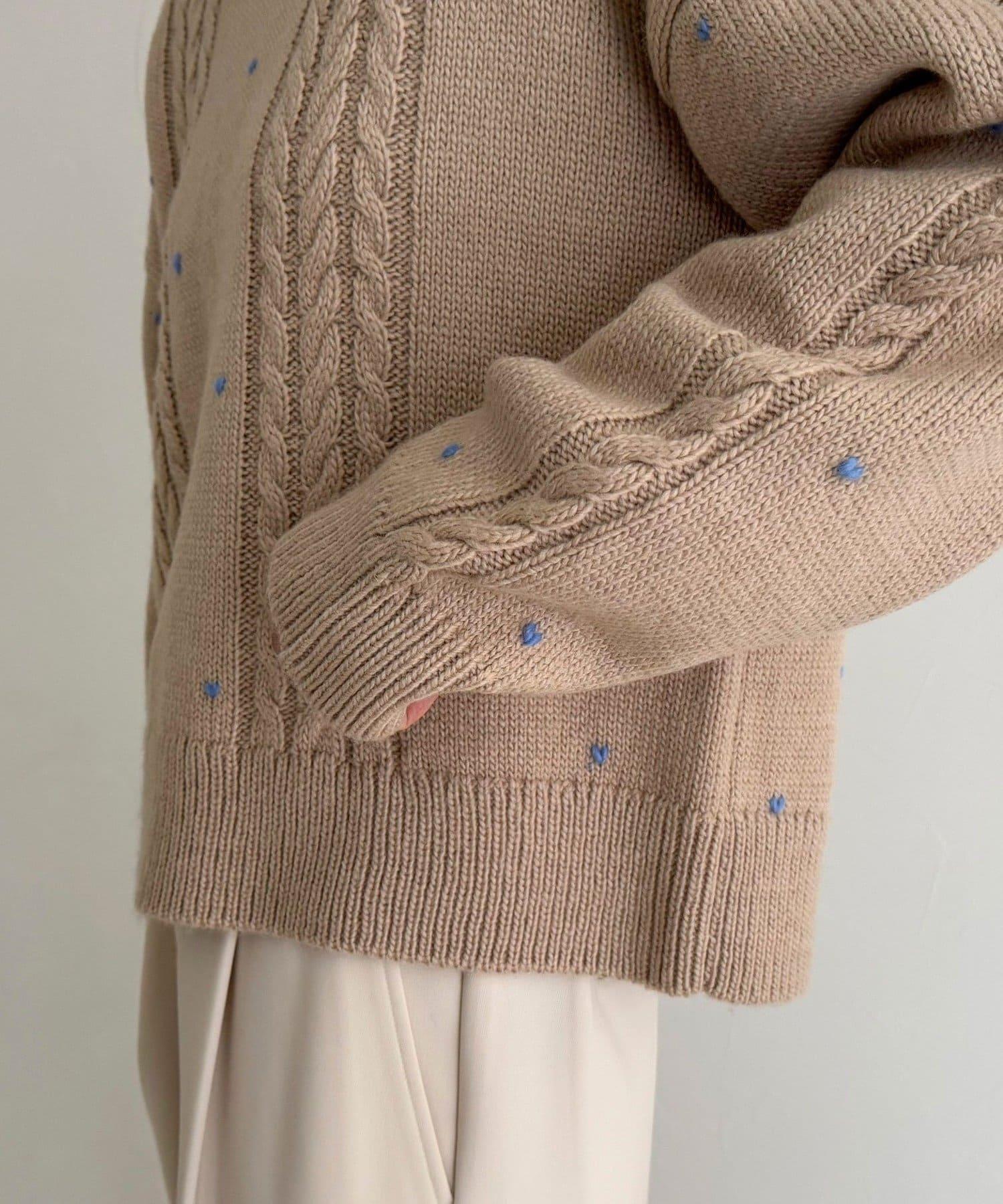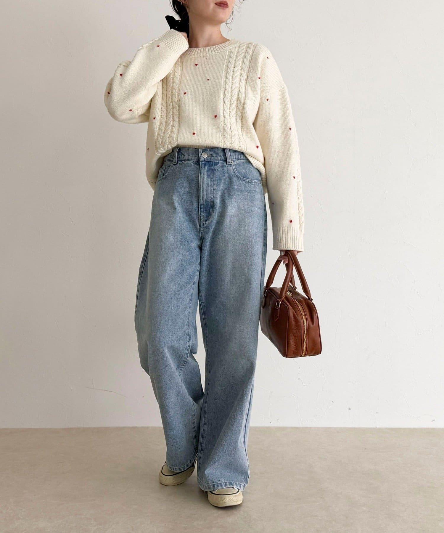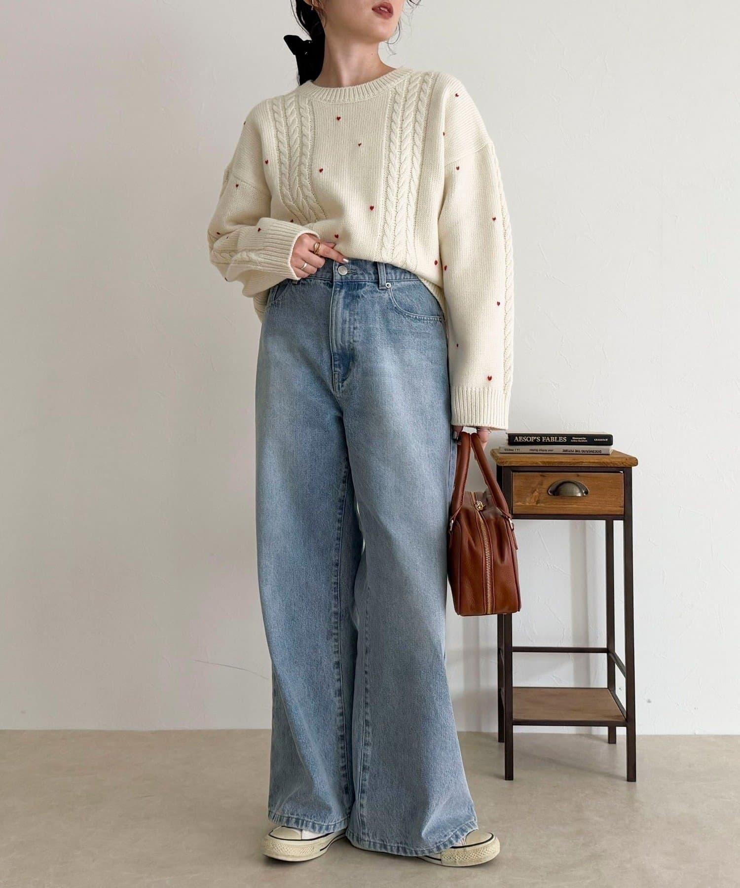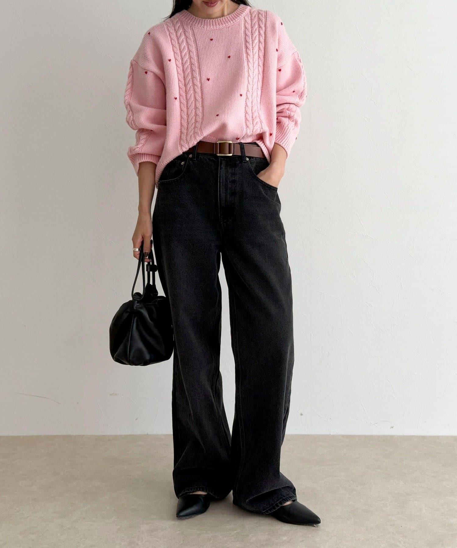 心形刺繡圖案針織衫,打造可愛成人秋冬風格